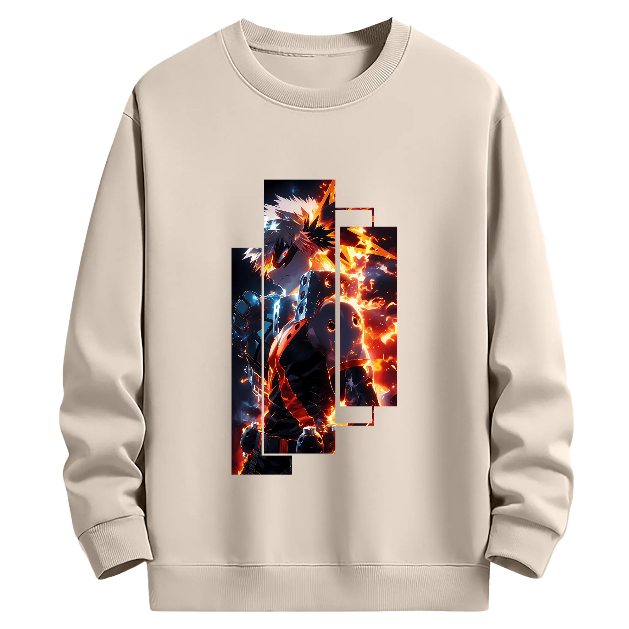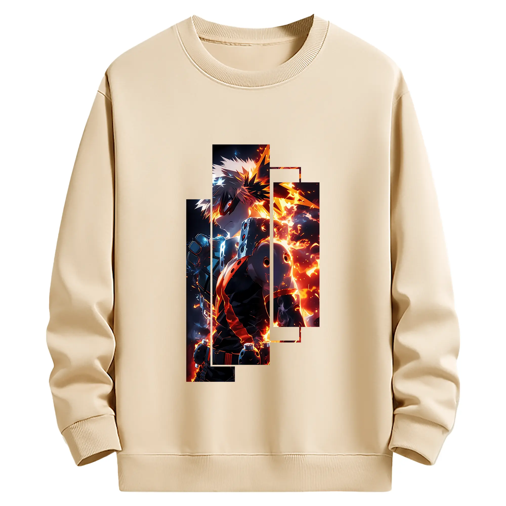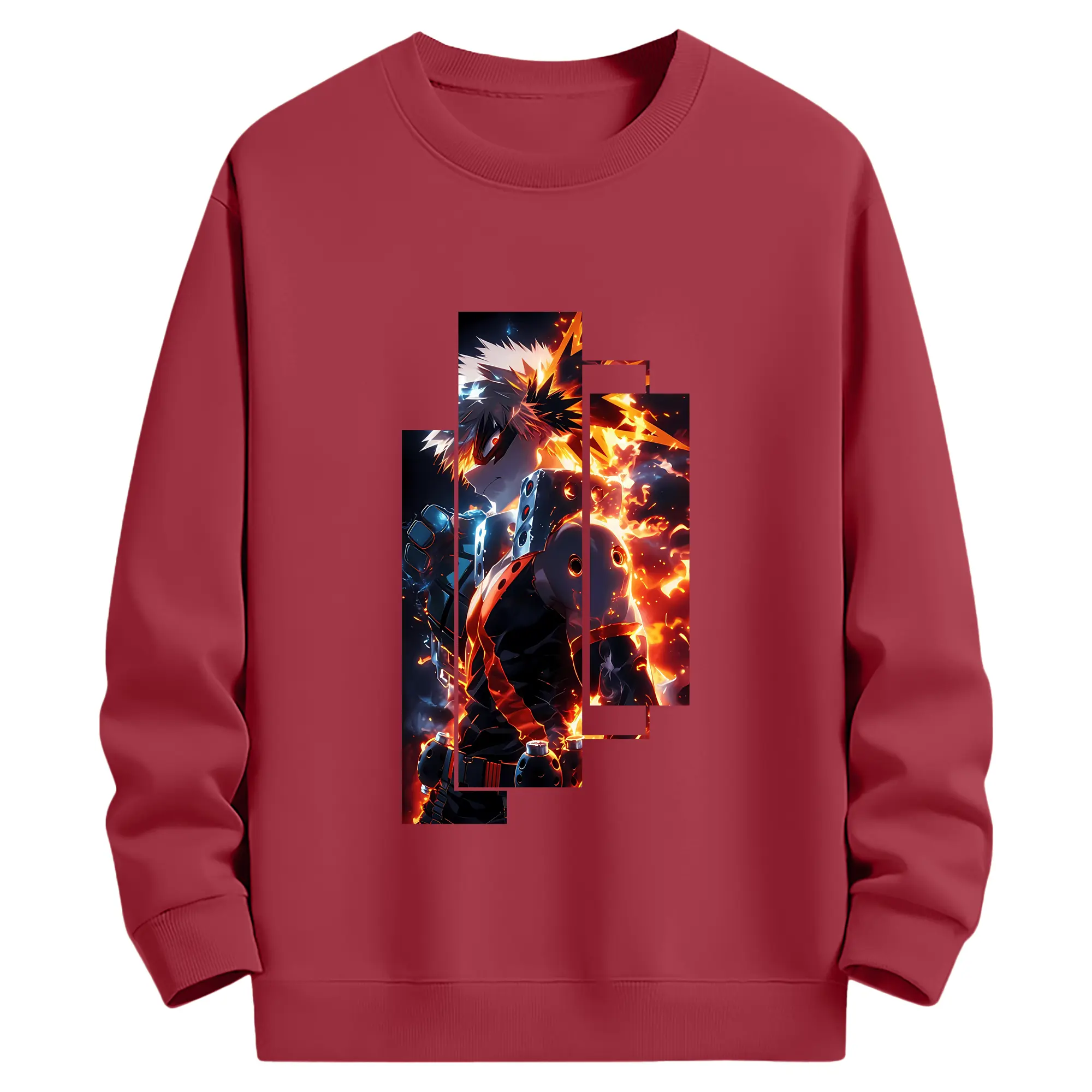 僕のヒーローアカデミア グッズ,爆豪勝己 - 薄手 クルーネック スウェット 裏毛260g · ポリエステル 春秋向け カジュアル 男女兼用 · トレーナー デイリー スポーツ 散歩に最適
