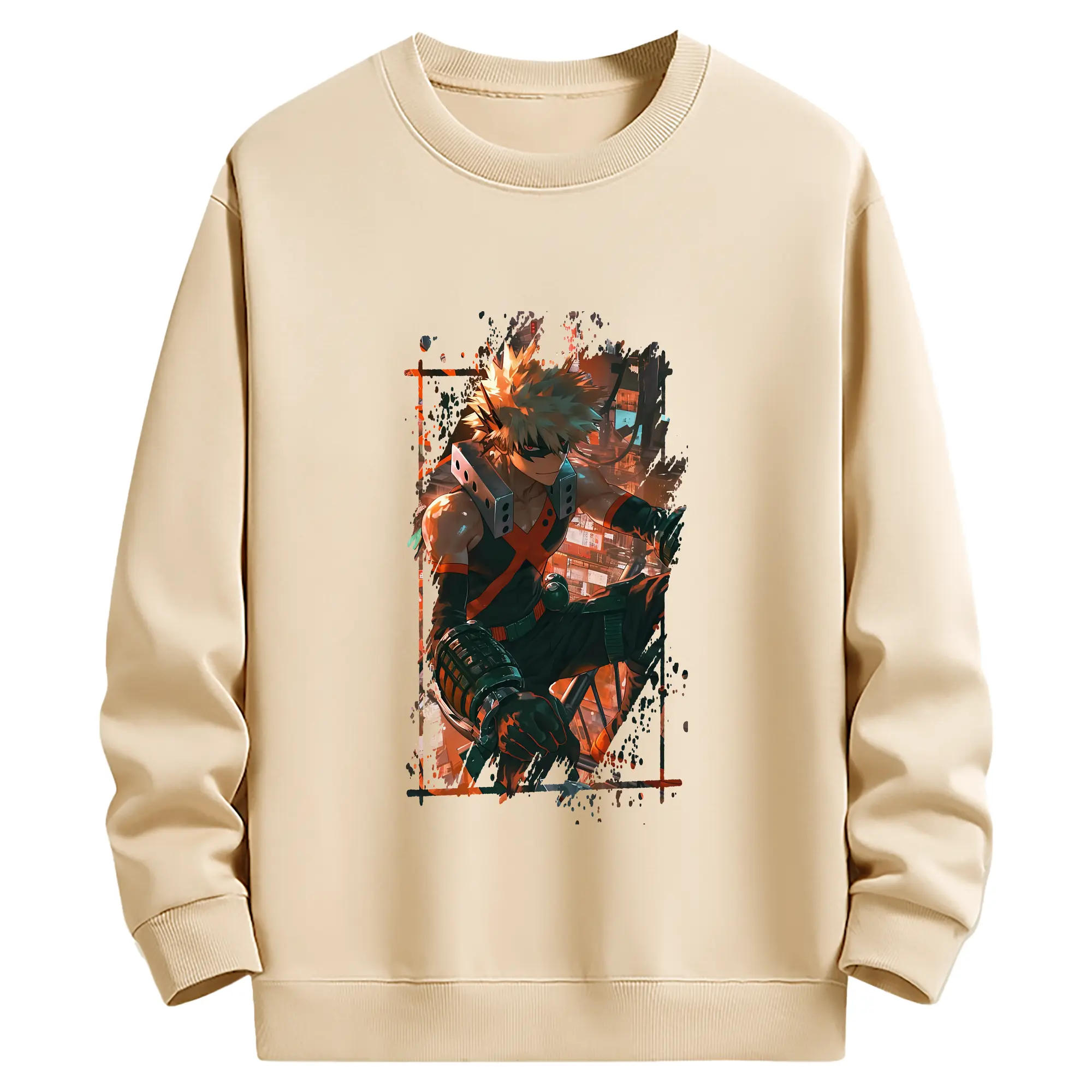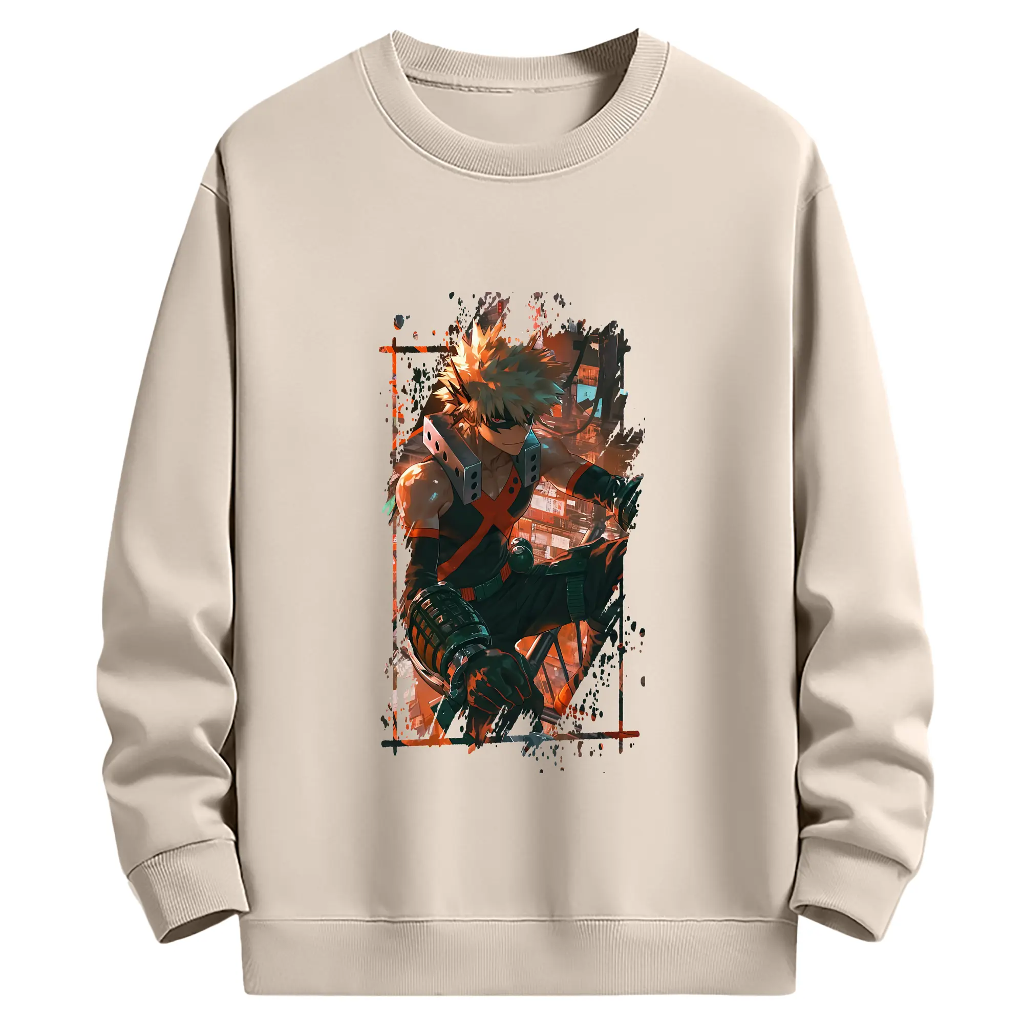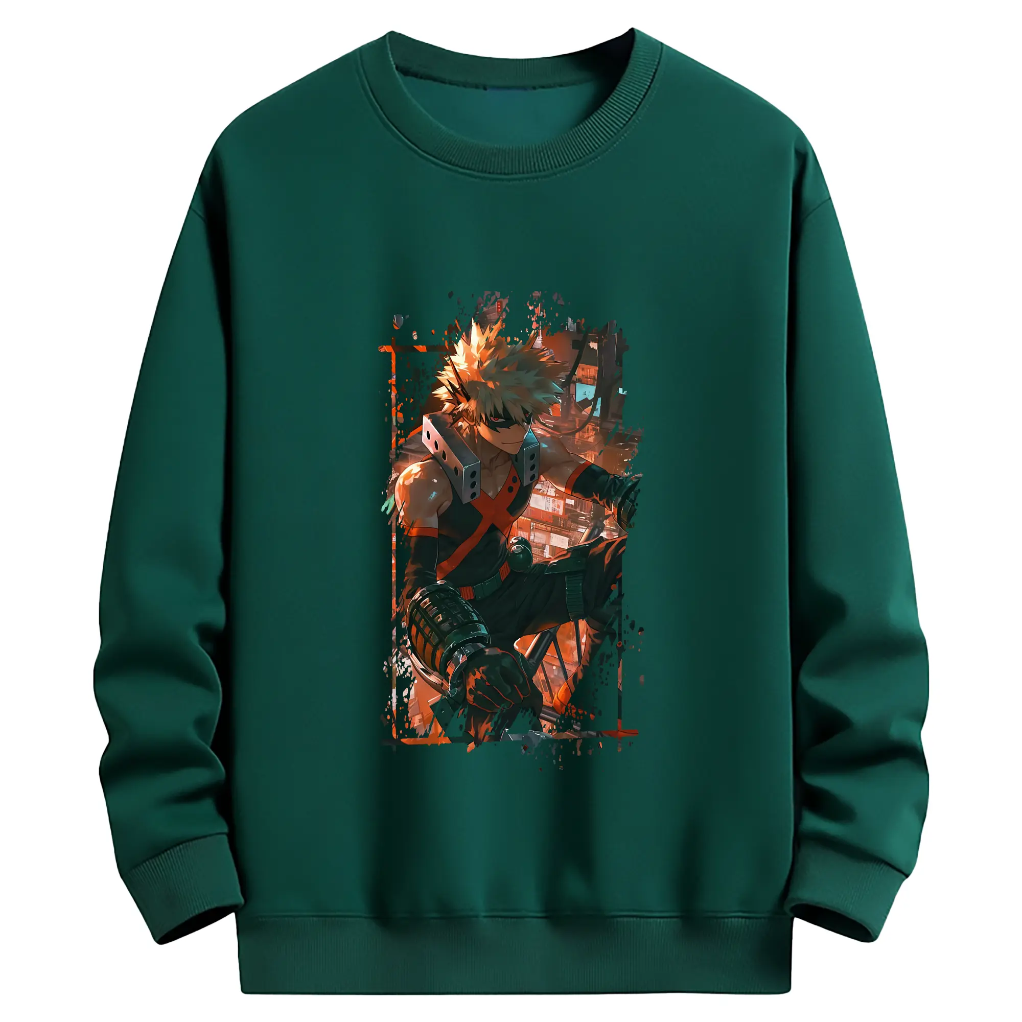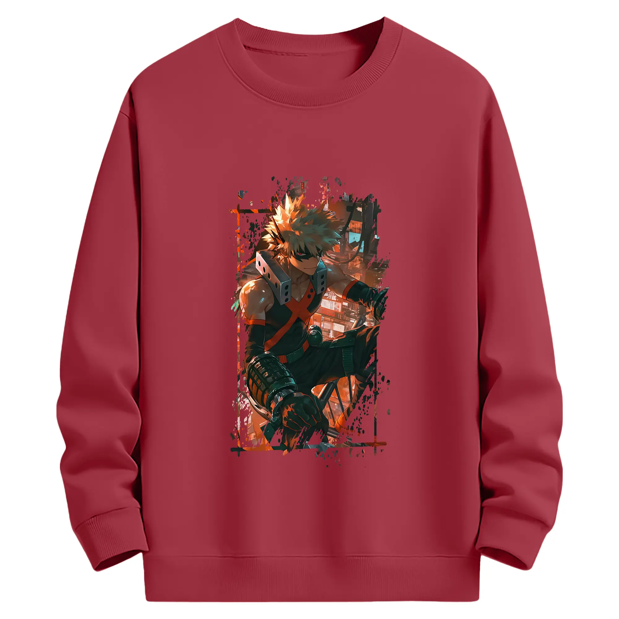 僕のヒーローアカデミア グッズ,爆豪勝己 - 薄手 クルーネック スウェット 裏毛260g · ポリエステル 春秋向け カジュアル 男女兼用 · トレーナー デイリー スポーツ 散歩に最適