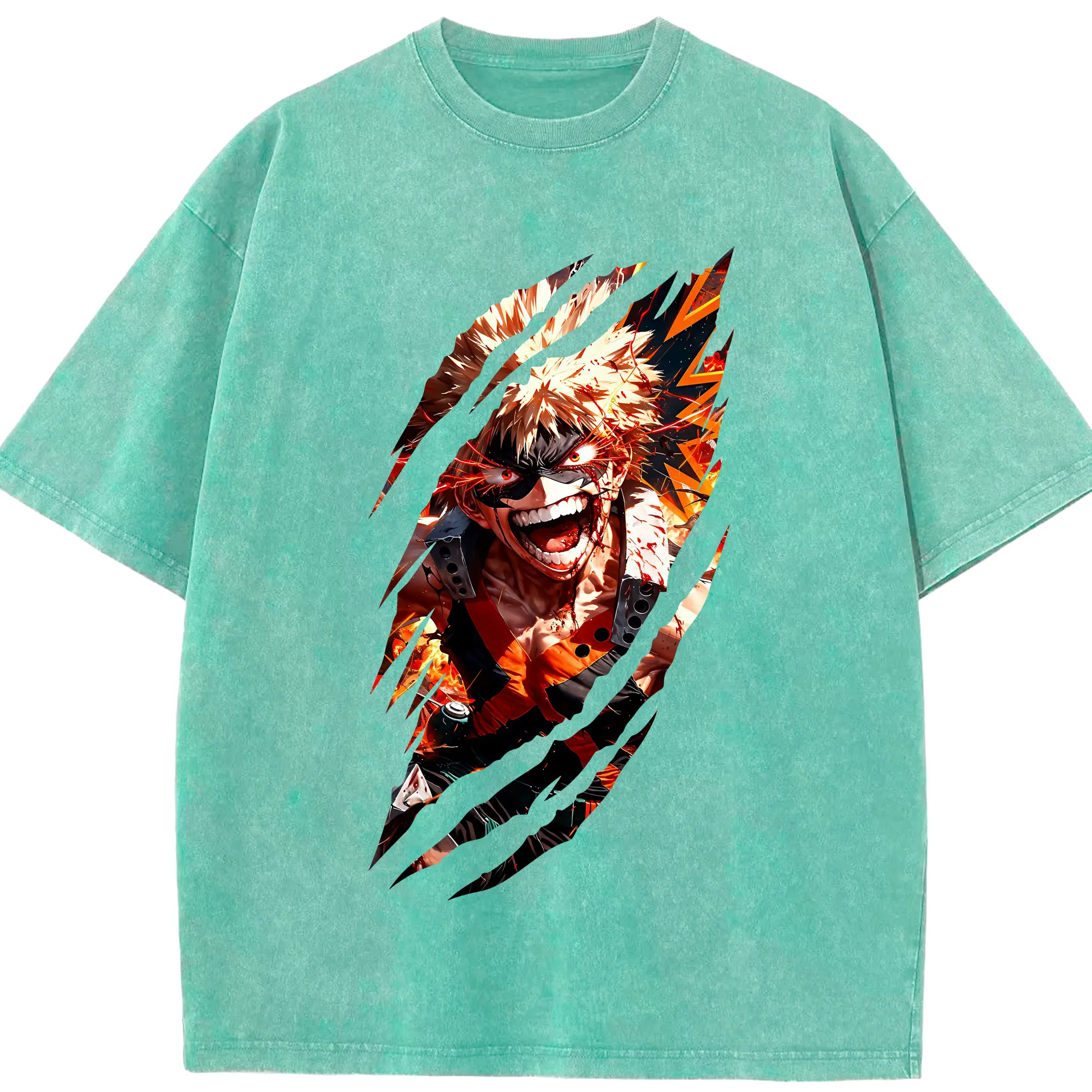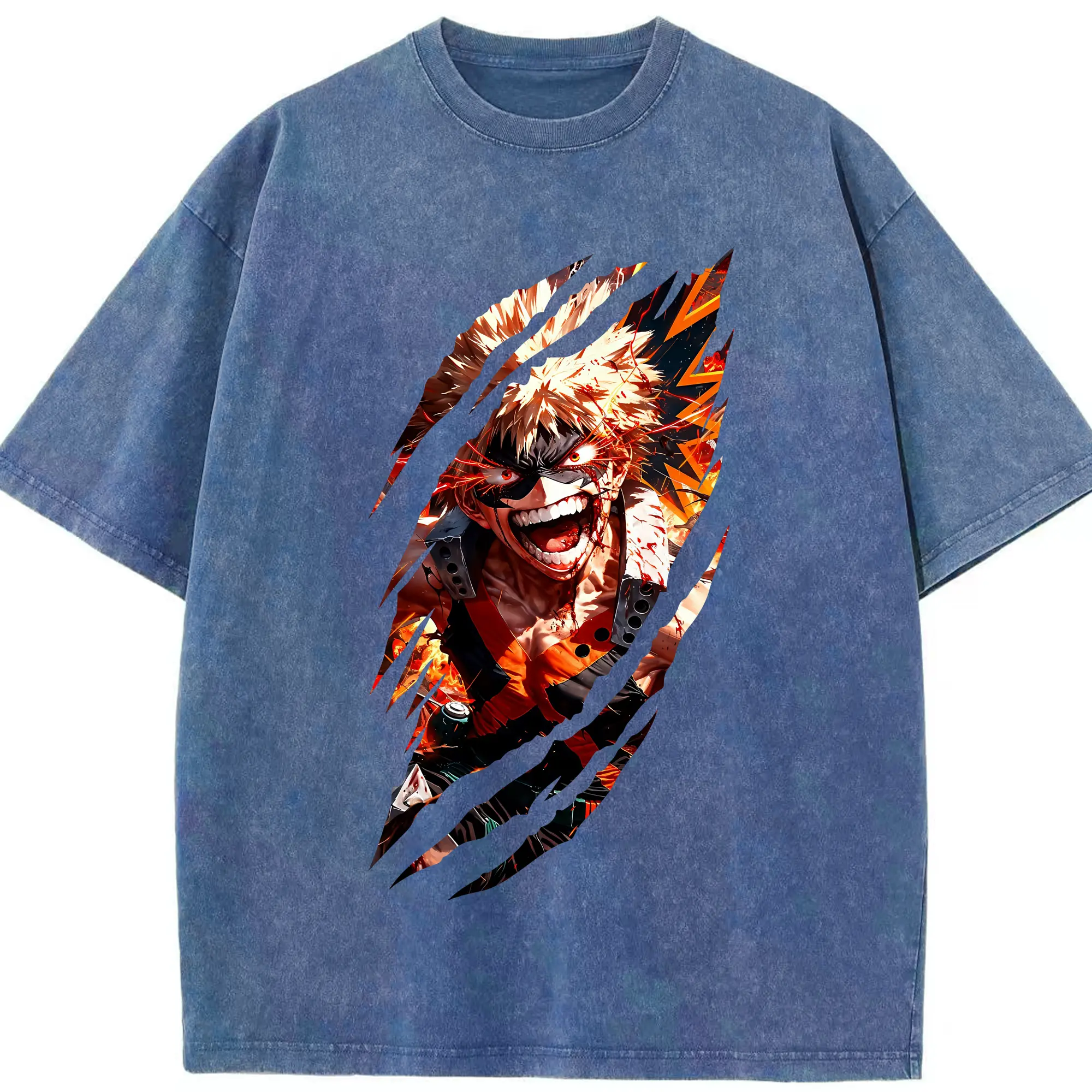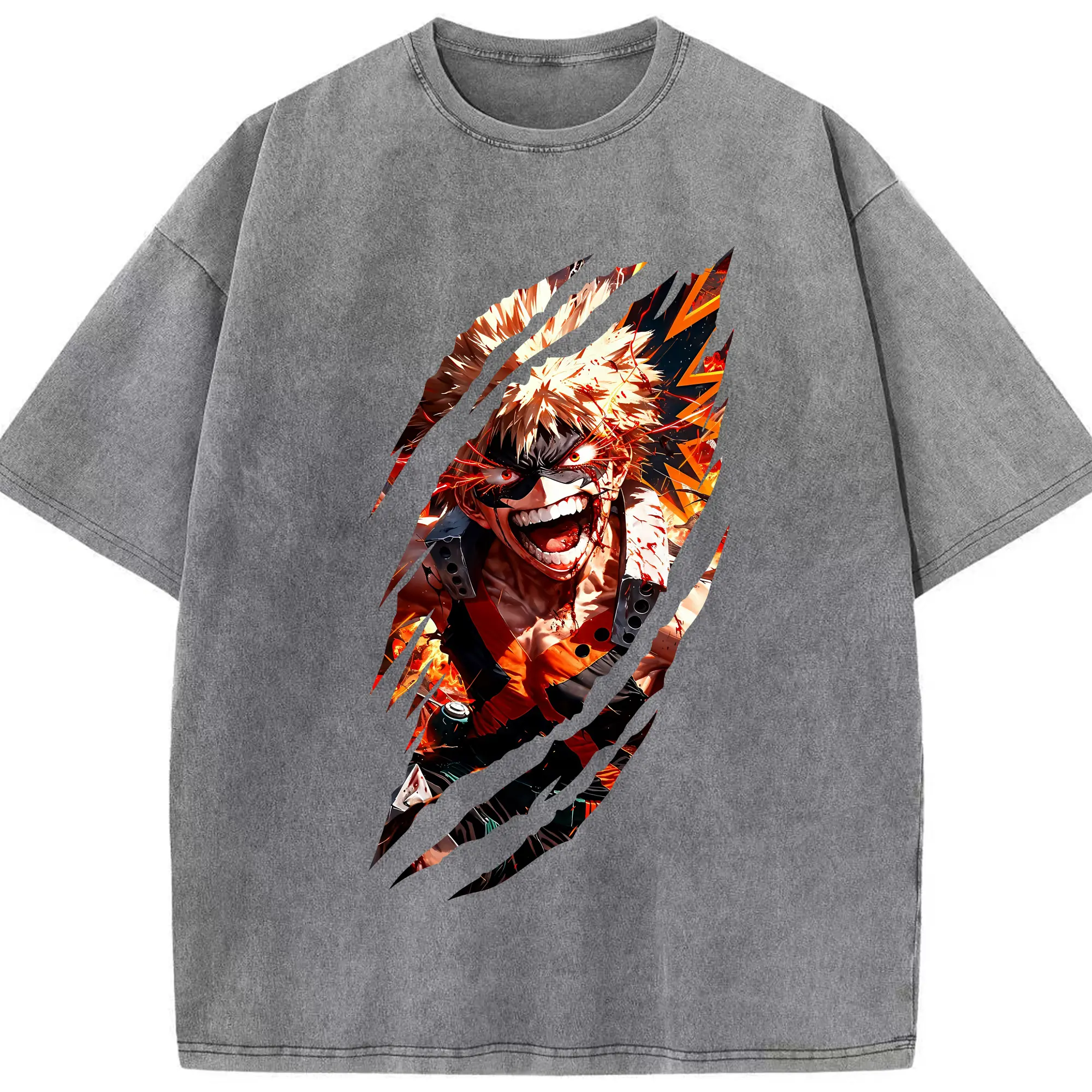 僕のヒーローアカデミア グッズ,爆豪勝己 - 綿100% ヴィンテージ風 半袖Tシャツ ・ 背面プリント ・ 柔らか肌触り ・ 通気性 快適 ・ スポーツ カジュアル 外出用