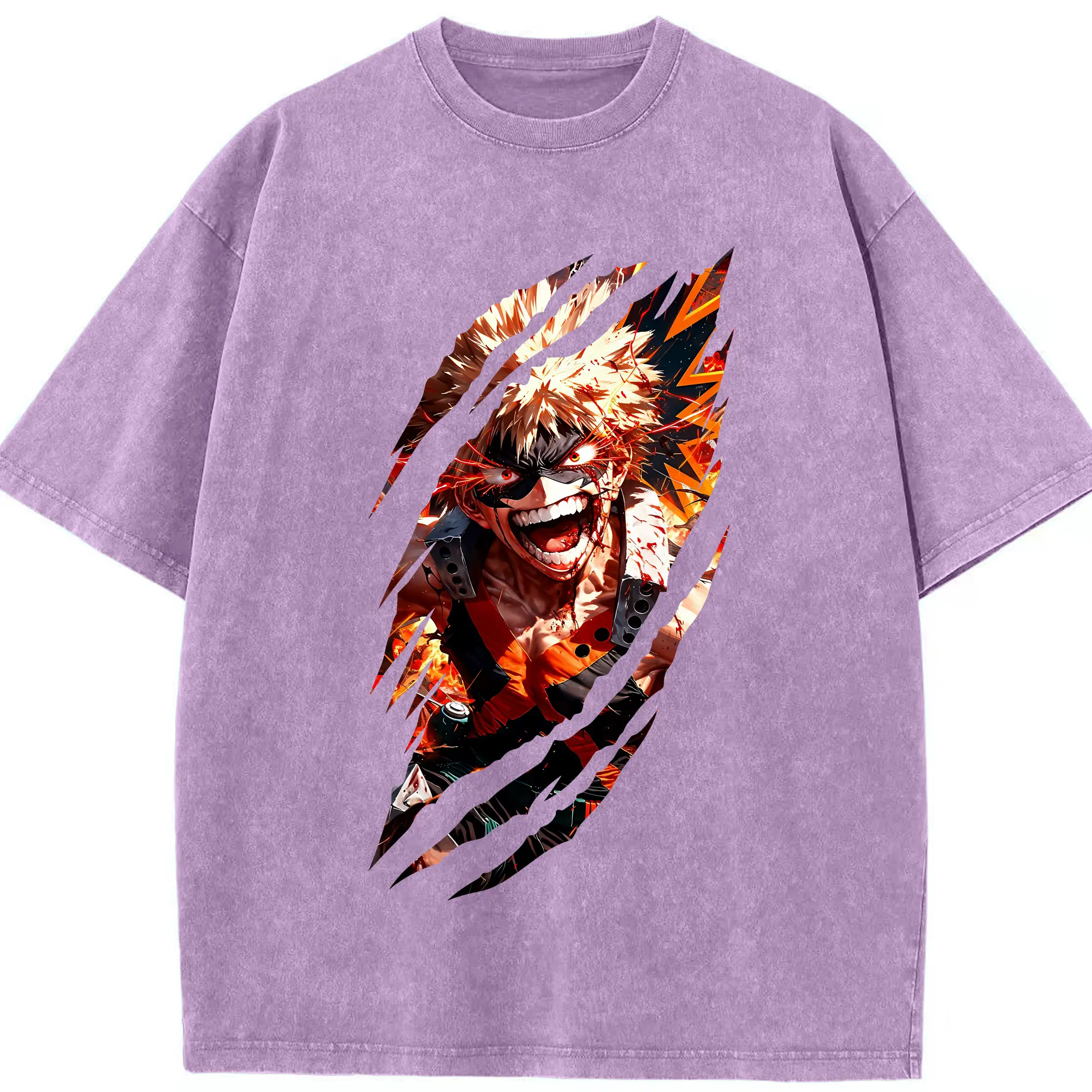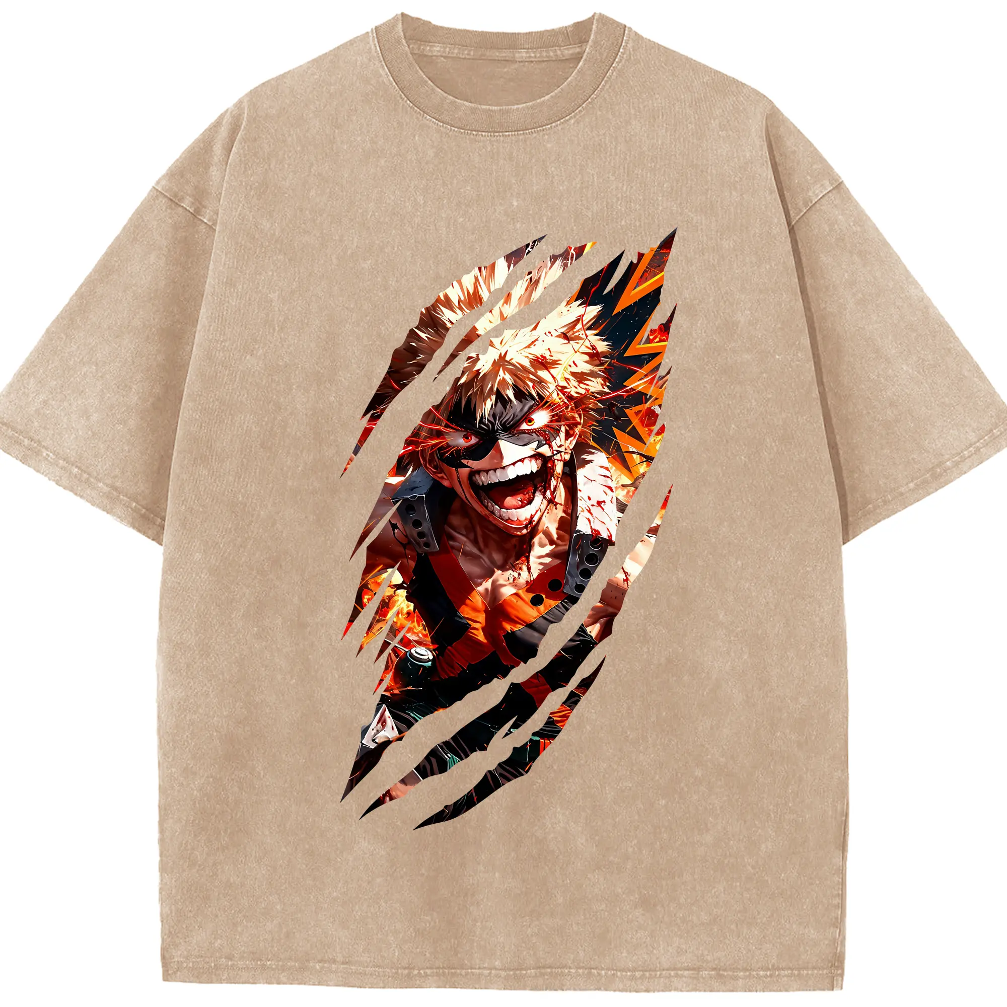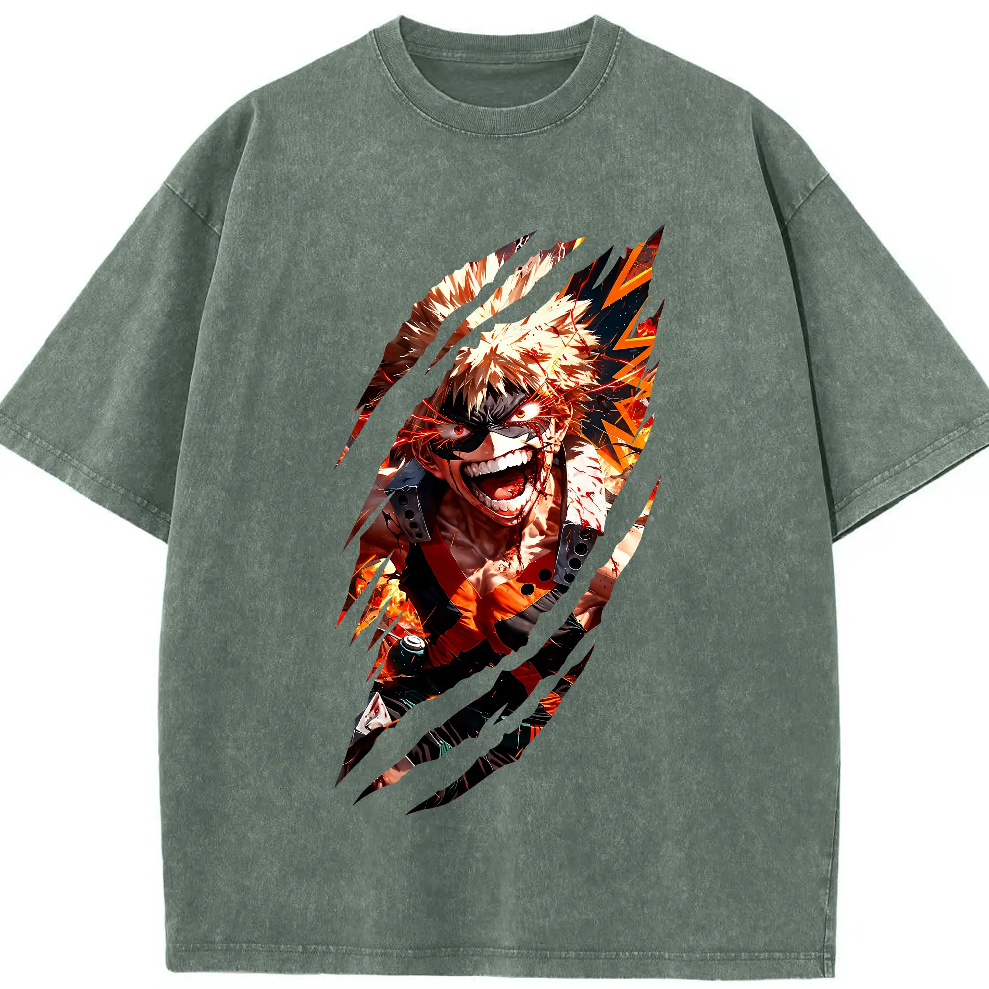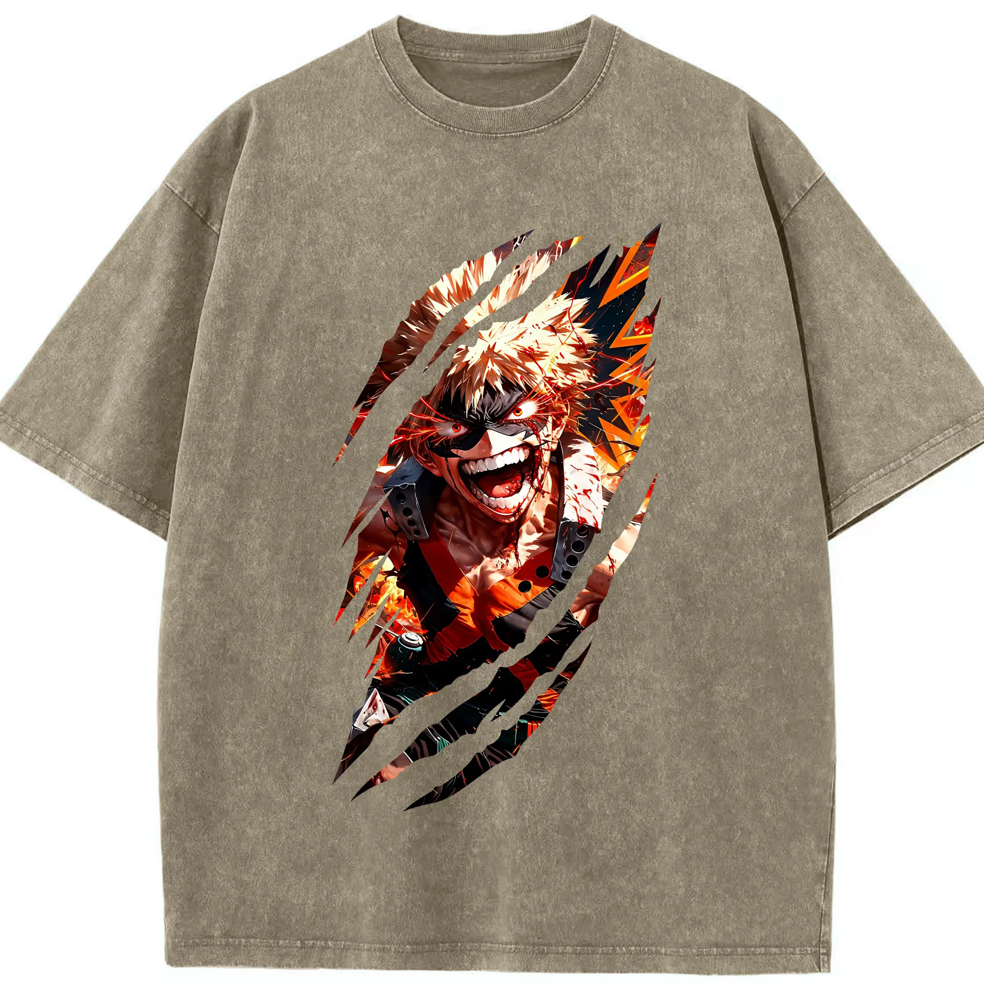 僕のヒーローアカデミア グッズ,爆豪勝己 - 綿100% ヴィンテージ風 半袖Tシャツ ・ 背面プリント ・ 柔らか肌触り ・ 通気性 快適 ・ スポーツ カジュアル 外出用