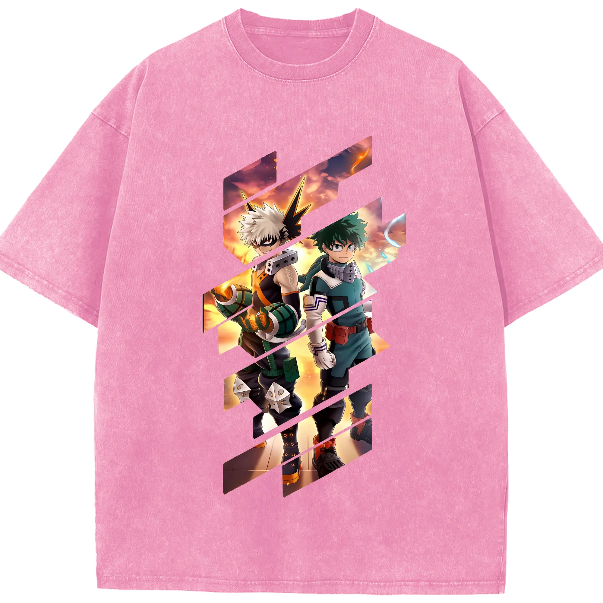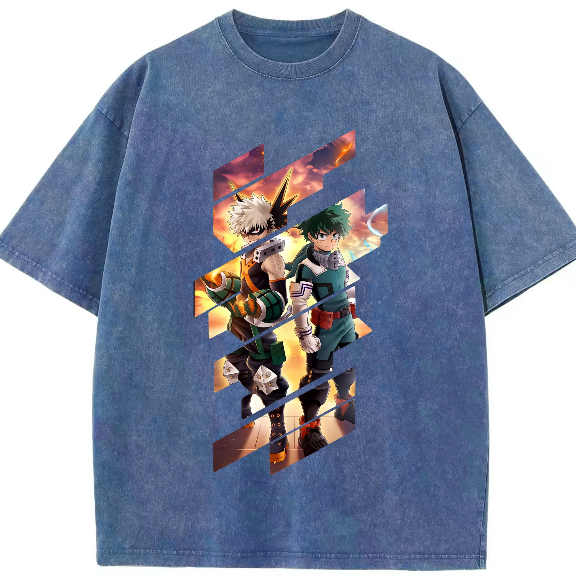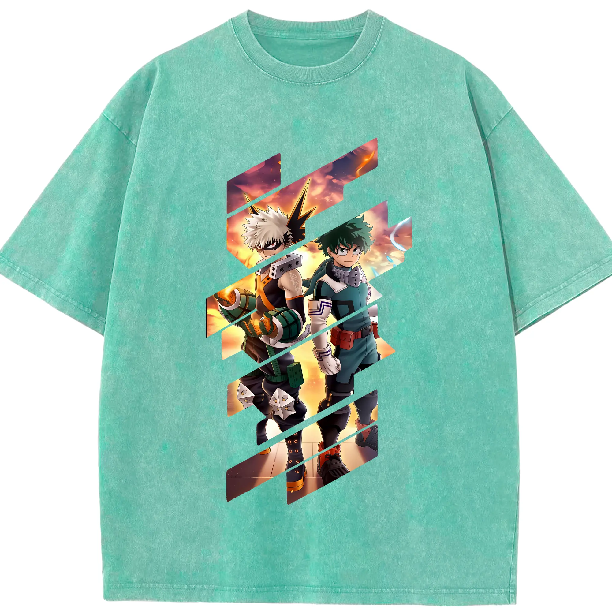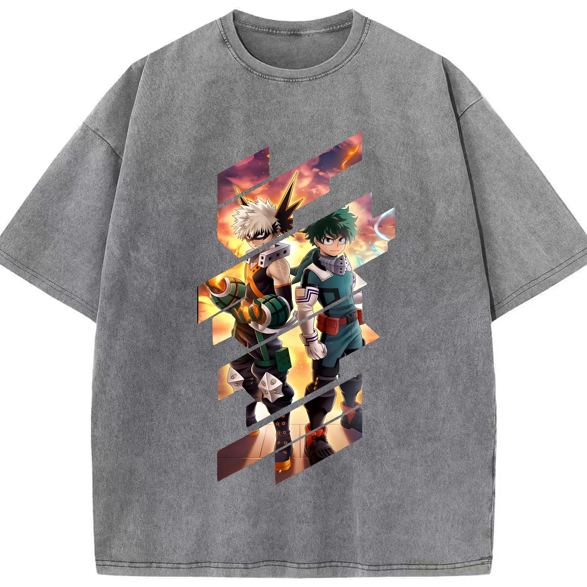 僕のヒーローアカデミア グッズ,爆豪勝己 - 綿100% ヴィンテージ風 半袖Tシャツ ・ 背面プリント ・ 柔らか肌触り ・ 通気性 快適 ・ スポーツ カジュアル 外出用