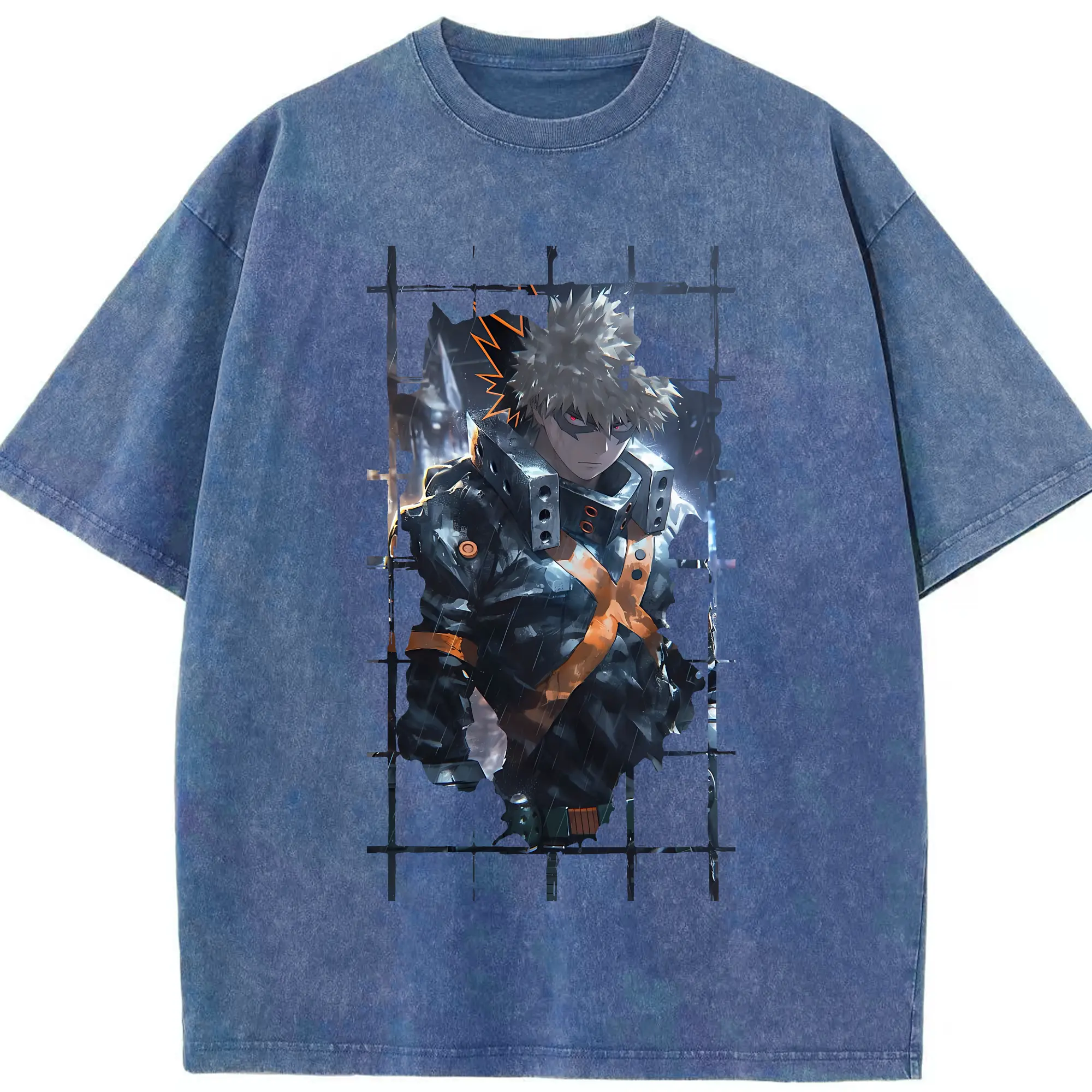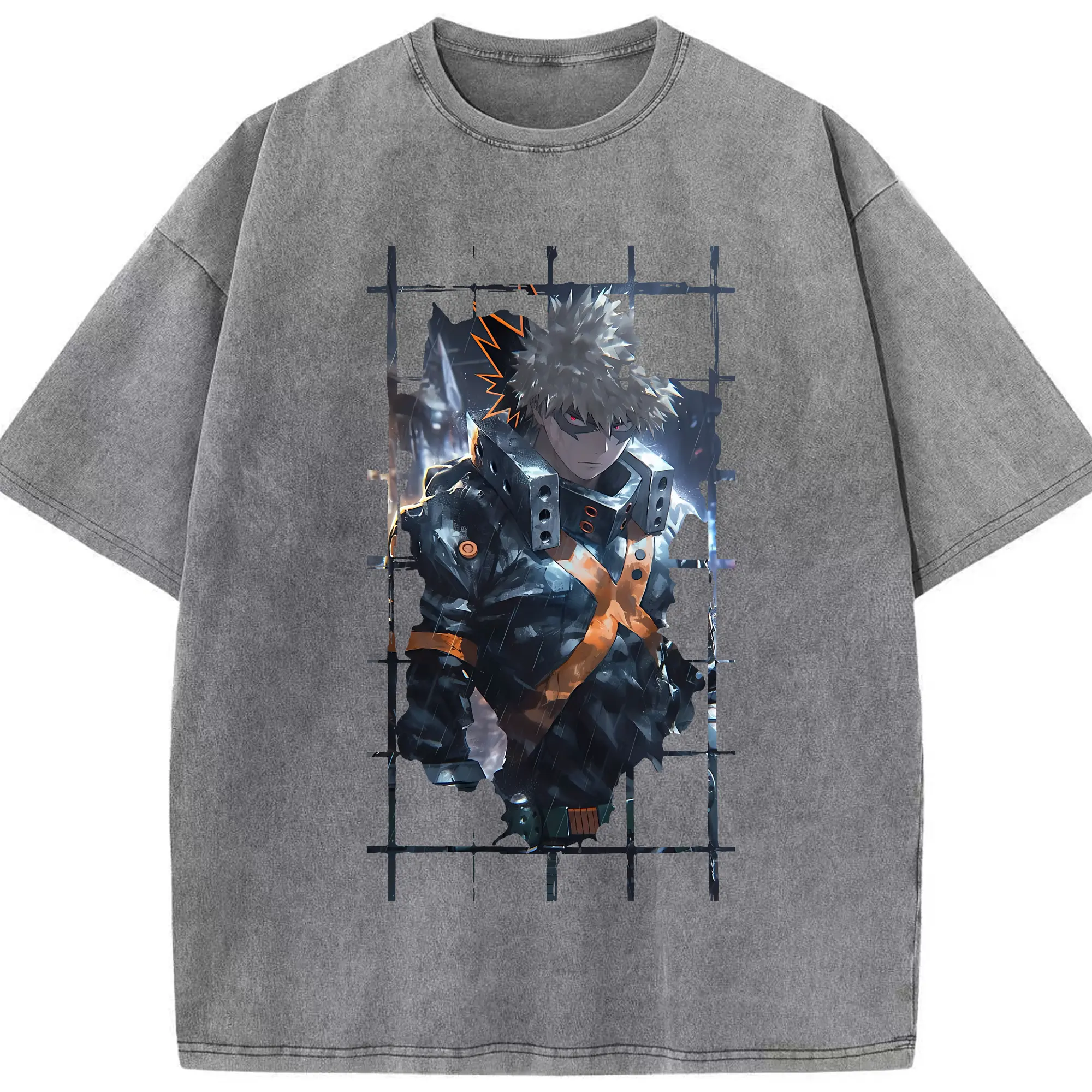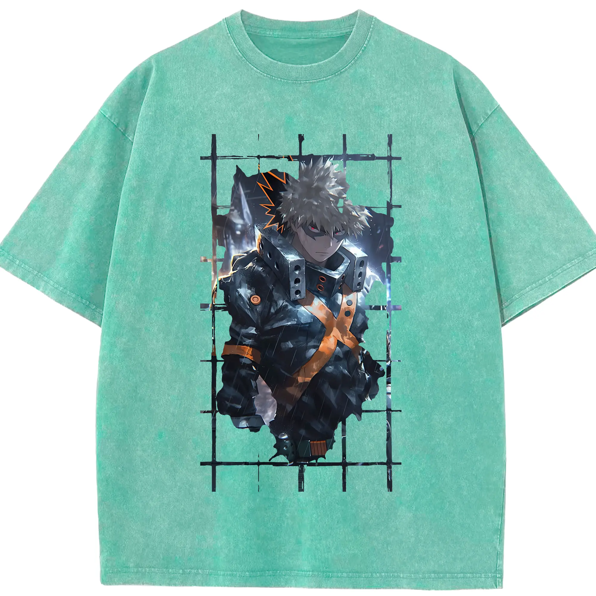 僕のヒーローアカデミア グッズ,爆豪勝己 - 綿100% ヴィンテージ風 半袖Tシャツ ・ 背面プリント ・ 柔らか肌触り ・ 通気性 快適 ・ スポーツ カジュアル 外出用