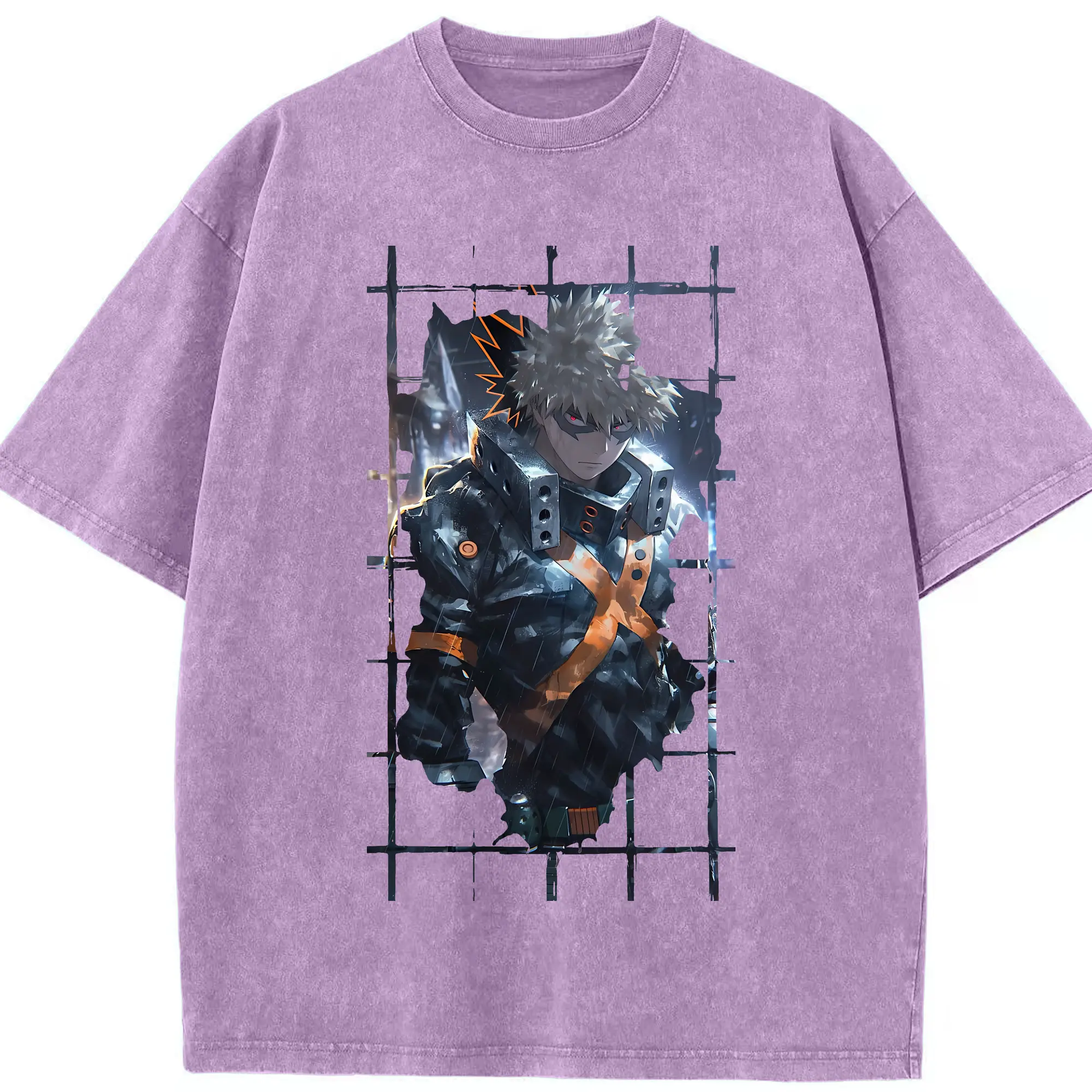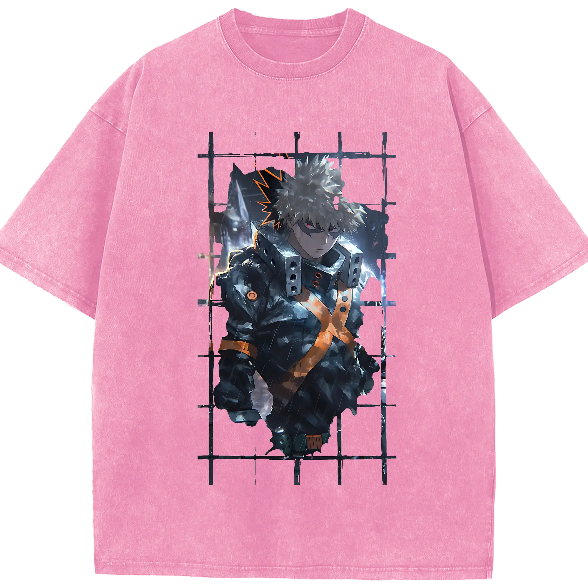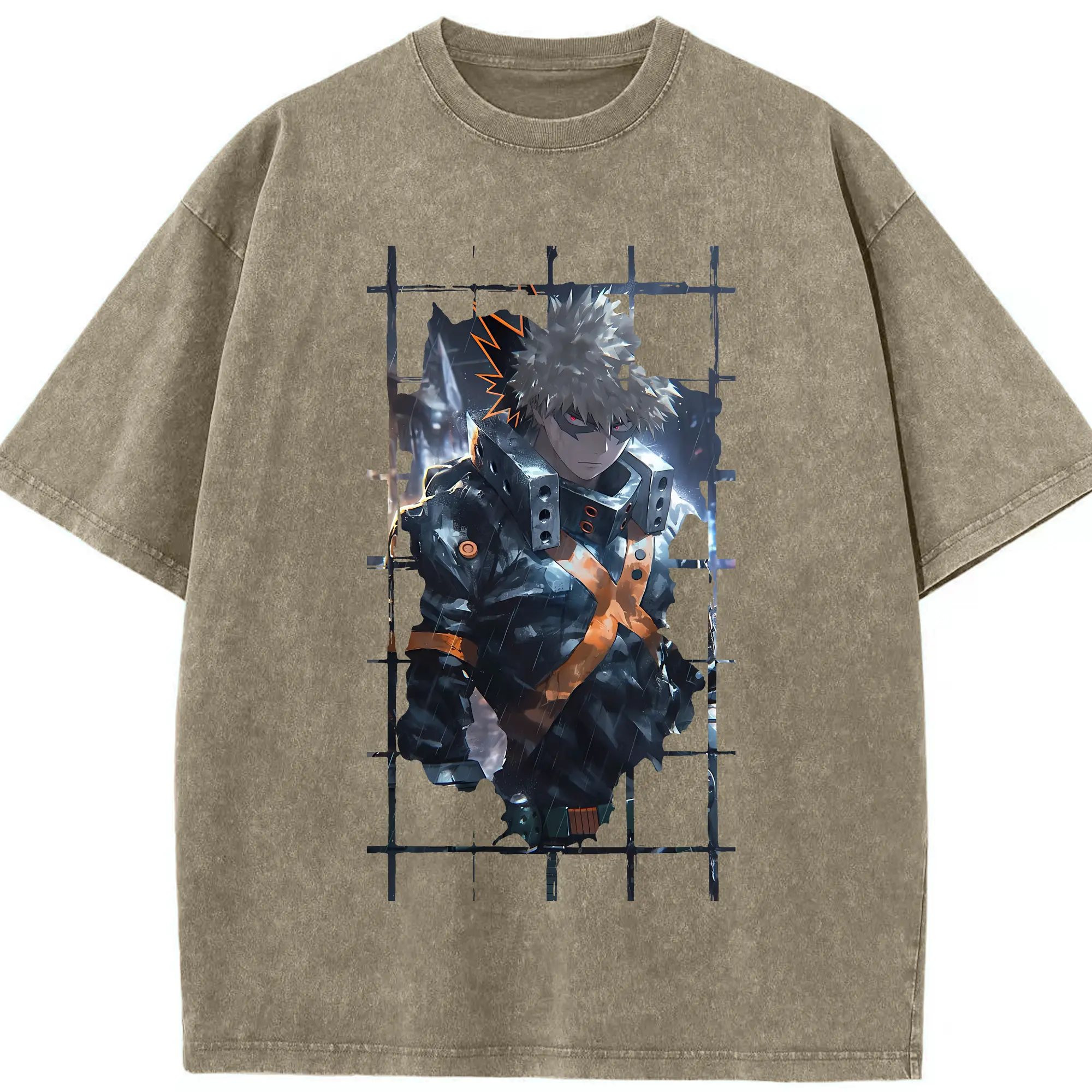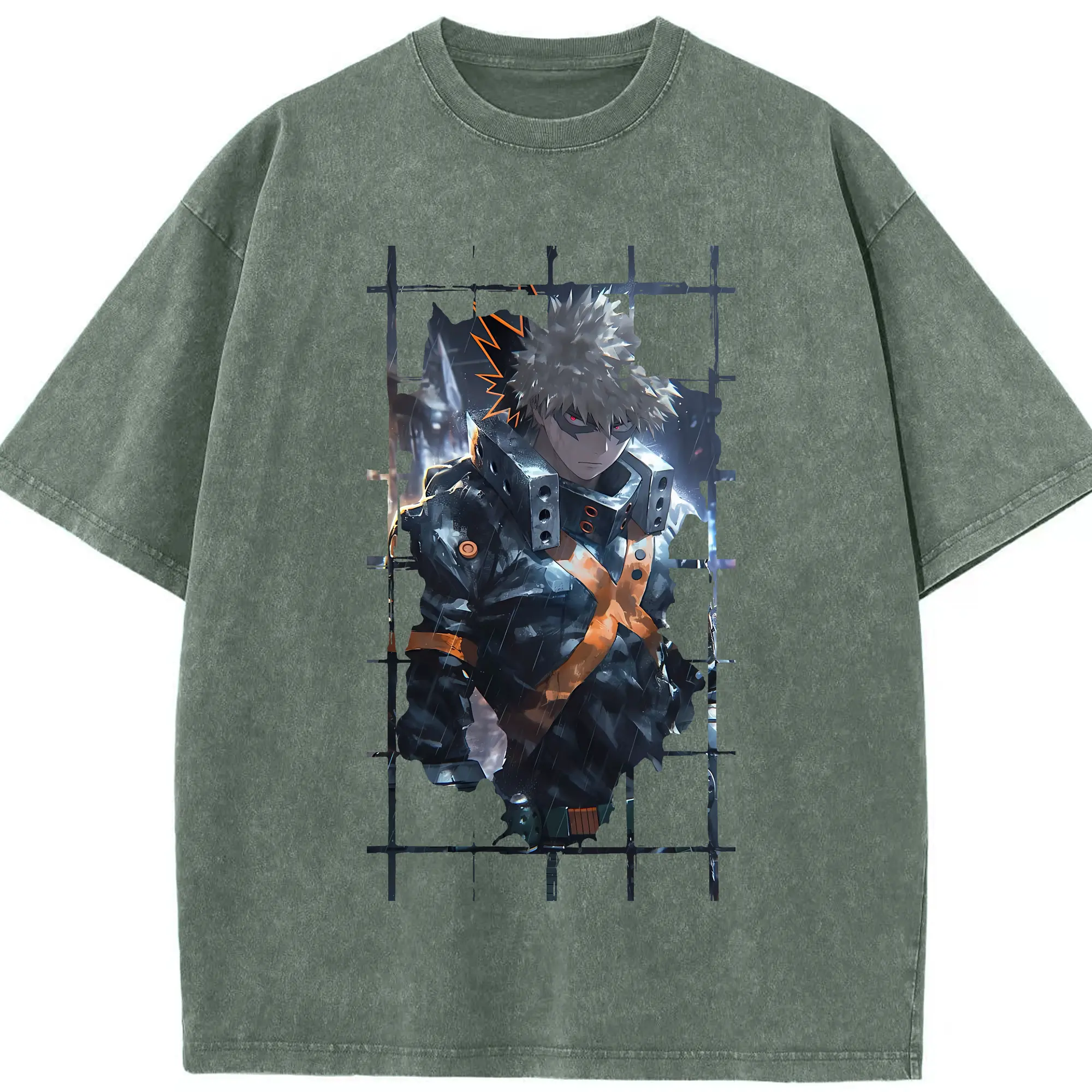 僕のヒーローアカデミア グッズ,爆豪勝己 - 綿100% ヴィンテージ風 半袖Tシャツ ・ 背面プリント ・ 柔らか肌触り ・ 通気性 快適 ・ スポーツ カジュアル 外出用