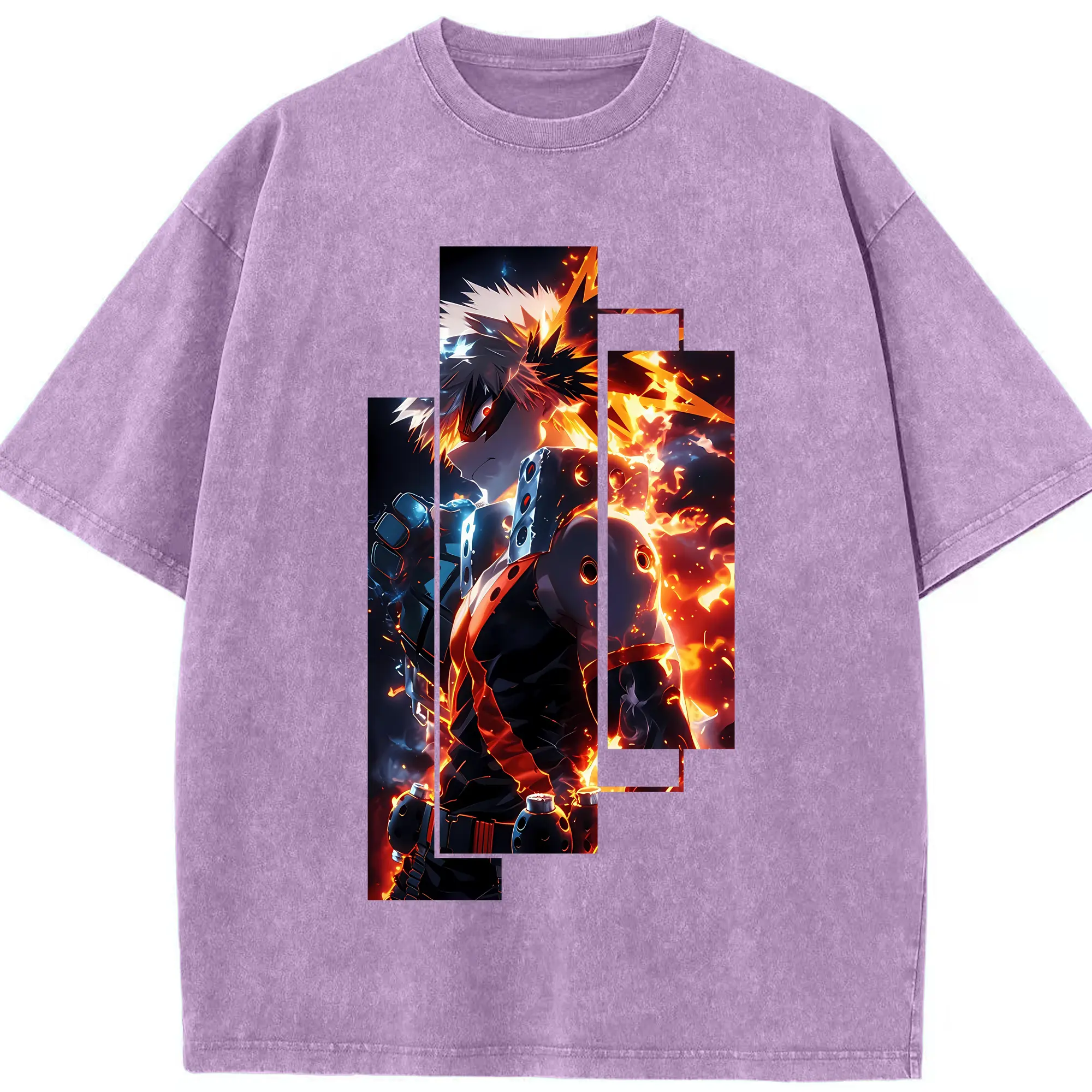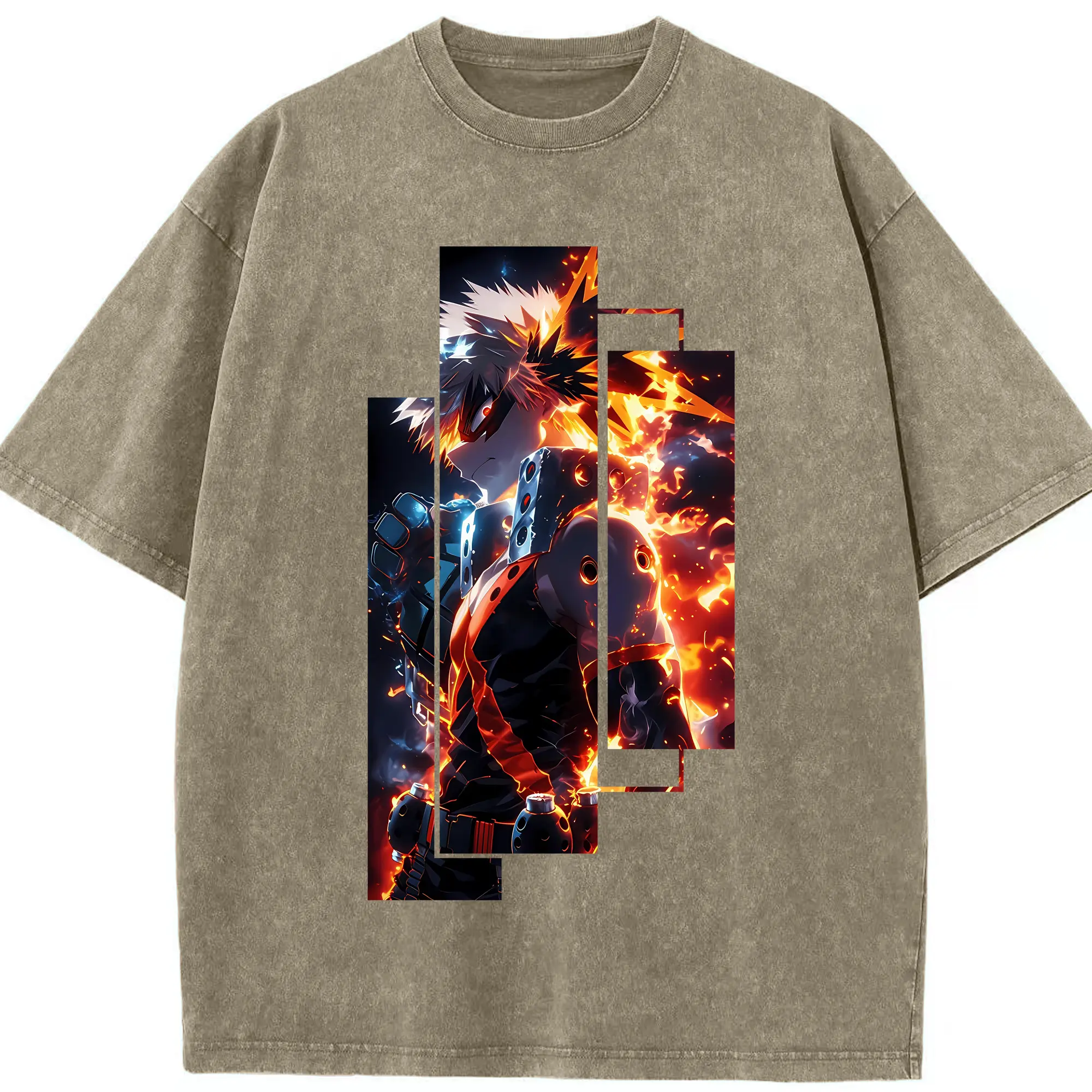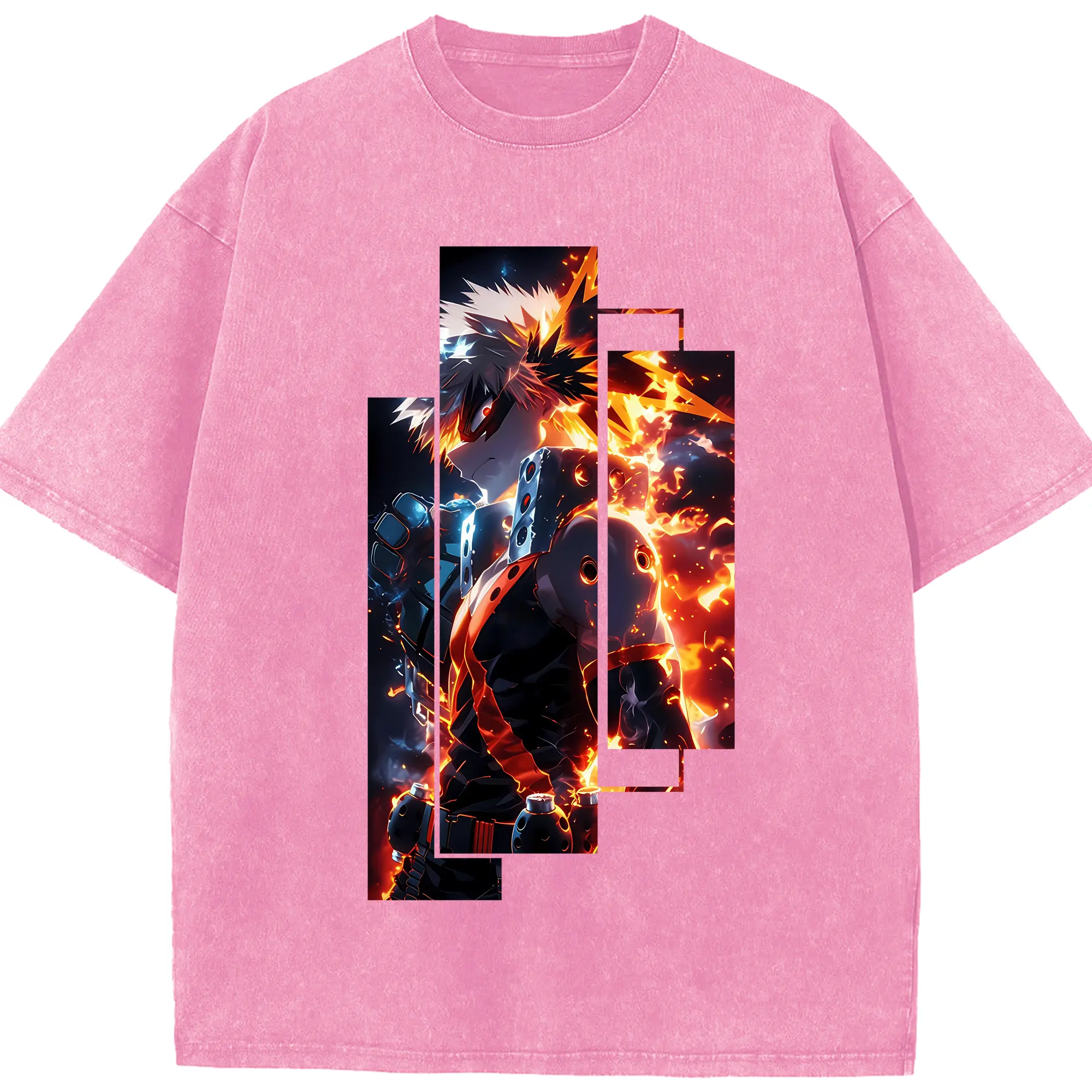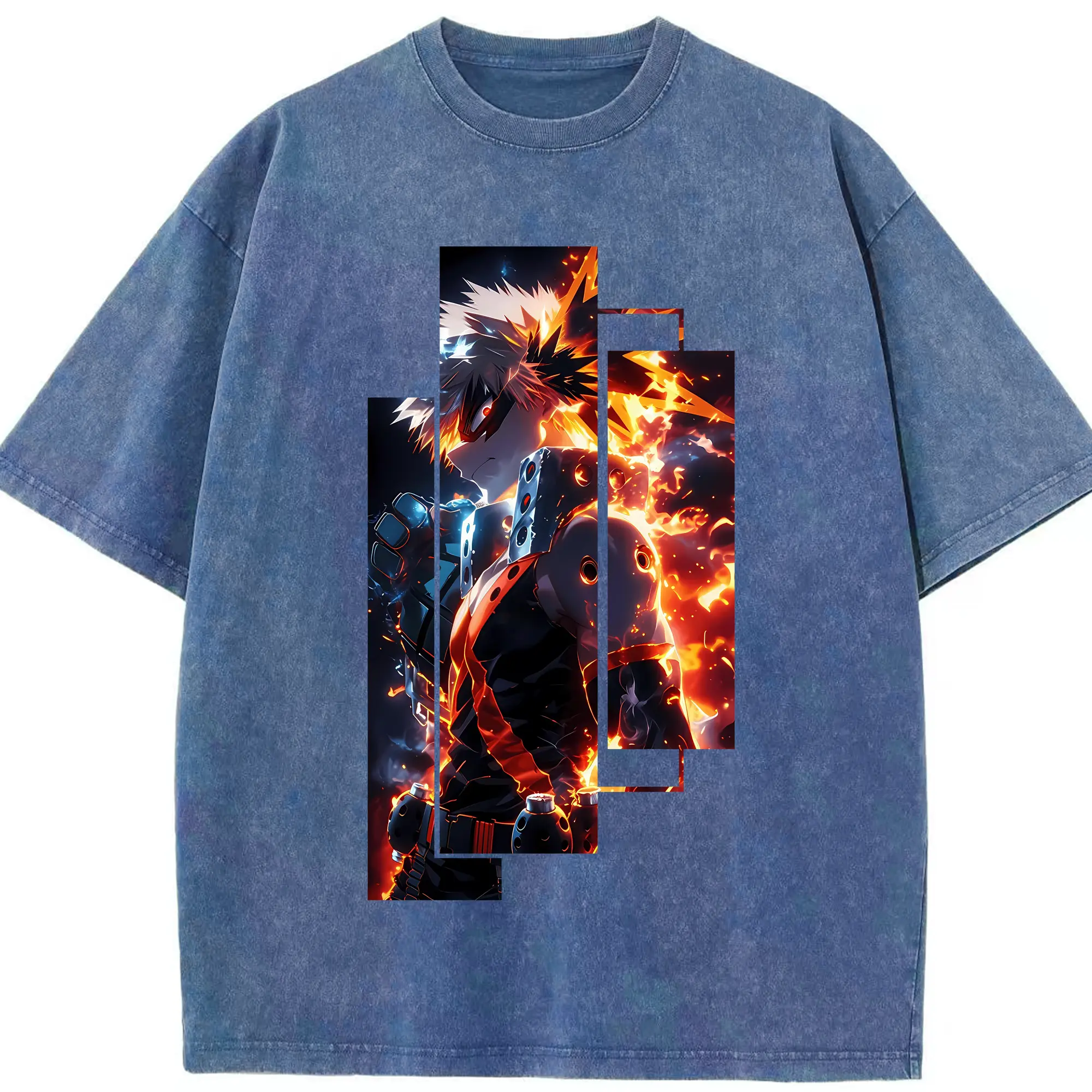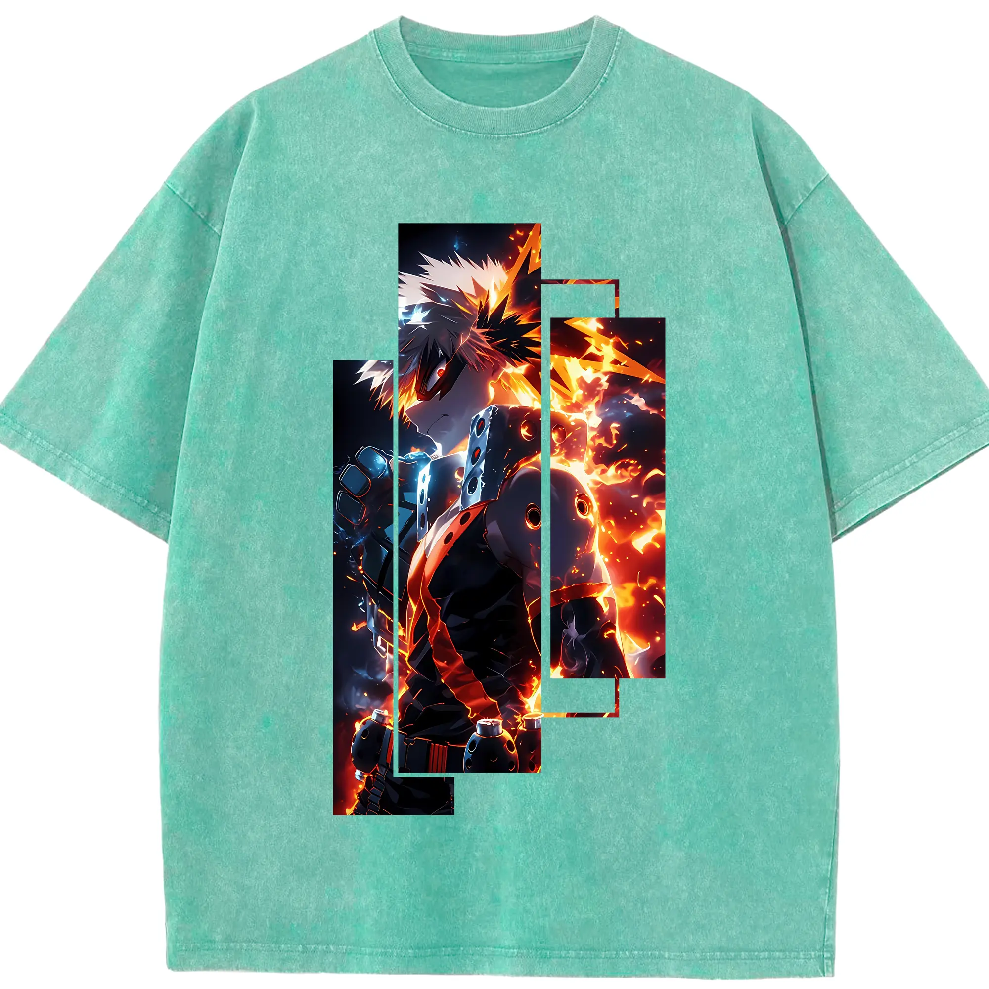 僕のヒーローアカデミア グッズ,爆豪勝己 - 綿100% ヴィンテージ風 半袖Tシャツ ・ 背面プリント ・ 柔らか肌触り ・ 通気性 快適 ・ スポーツ カジュアル 外出用