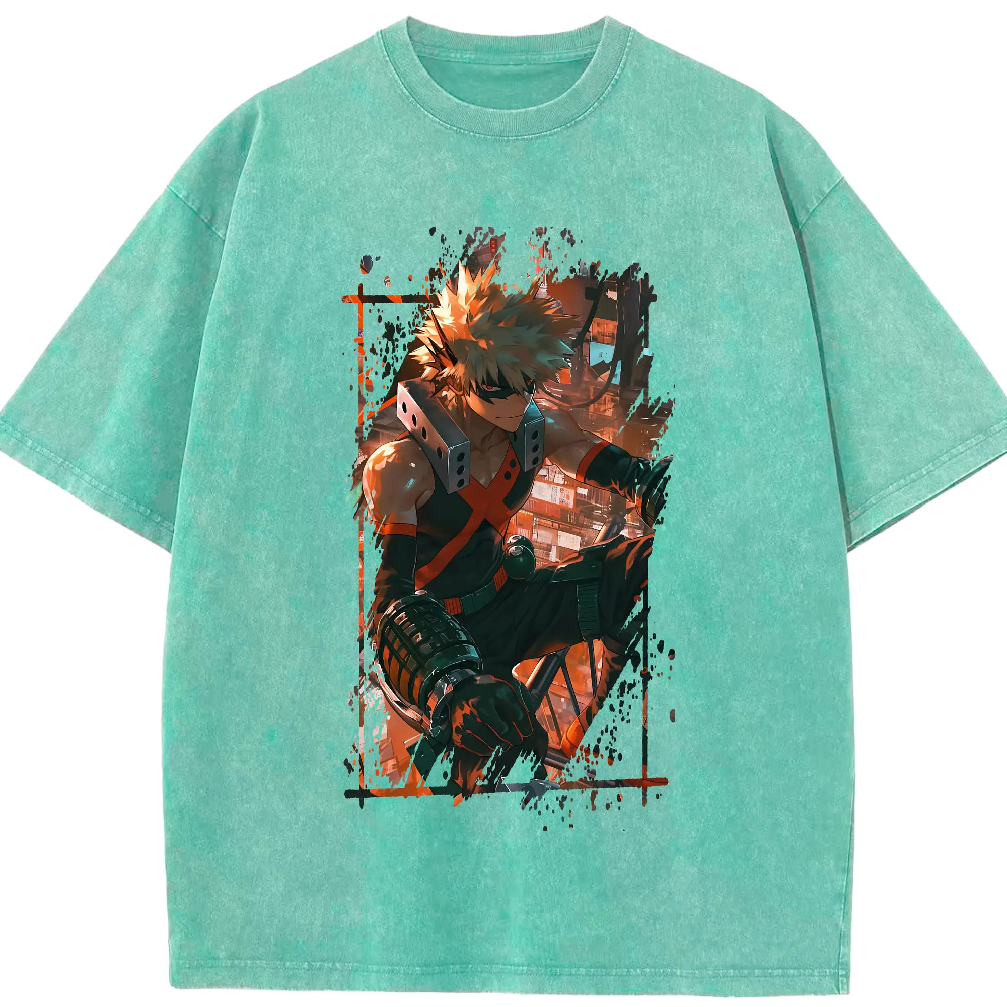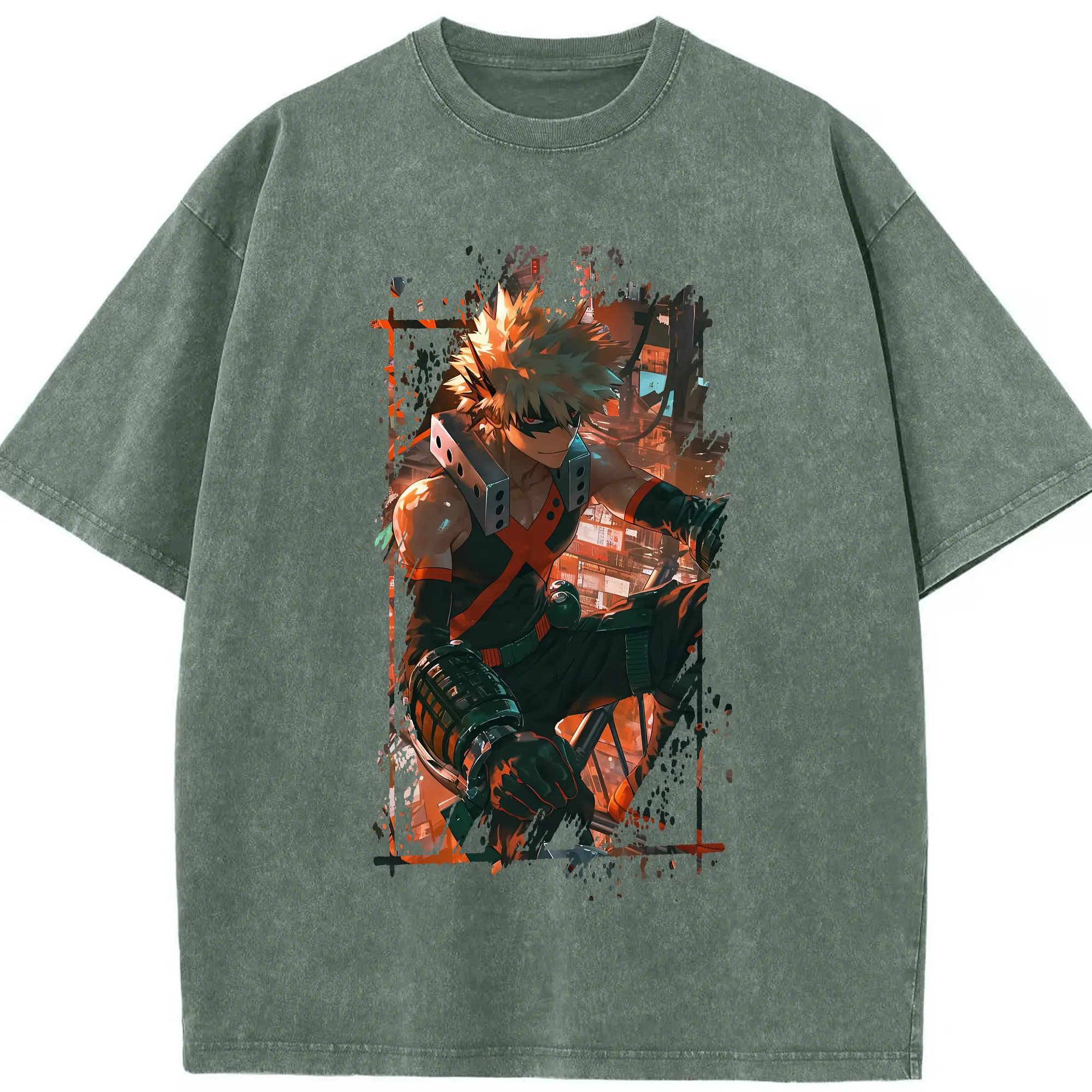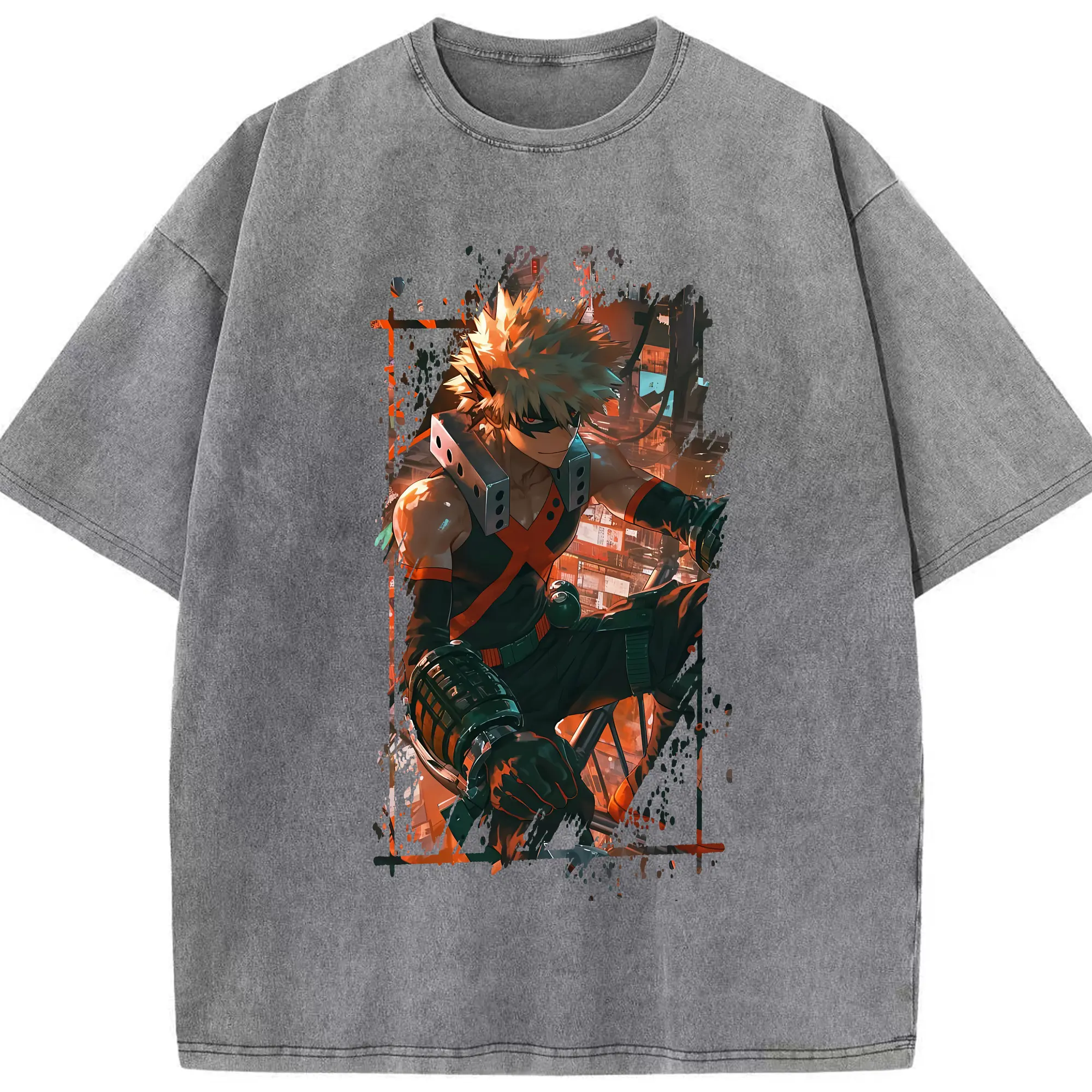 僕のヒーローアカデミア グッズ,爆豪勝己 - 綿100% ヴィンテージ風 半袖Tシャツ ・ 背面プリント ・ 柔らか肌触り ・ 通気性 快適 ・ スポーツ カジュアル 外出用