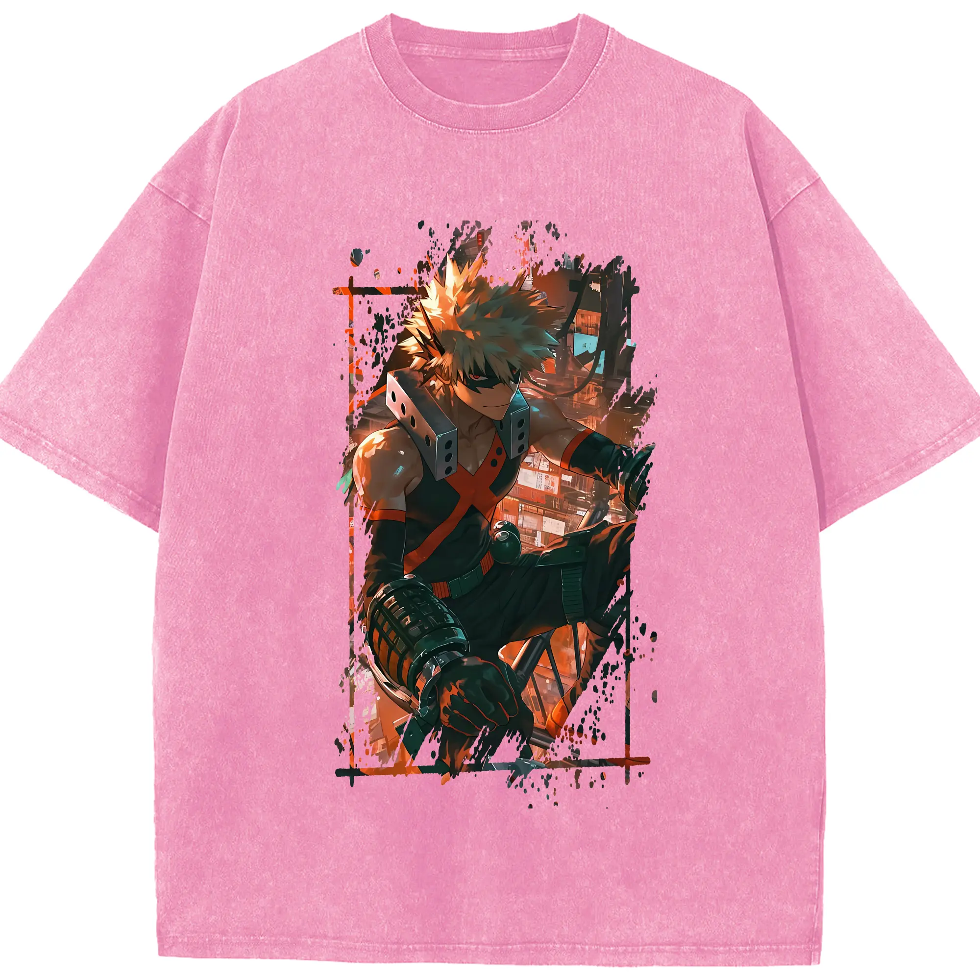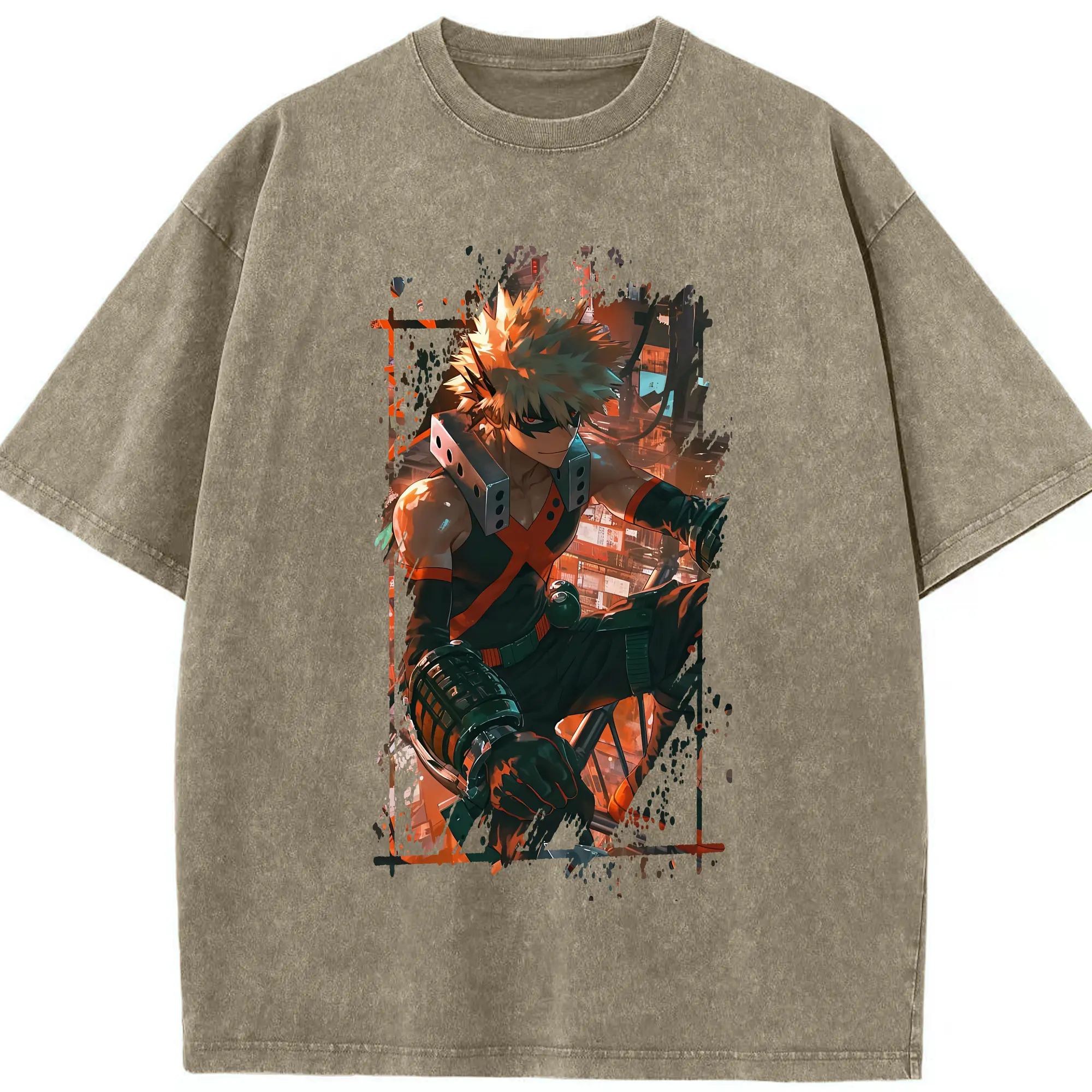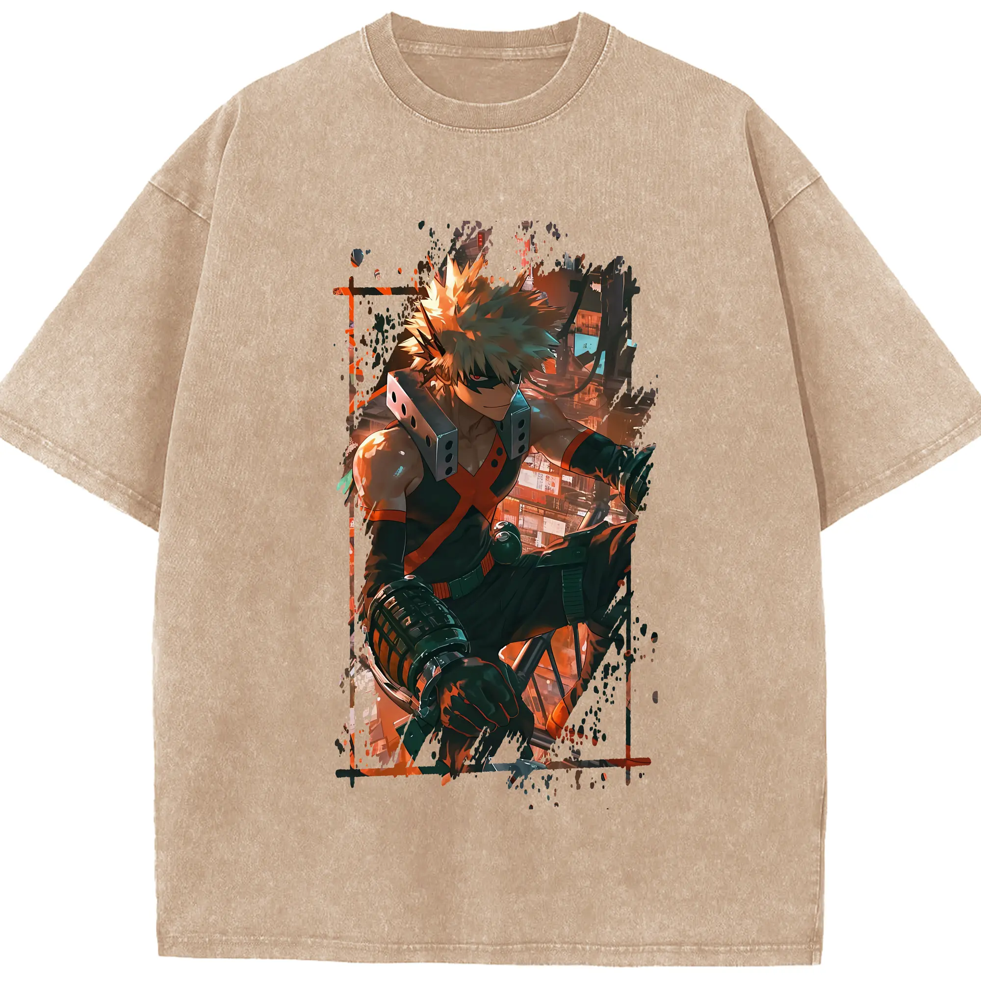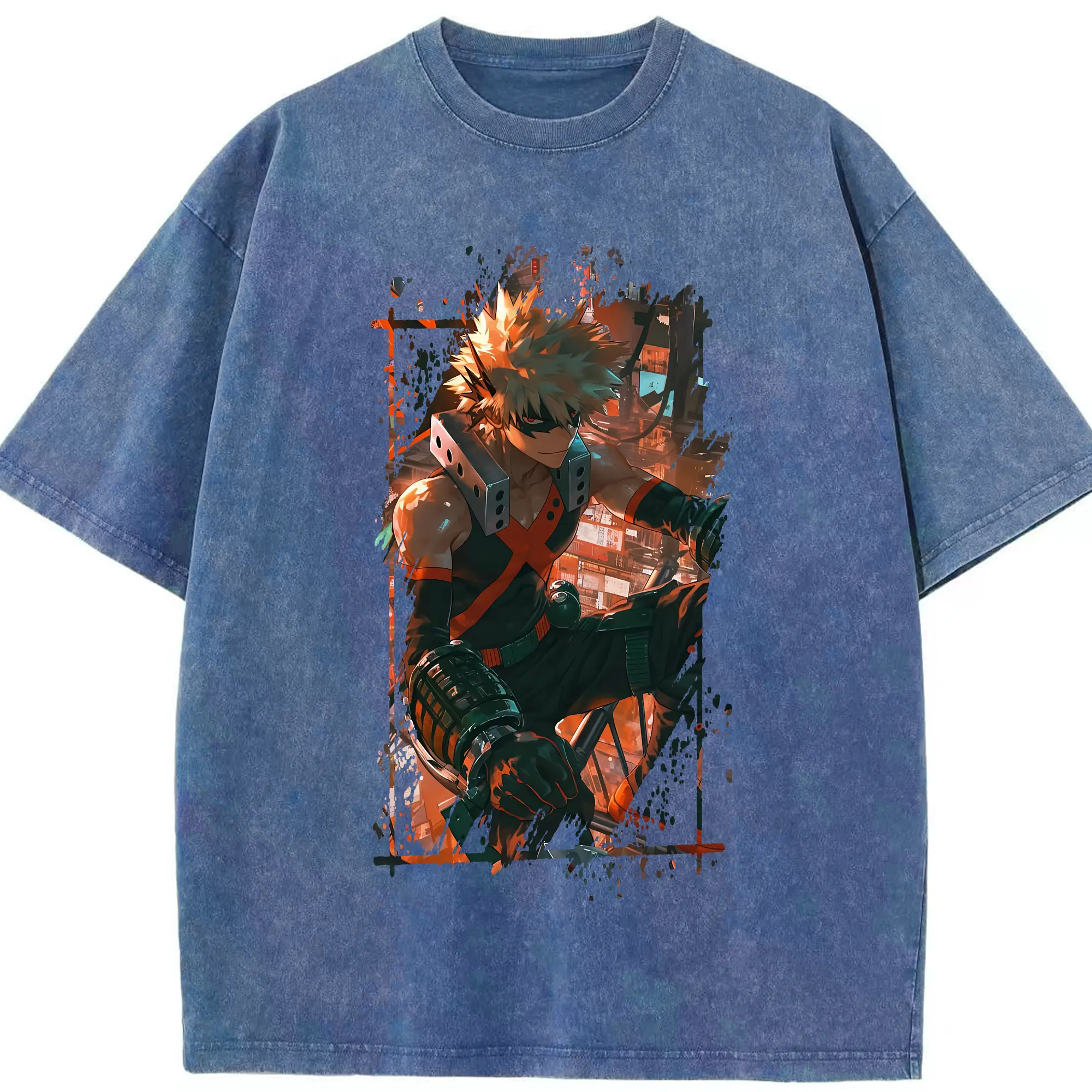僕のヒーローアカデミア グッズ,爆豪勝己 - 綿100% ヴィンテージ風 半袖Tシャツ ・ 背面プリント ・ 柔らか肌触り ・ 通気性 快適 ・ スポーツ カジュアル 外出用