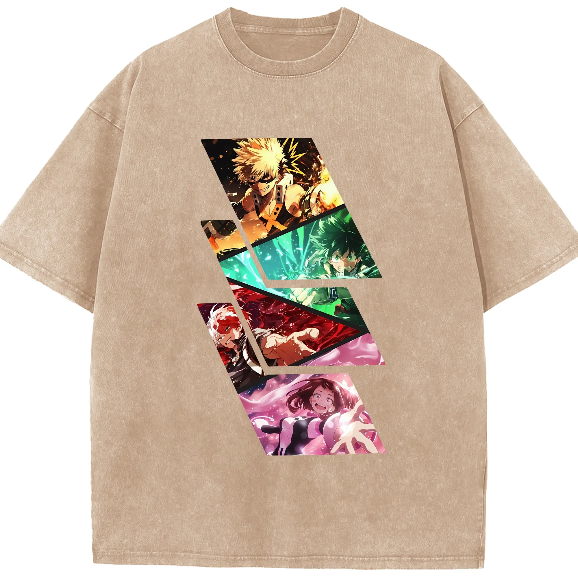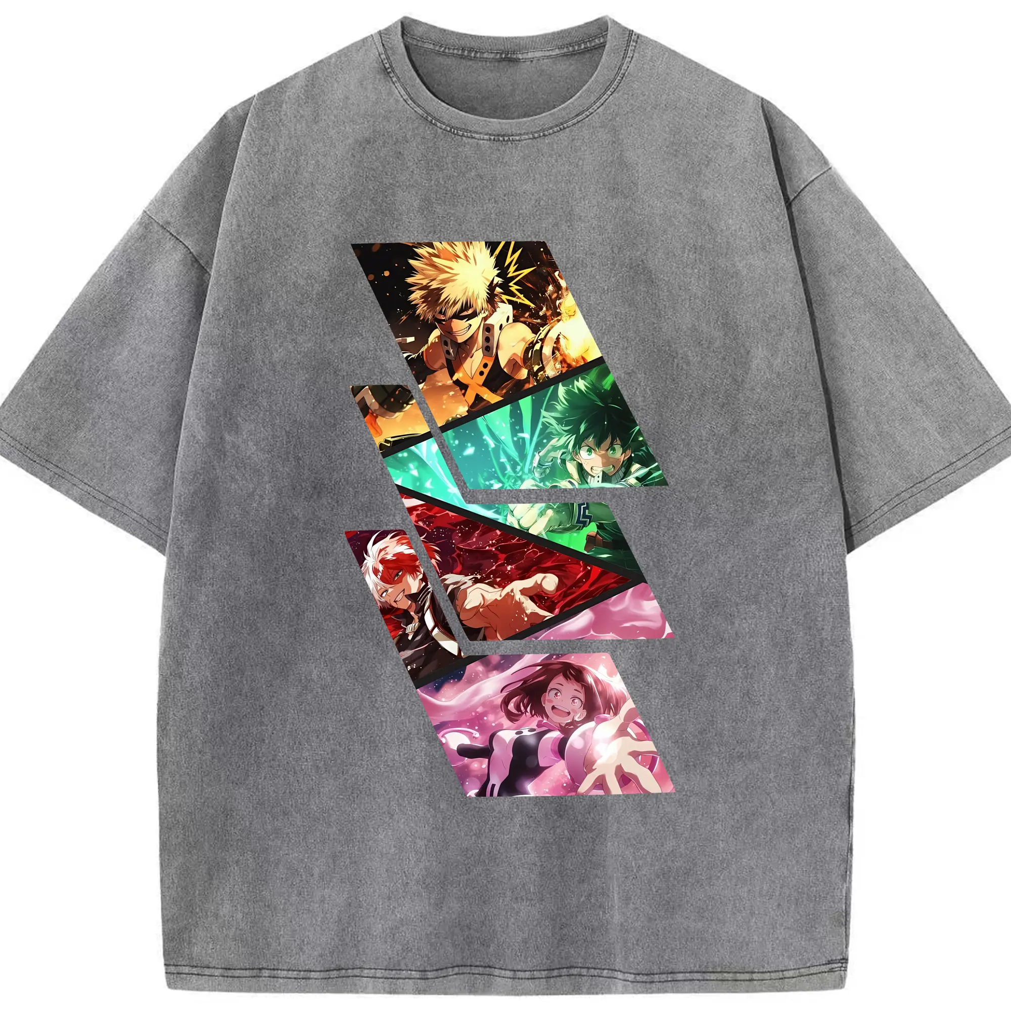 僕のヒーローアカデミア グッズ,爆豪勝己 - 綿100% ヴィンテージ風 半袖Tシャツ ・ 背面プリント ・ 柔らか肌触り ・ 通気性 快適 ・ スポーツ カジュアル 外出用