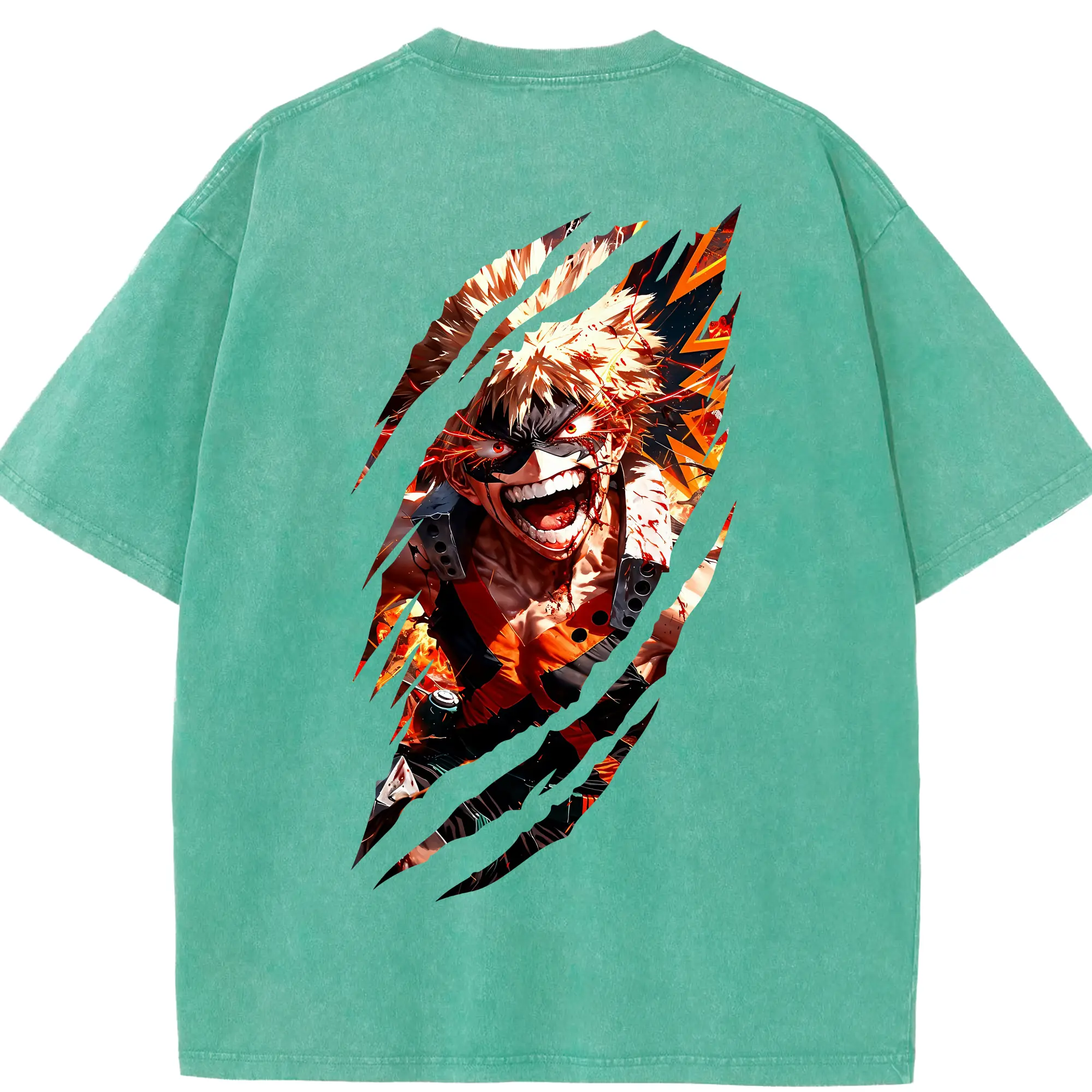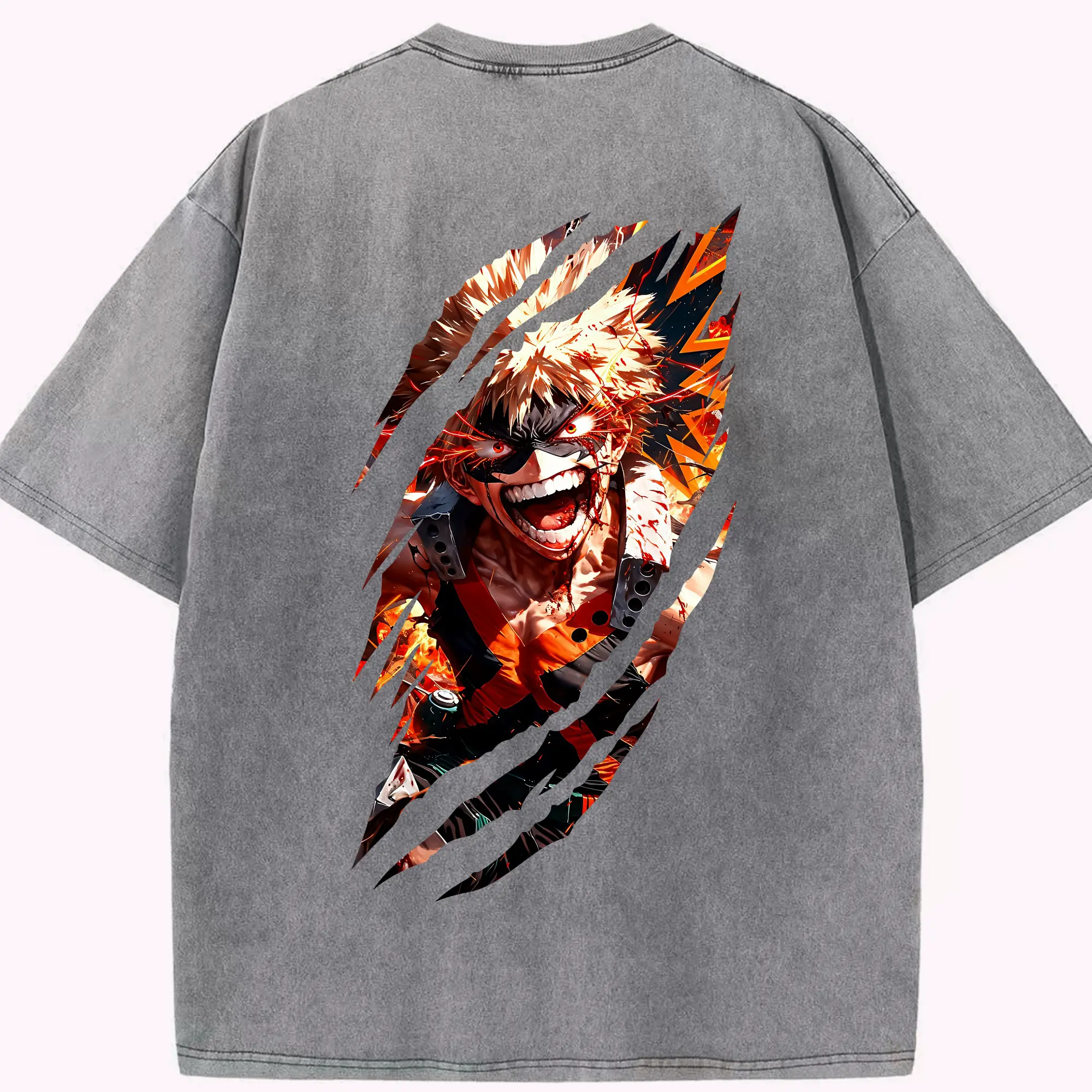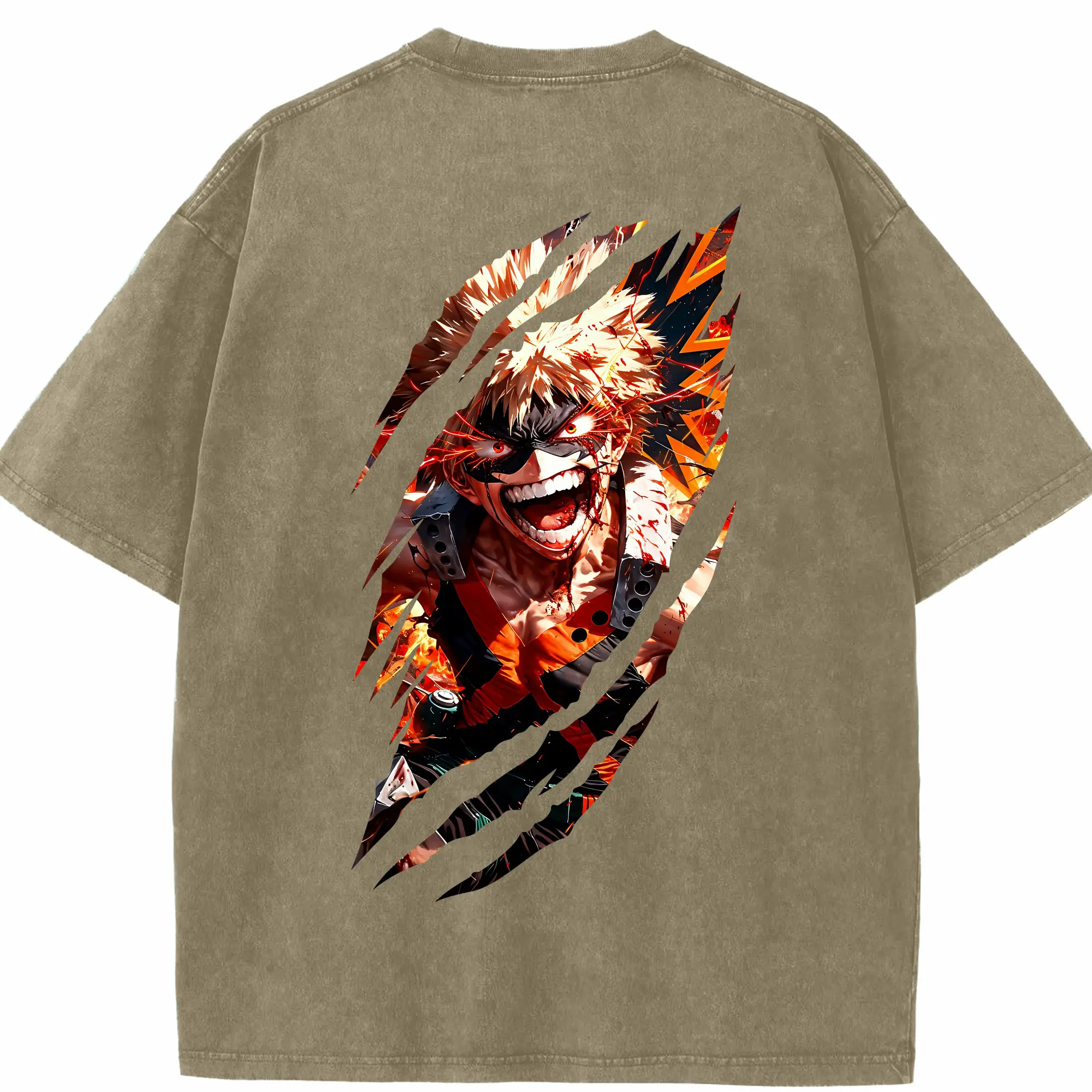 僕のヒーローアカデミア グッズ,爆豪勝己 - 綿100% ヴィンテージ風 半袖Tシャツ ・ フロントプリント ・ 柔らか肌触り ・ 通気性 快適 ・ スポーツ カジュアル 外出用