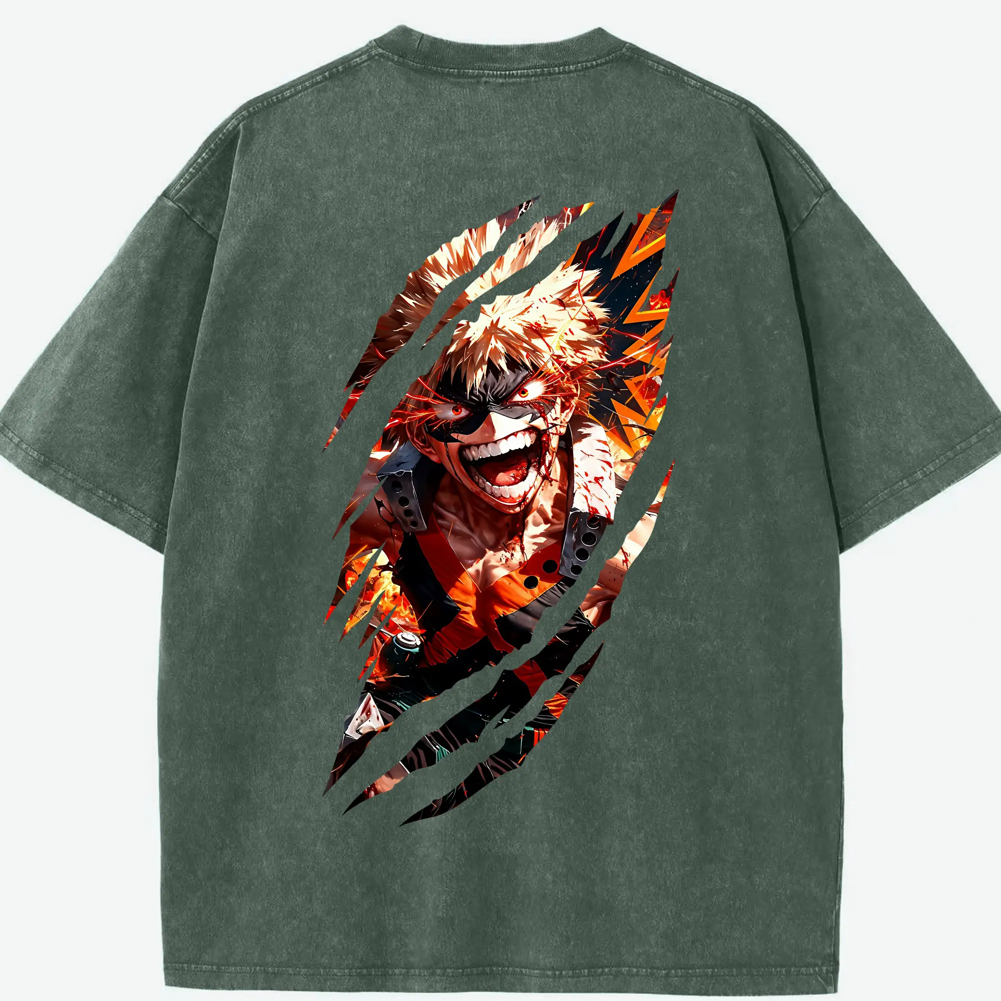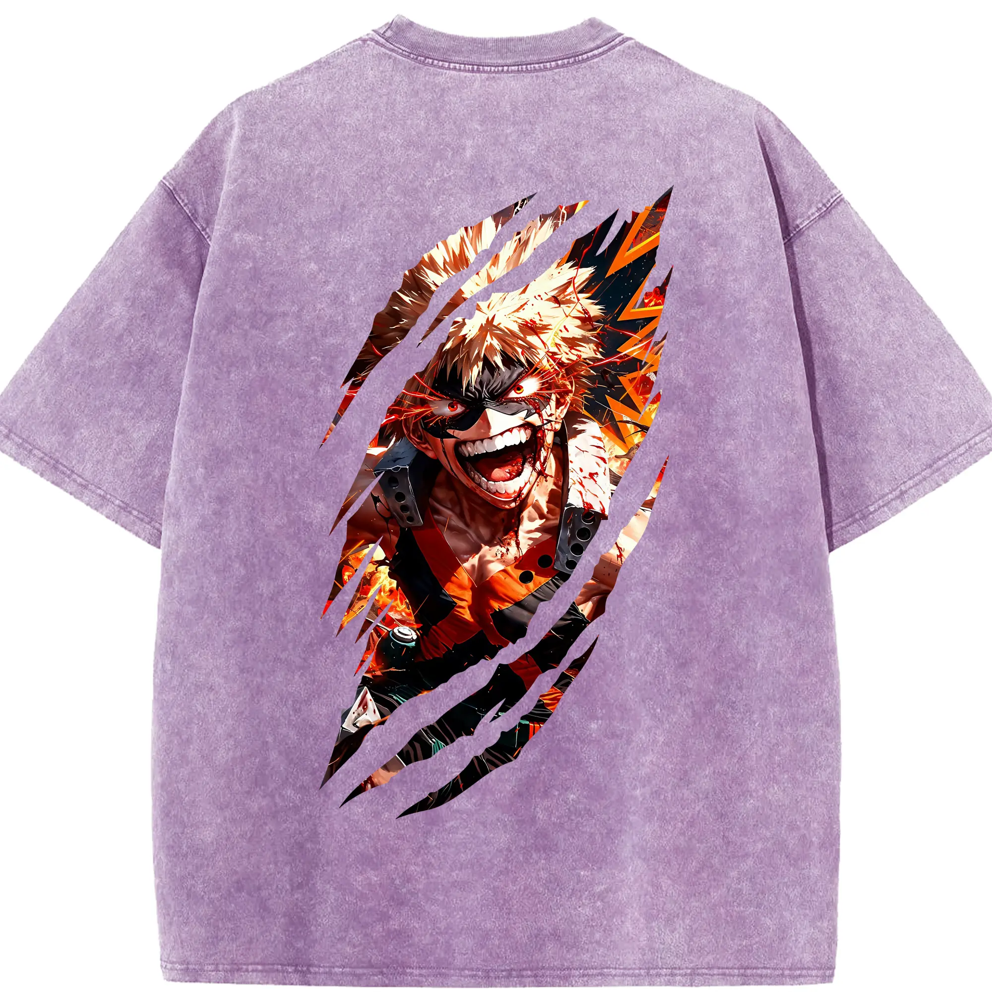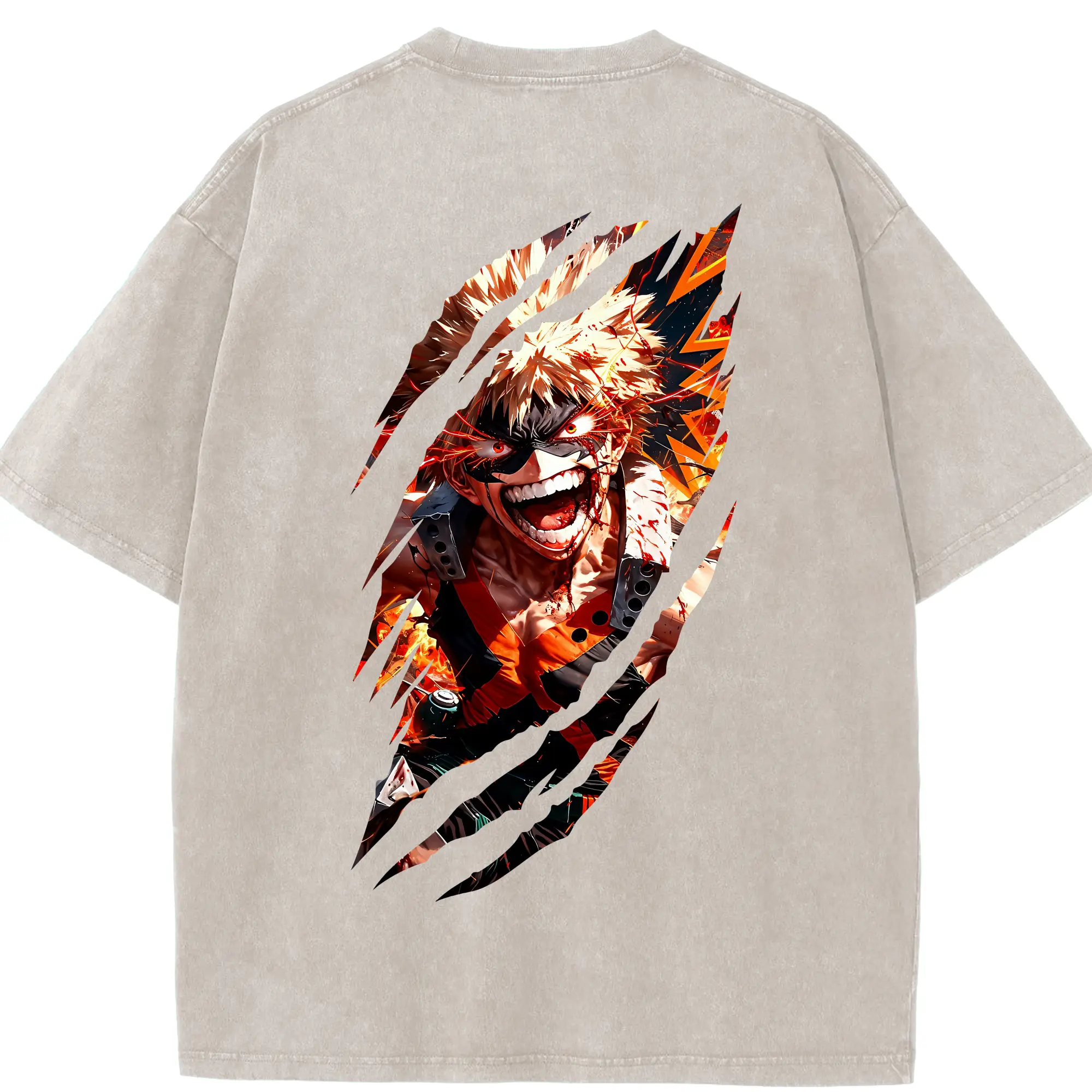 僕のヒーローアカデミア グッズ,爆豪勝己 - 綿100% ヴィンテージ風 半袖Tシャツ ・ フロントプリント ・ 柔らか肌触り ・ 通気性 快適 ・ スポーツ カジュアル 外出用