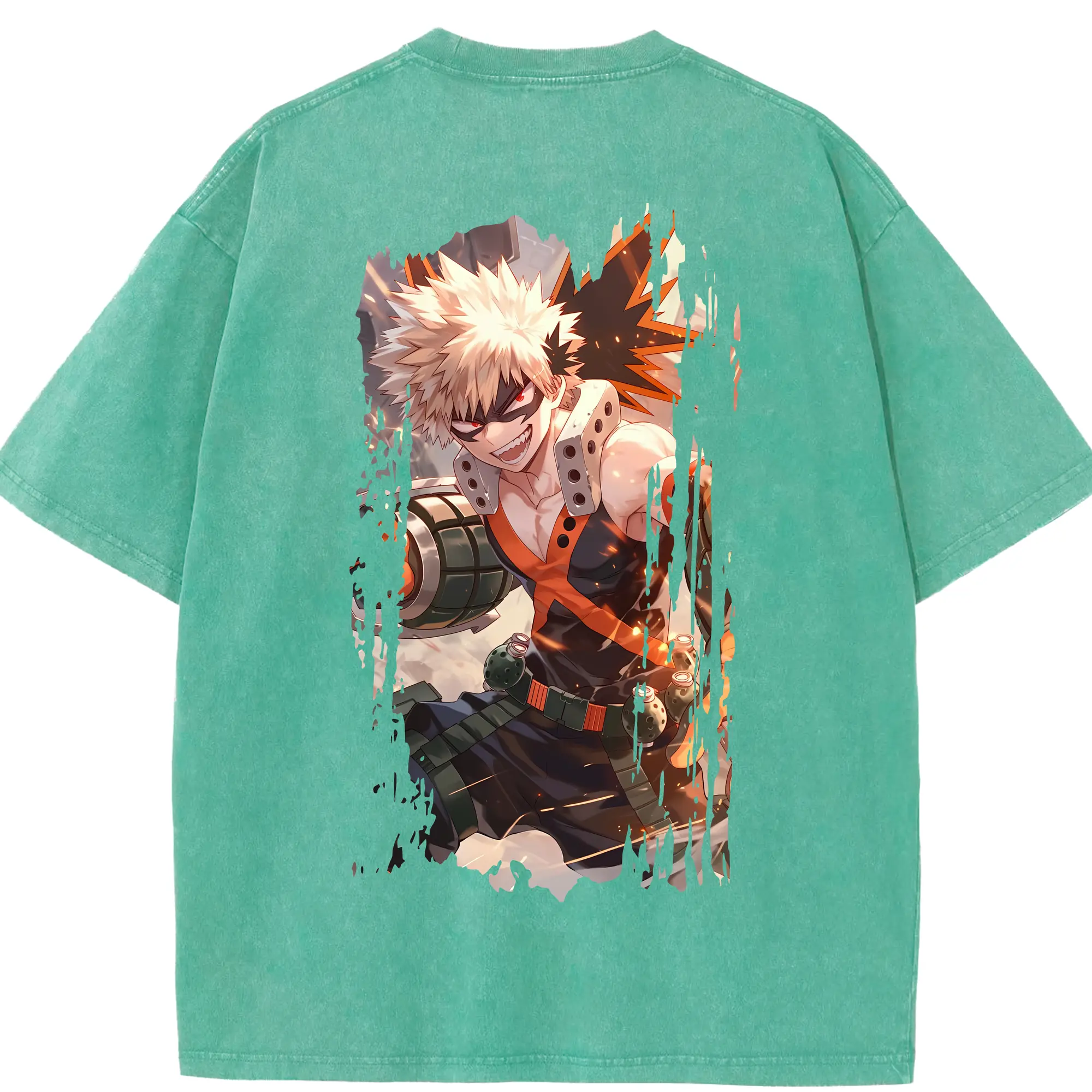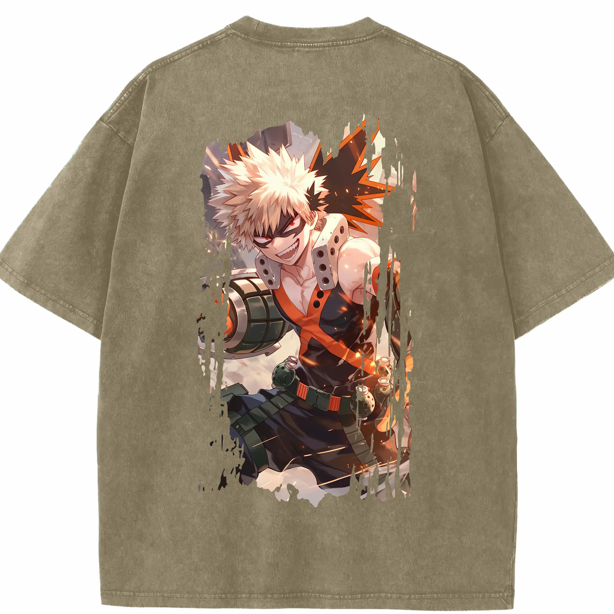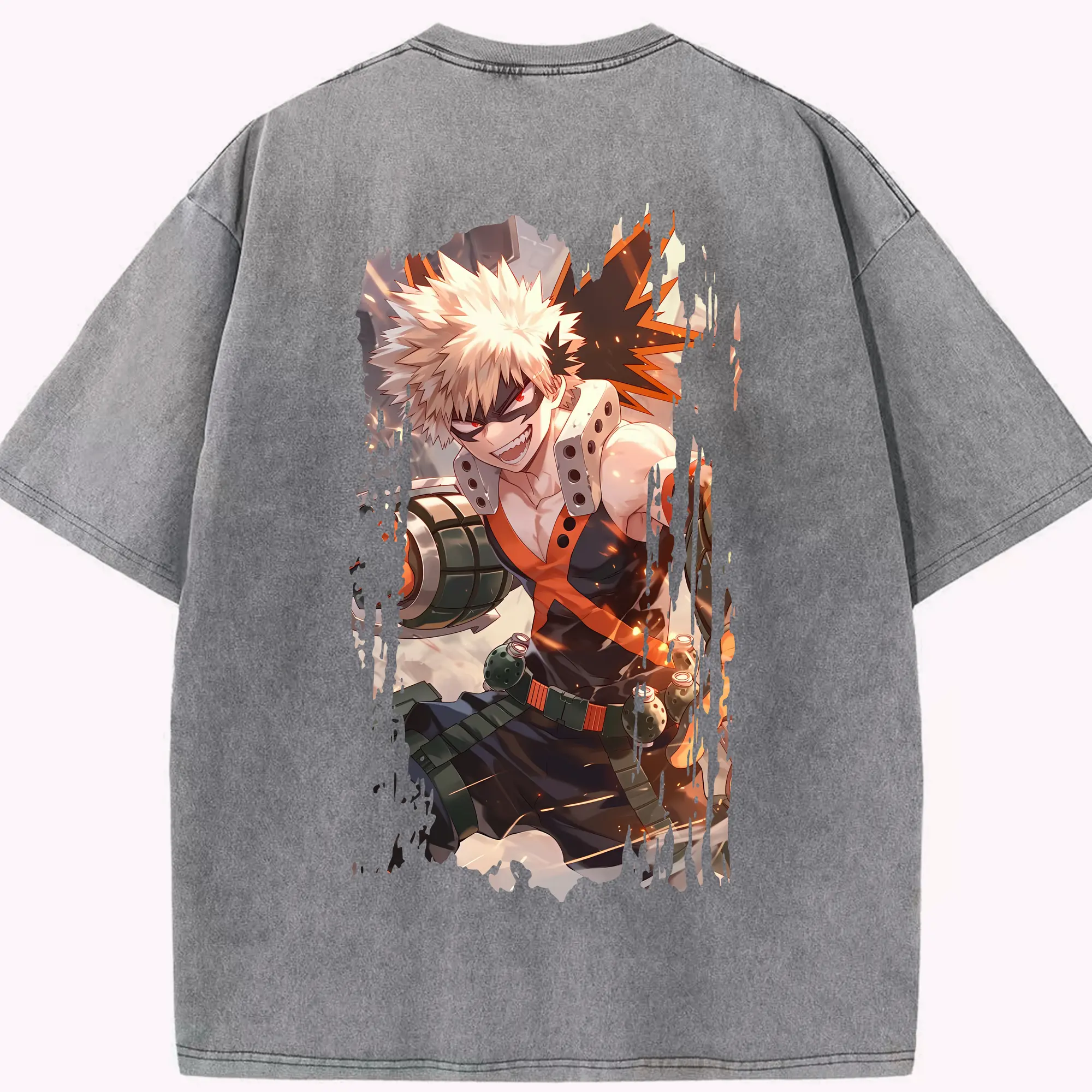 僕のヒーローアカデミア グッズ,爆豪勝己 - 綿100% ヴィンテージ風 半袖Tシャツ ・ フロントプリント ・ 柔らか肌触り ・ 通気性 快適 ・ スポーツ カジュアル 外出用