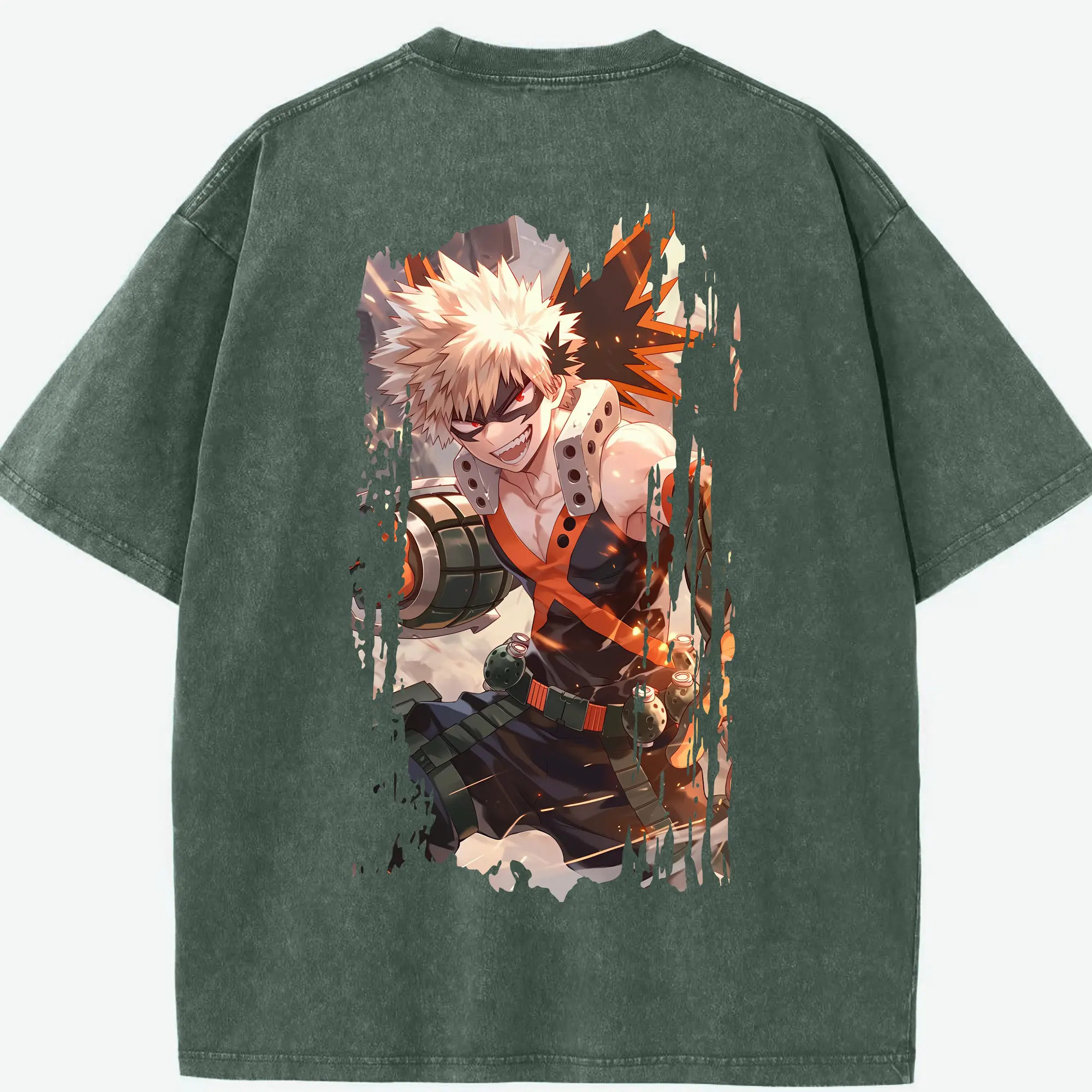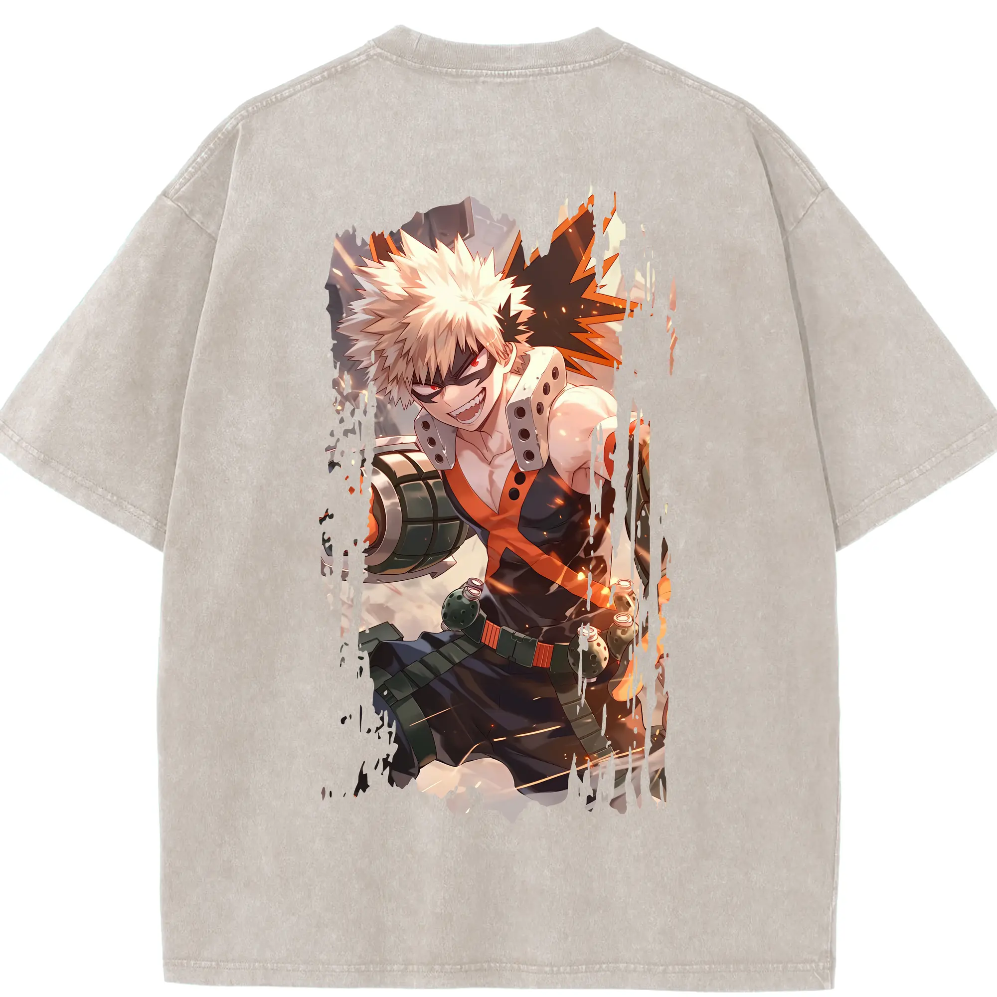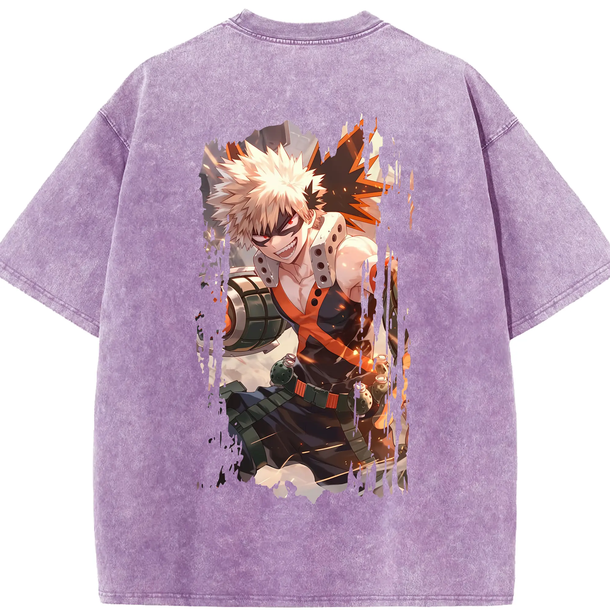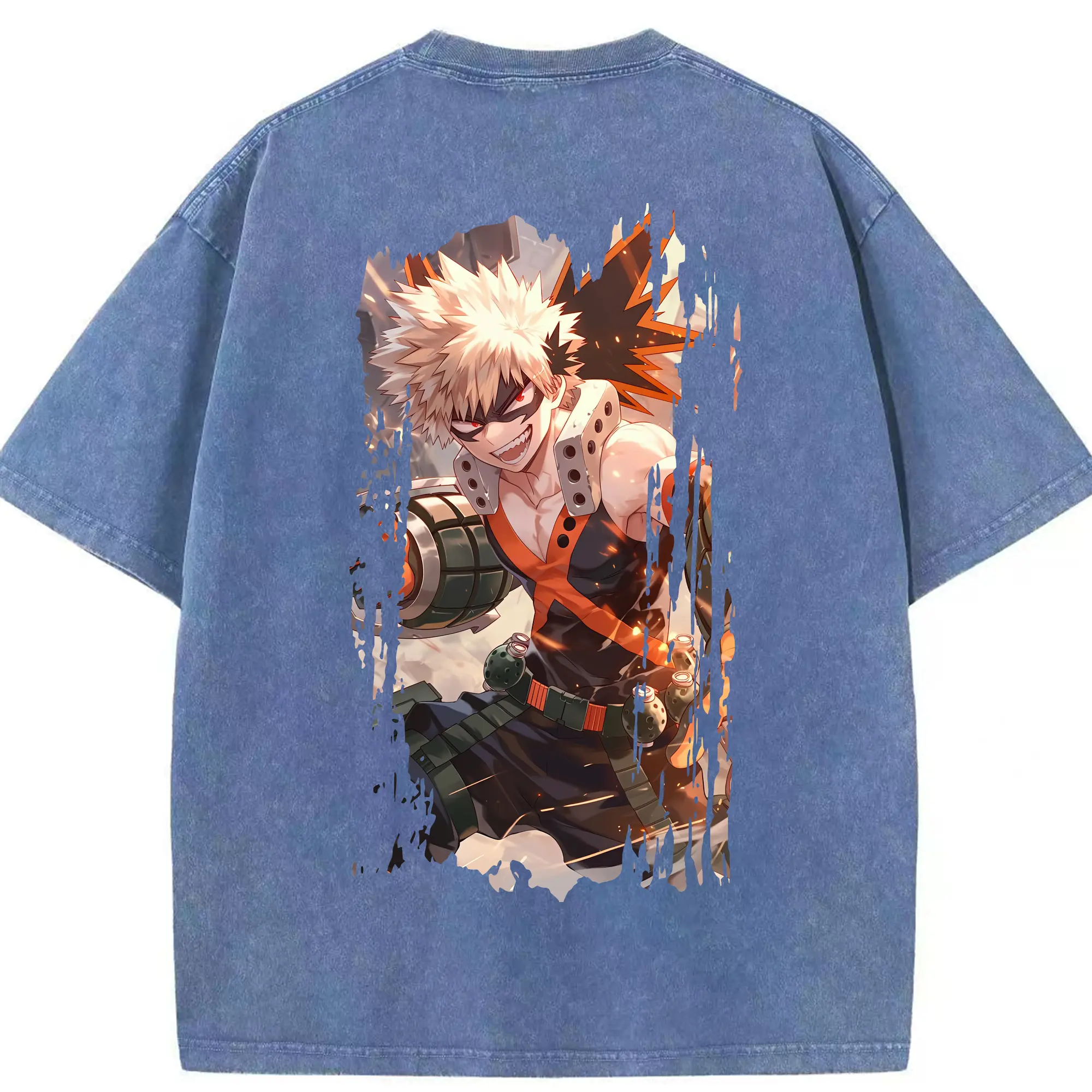 僕のヒーローアカデミア グッズ,爆豪勝己 - 綿100% ヴィンテージ風 半袖Tシャツ ・ フロントプリント ・ 柔らか肌触り ・ 通気性 快適 ・ スポーツ カジュアル 外出用