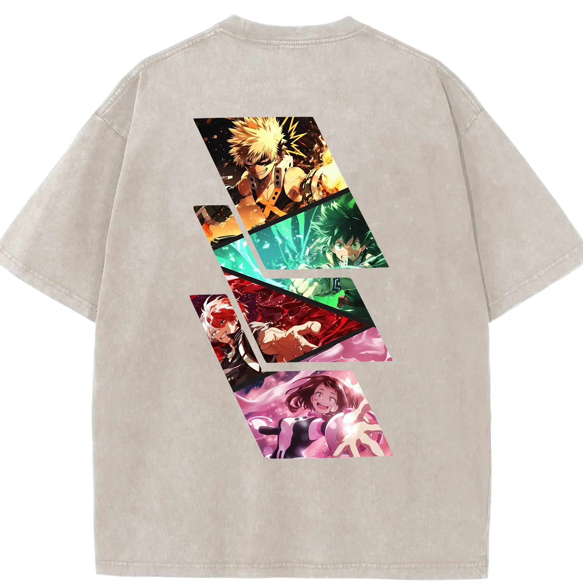 ワンパンマン グッズ ジェノス - 綿100% ヴィンテージ風 半袖Tシャツ ・ 背面プリント ・ 柔らか肌触り ・ 通気性 快適 ・ スポーツ カジュアル 外出用