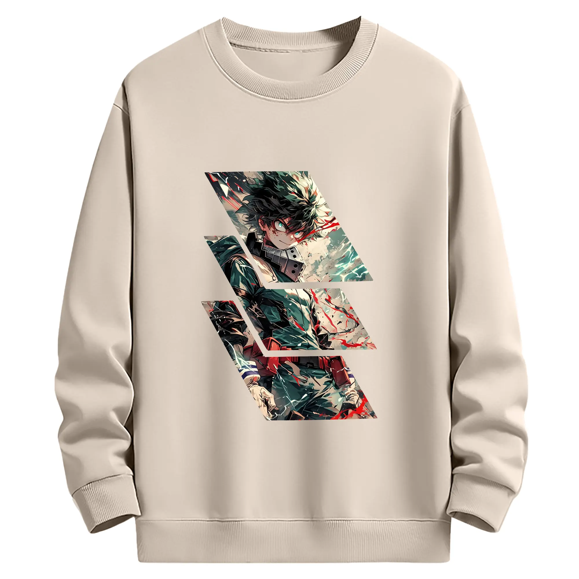 僕のヒーローアカデミア グッズ,緑谷出久 - 薄手 クルーネック スウェット 裏毛260g · ポリエステル 春秋向け カジュアル 男女兼用 · トレーナー デイリー スポーツ 散歩に最適