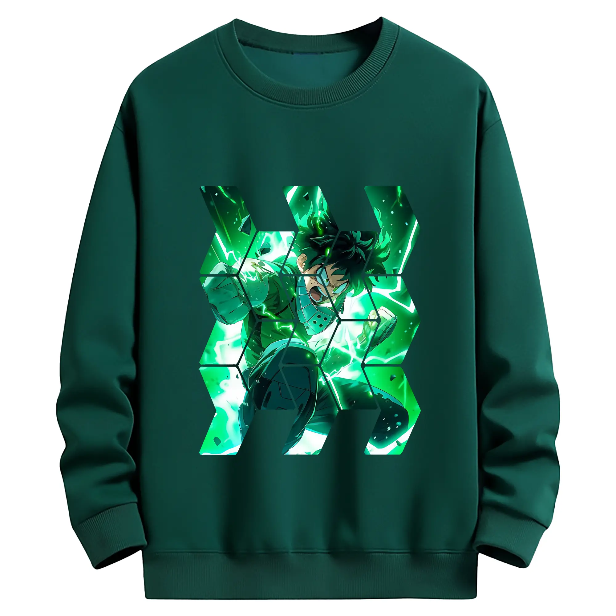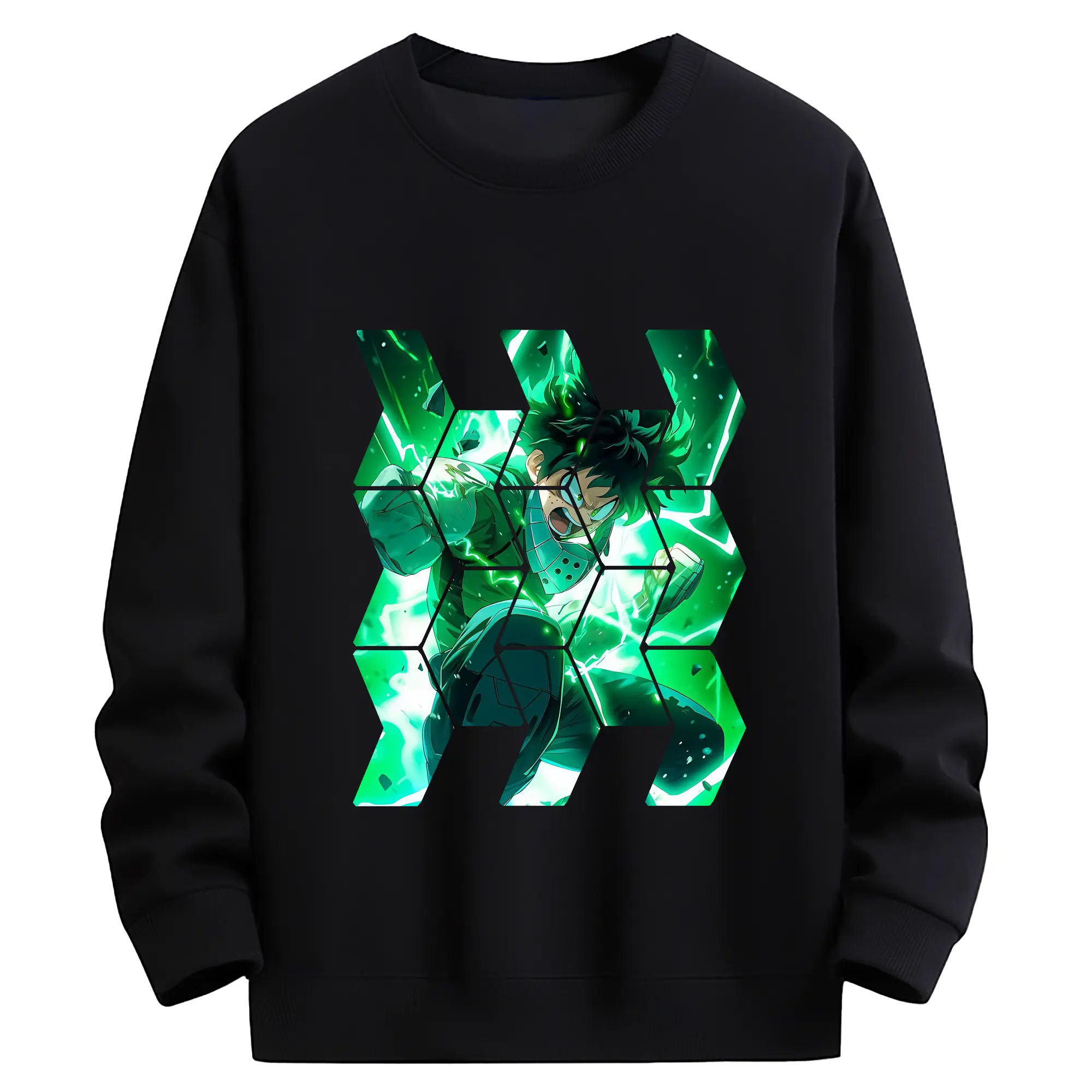 僕のヒーローアカデミア グッズ,緑谷出久 - 薄手 クルーネック スウェット 裏毛260g · ポリエステル 春秋向け カジュアル 男女兼用 · トレーナー デイリー スポーツ 散歩に最適