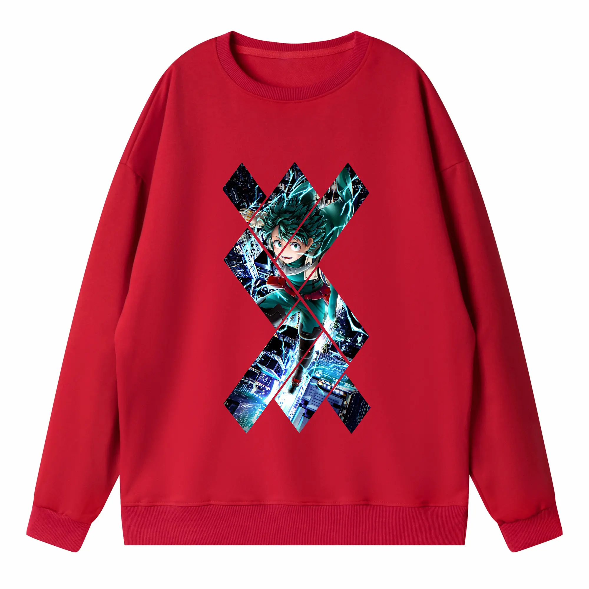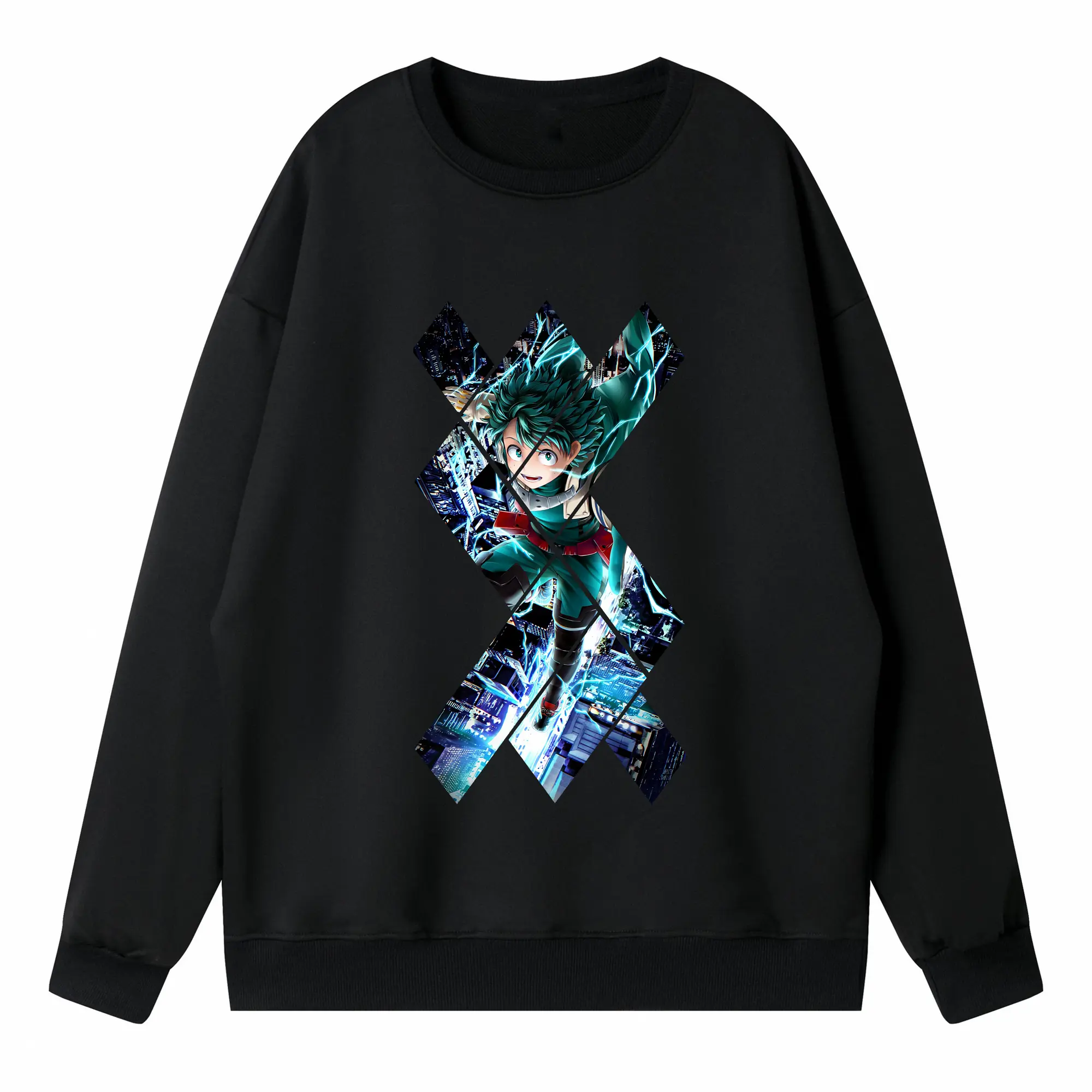 僕のヒーローアカデミア グッズ,緑谷出久 - 高品質 クルーネック スウェット ・ コットン59% ポリエステル41% ・ ユニセックス 長袖 トレーナー ・ カジュアル デイリー スポーツ 散歩用