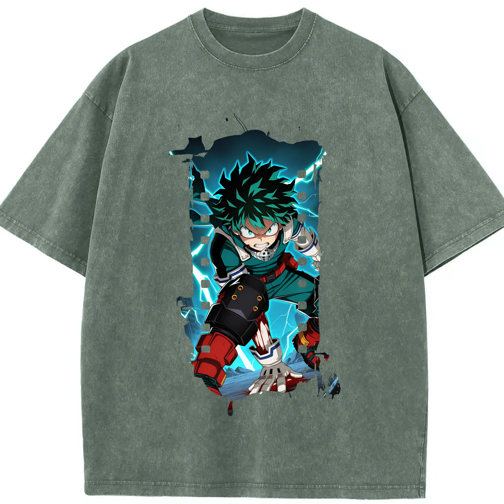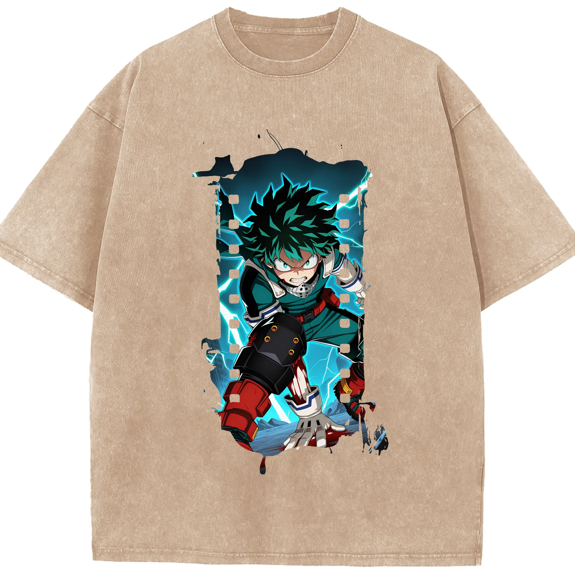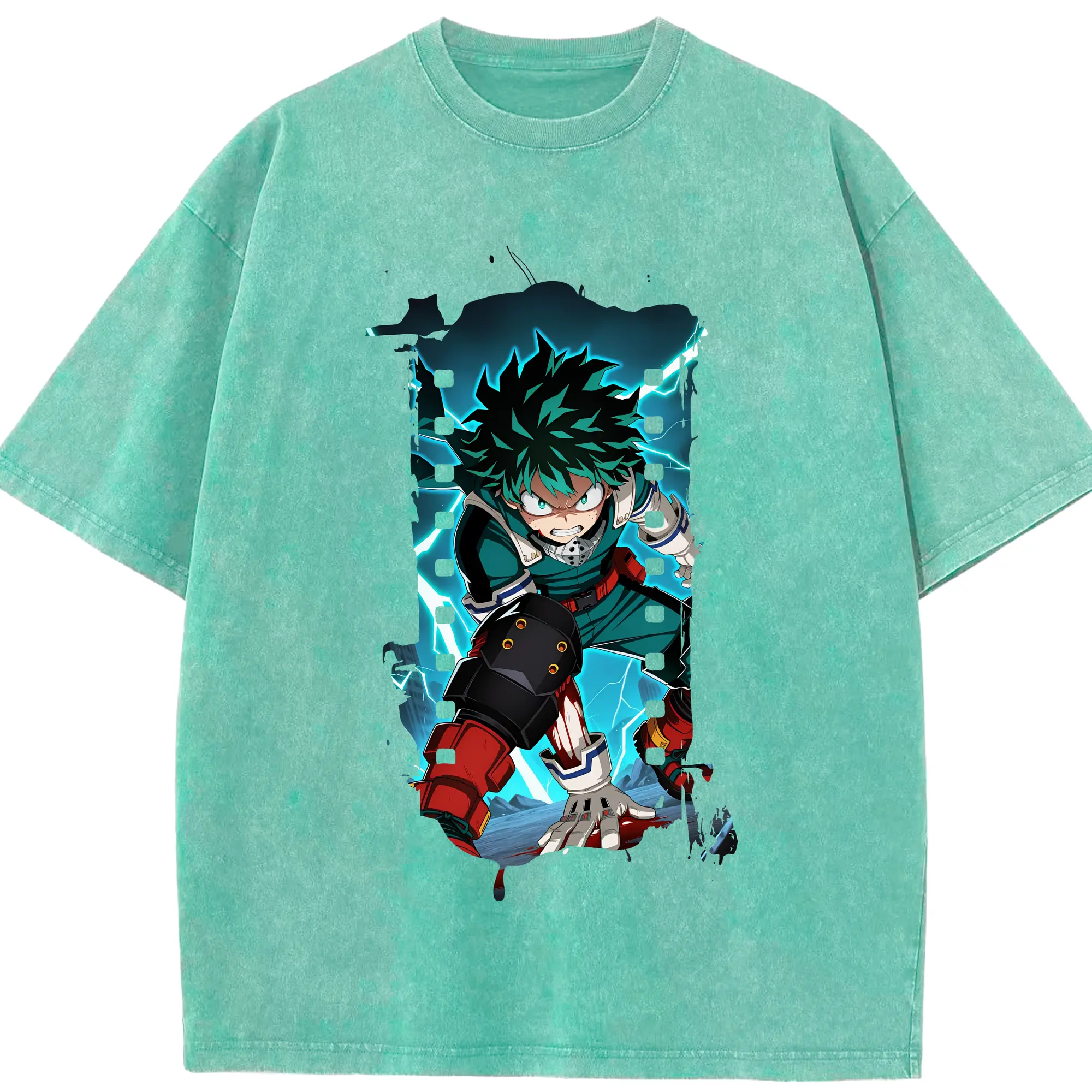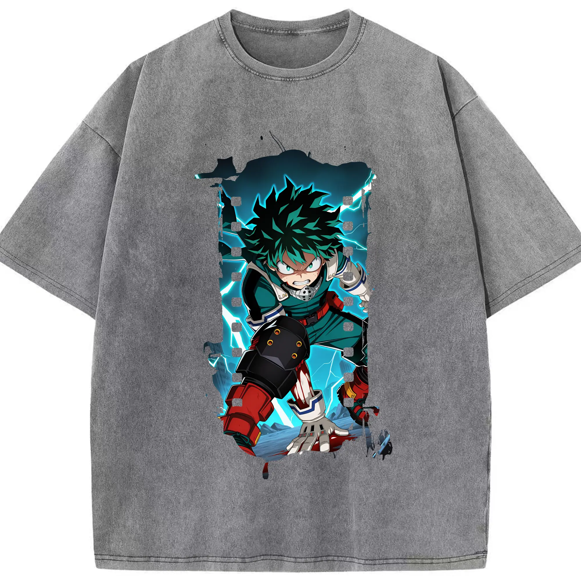 僕のヒーローアカデミア グッズ,緑谷出久 - 綿100% ヴィンテージ風 半袖Tシャツ ・ 背面プリント ・ 柔らか肌触り ・ 通気性 快適 ・ スポーツ カジュアル 外出用