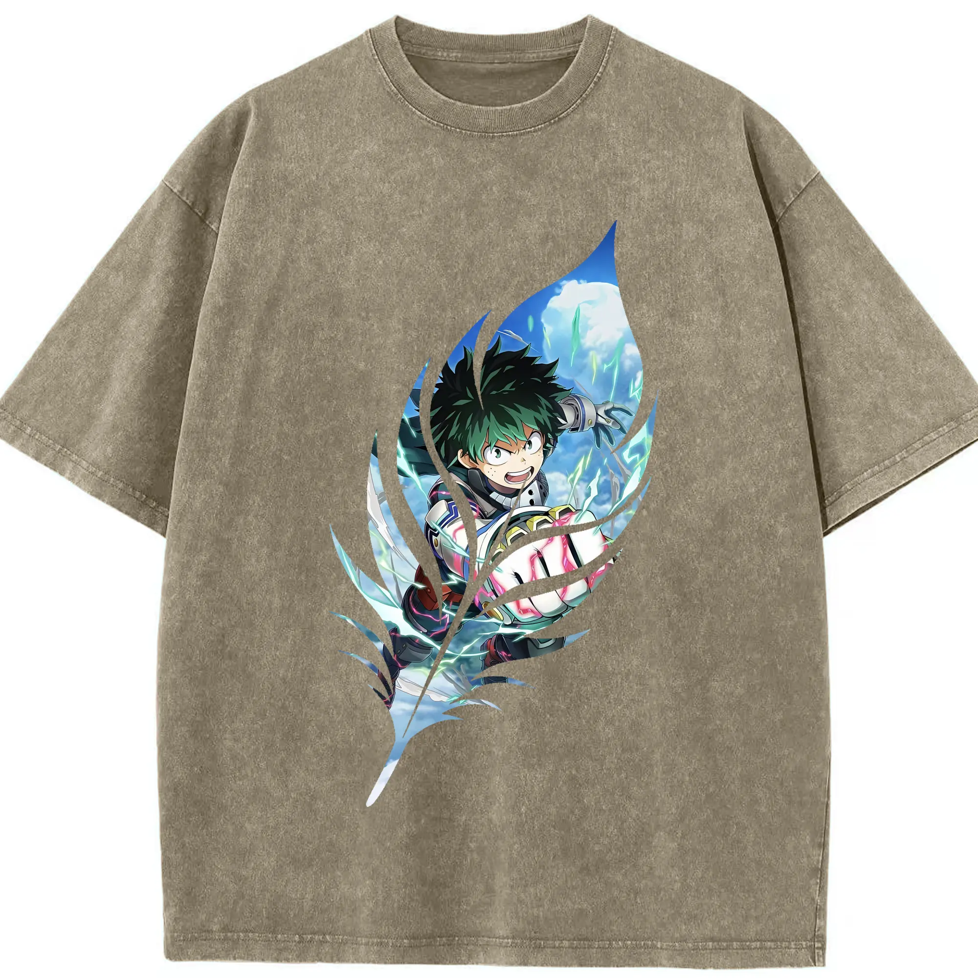 僕のヒーローアカデミア グッズ,緑谷出久 - 綿100% ヴィンテージ風 半袖Tシャツ ・ 背面プリント ・ 柔らか肌触り ・ 通気性 快適 ・ スポーツ カジュアル 外出用