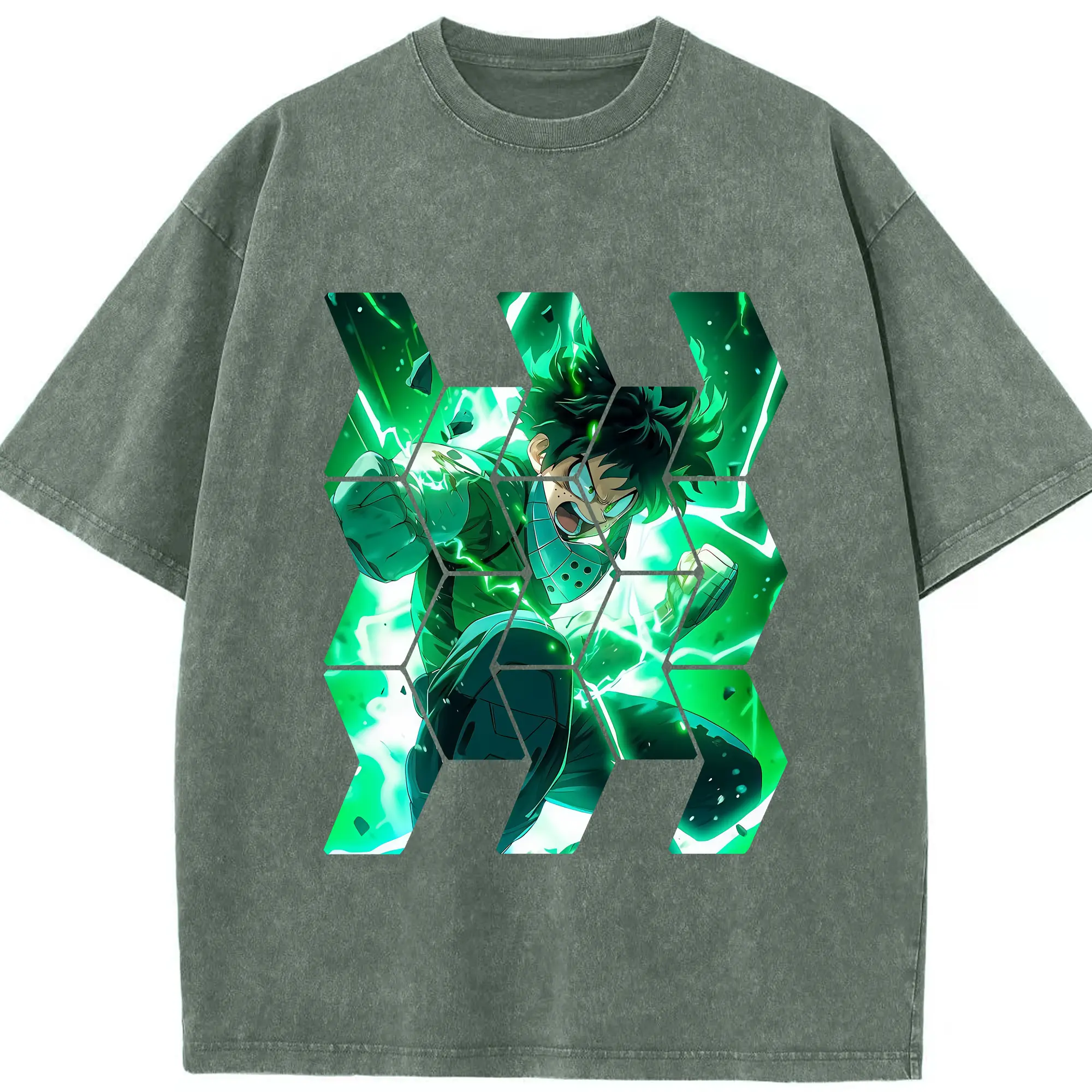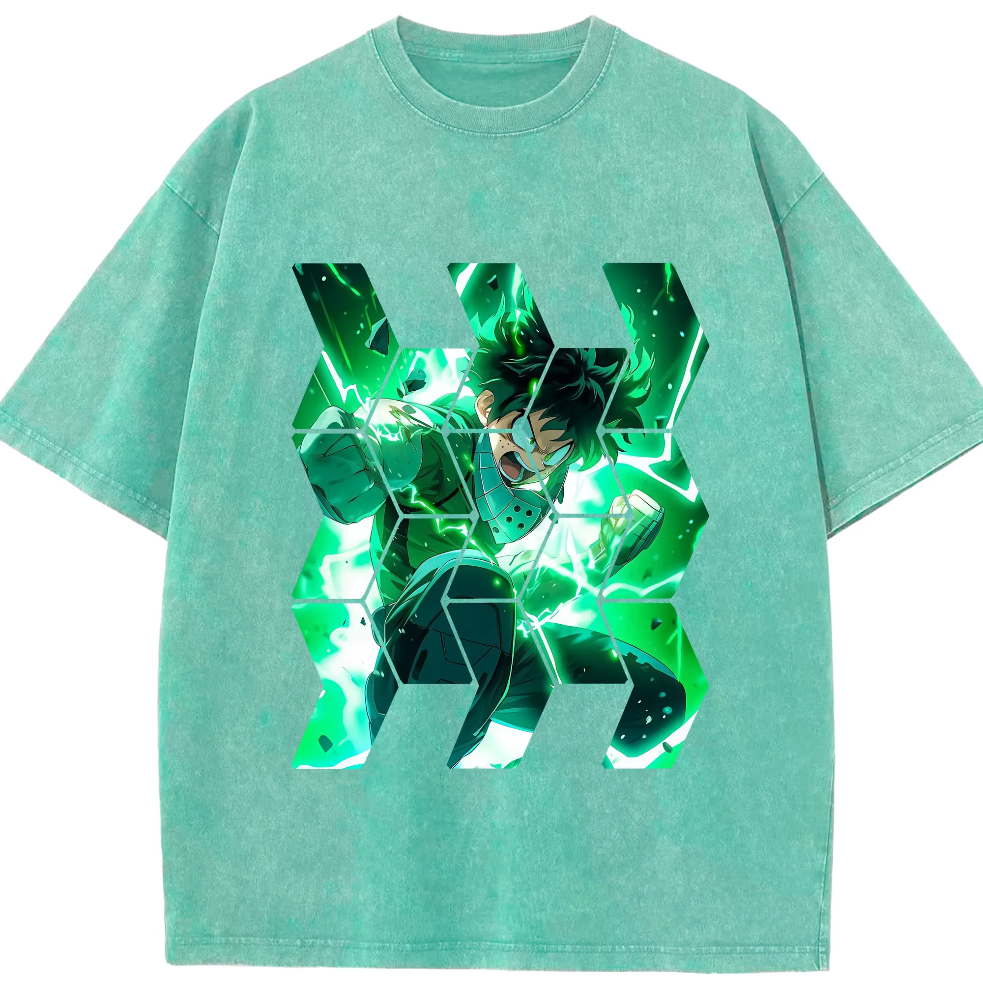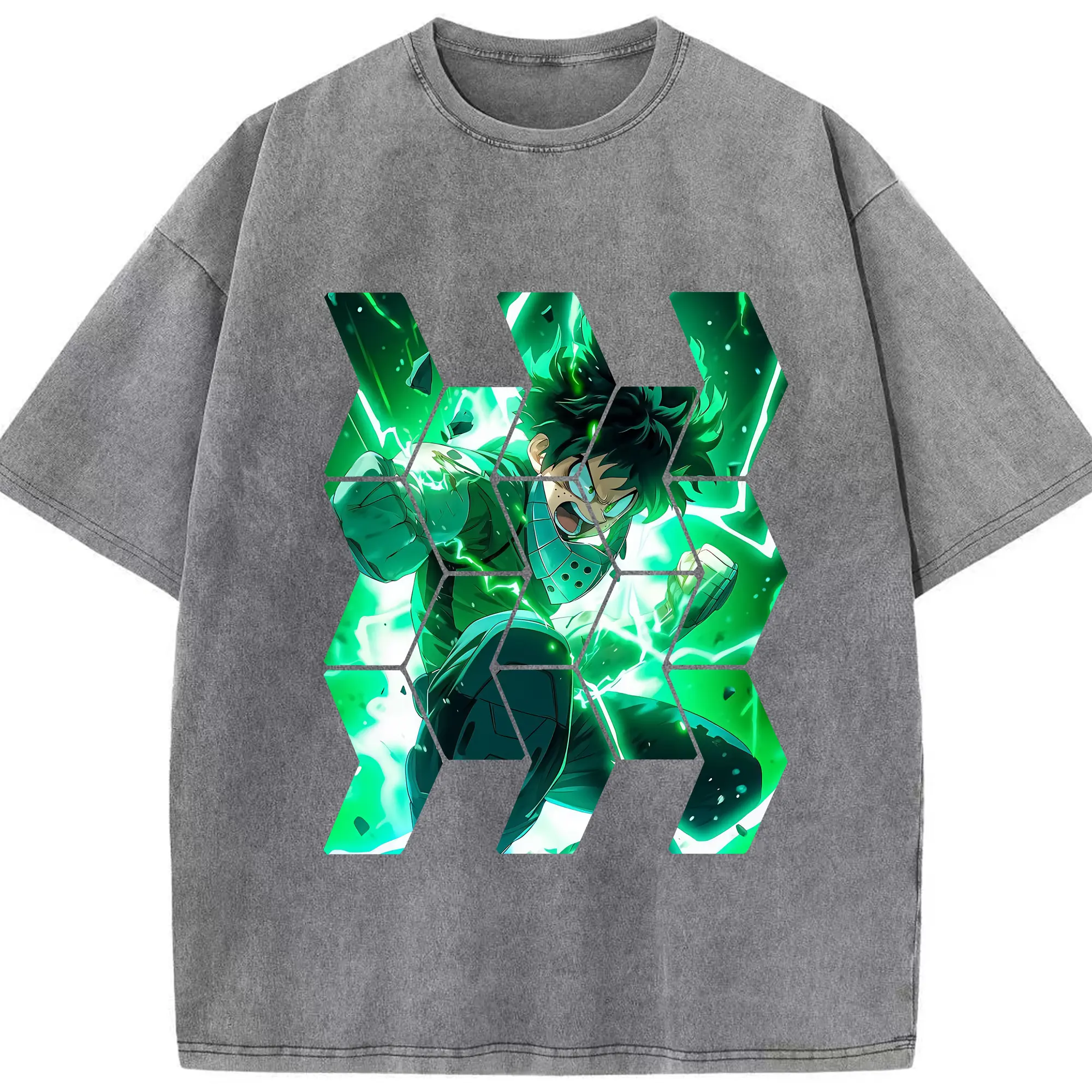 僕のヒーローアカデミア グッズ,緑谷出久 - 綿100% ヴィンテージ風 半袖Tシャツ ・ 背面プリント ・ 柔らか肌触り ・ 通気性 快適 ・ スポーツ カジュアル 外出用