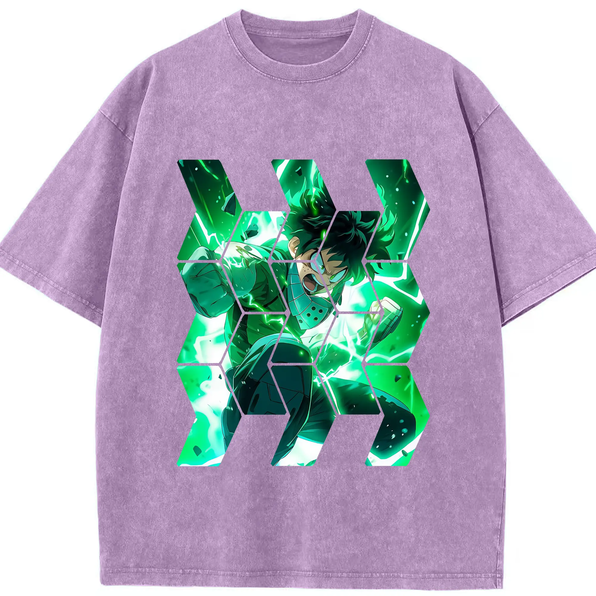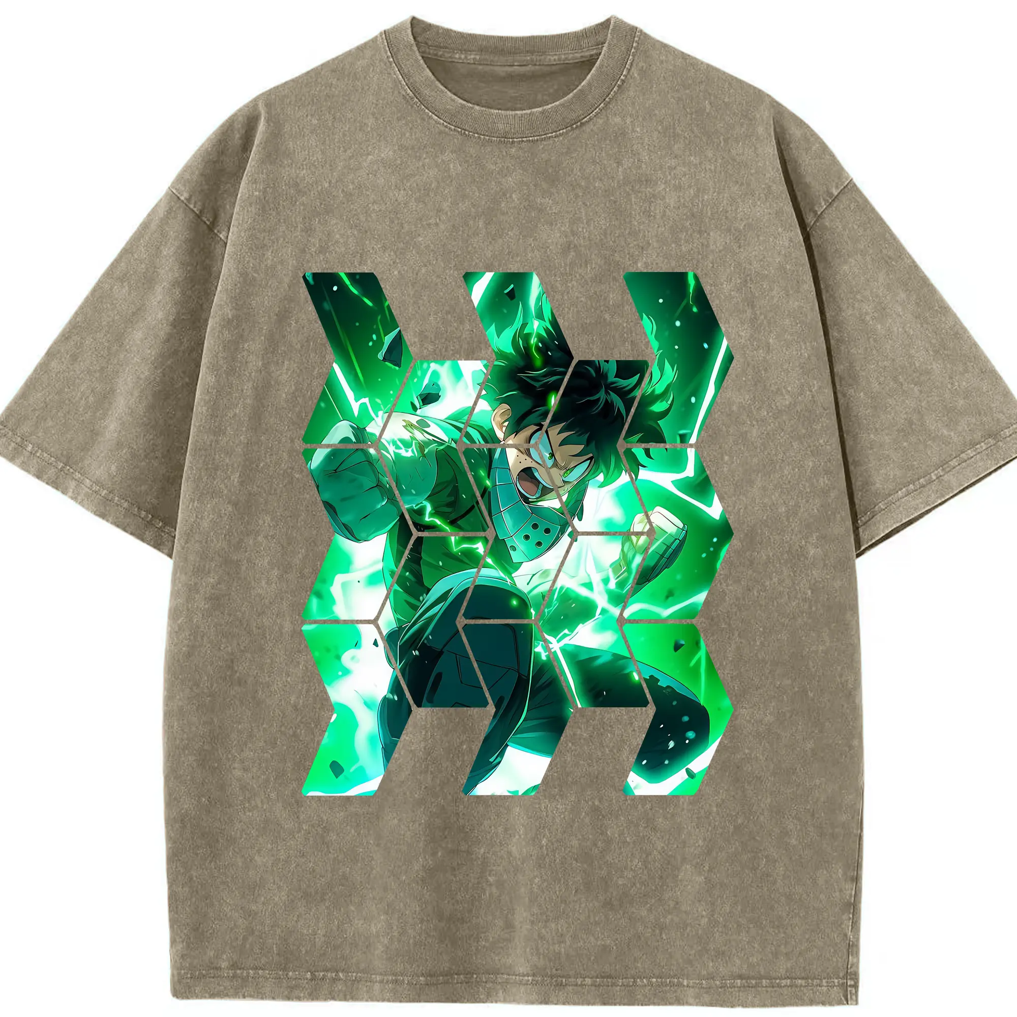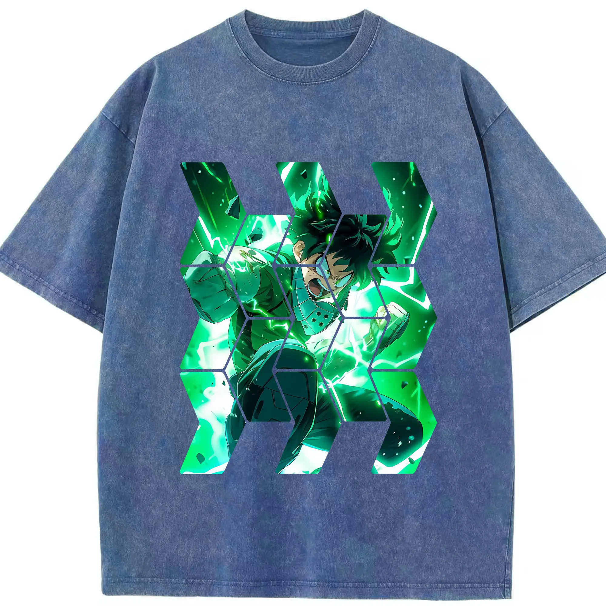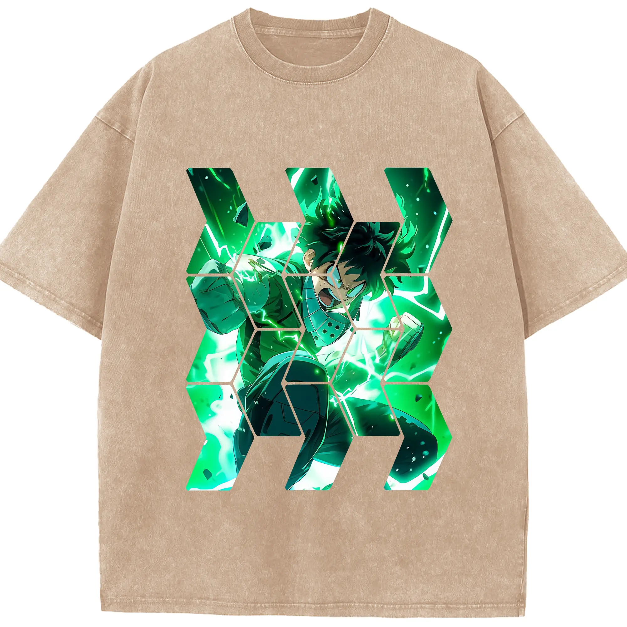 僕のヒーローアカデミア グッズ,緑谷出久 - 綿100% ヴィンテージ風 半袖Tシャツ ・ 背面プリント ・ 柔らか肌触り ・ 通気性 快適 ・ スポーツ カジュアル 外出用