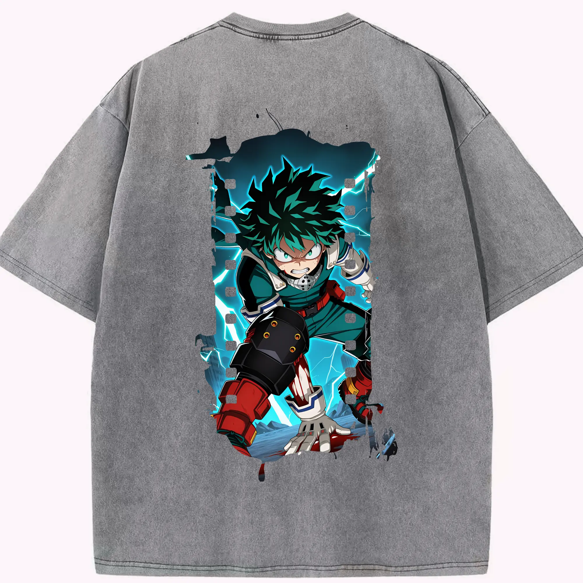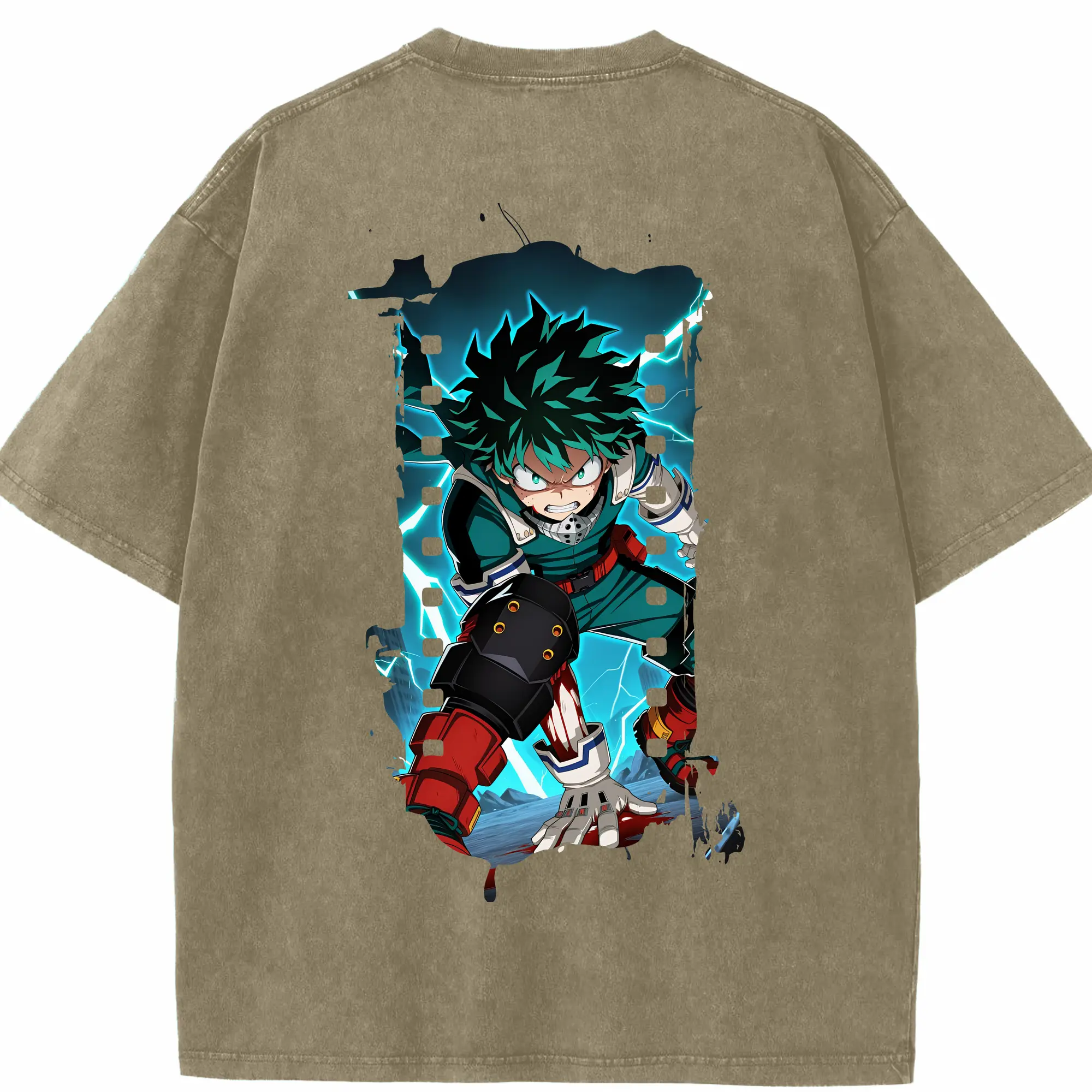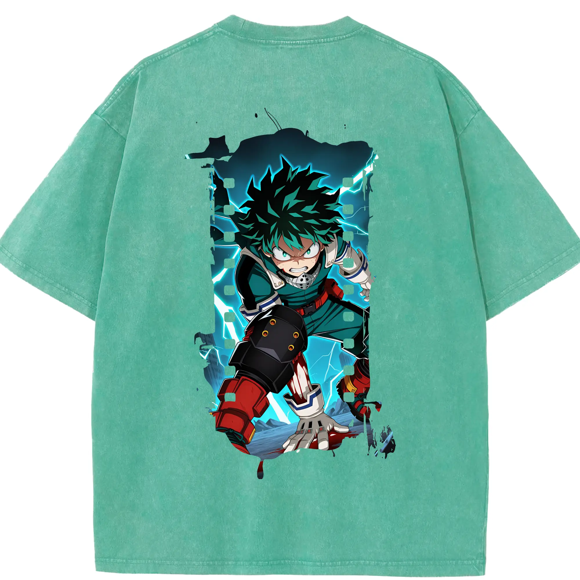 僕のヒーローアカデミア グッズ,緑谷出久 - 綿100% ヴィンテージ風 半袖Tシャツ ・ フロントプリント ・ 柔らか肌触り ・ 通気性 快適 ・ スポーツ カジュアル 外出用