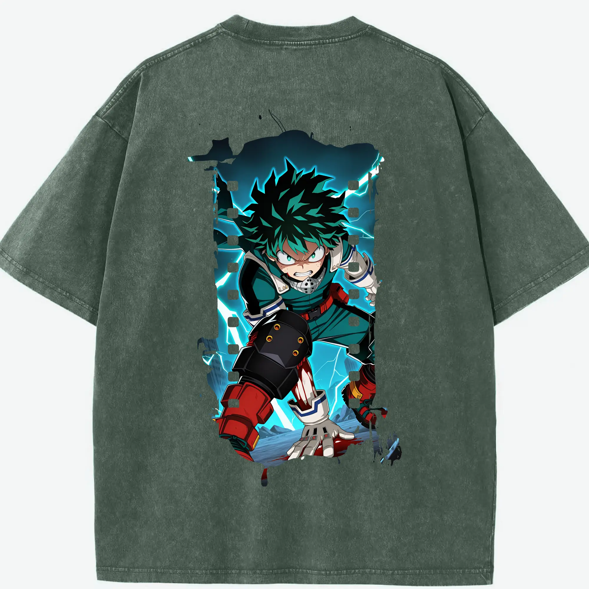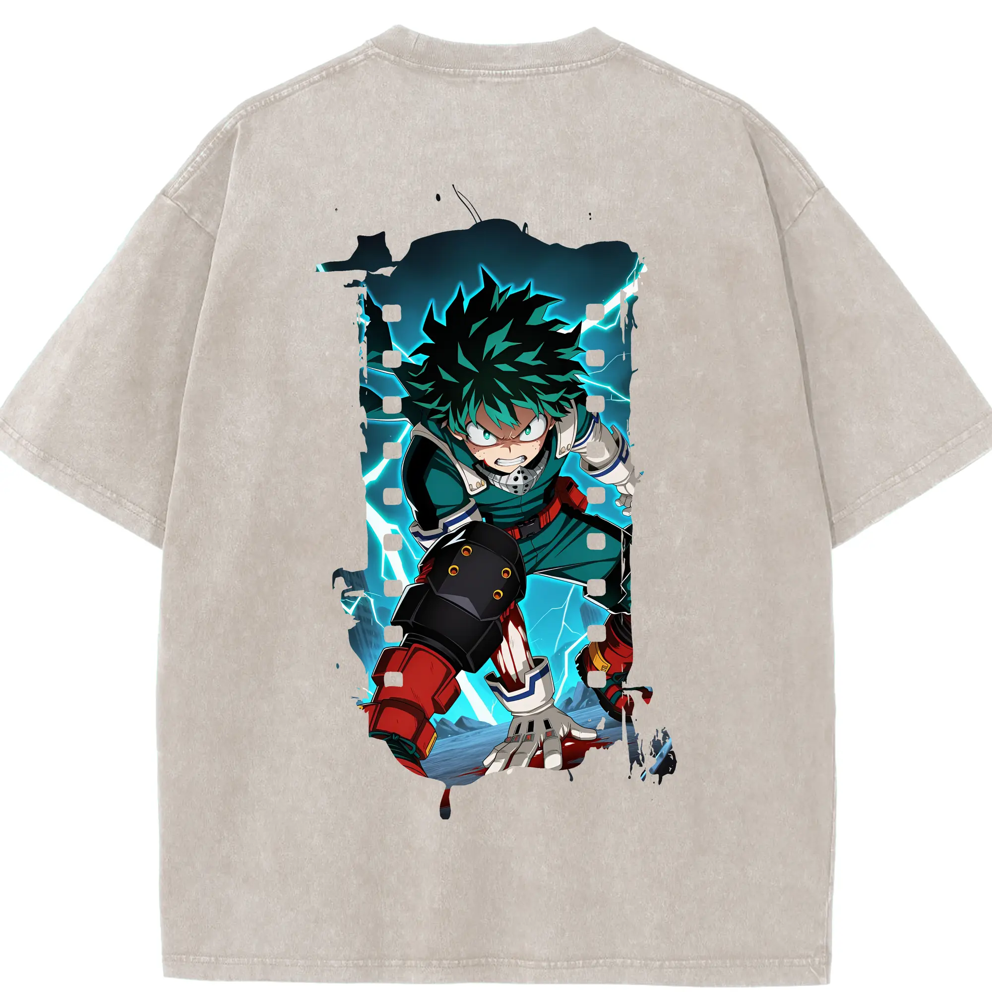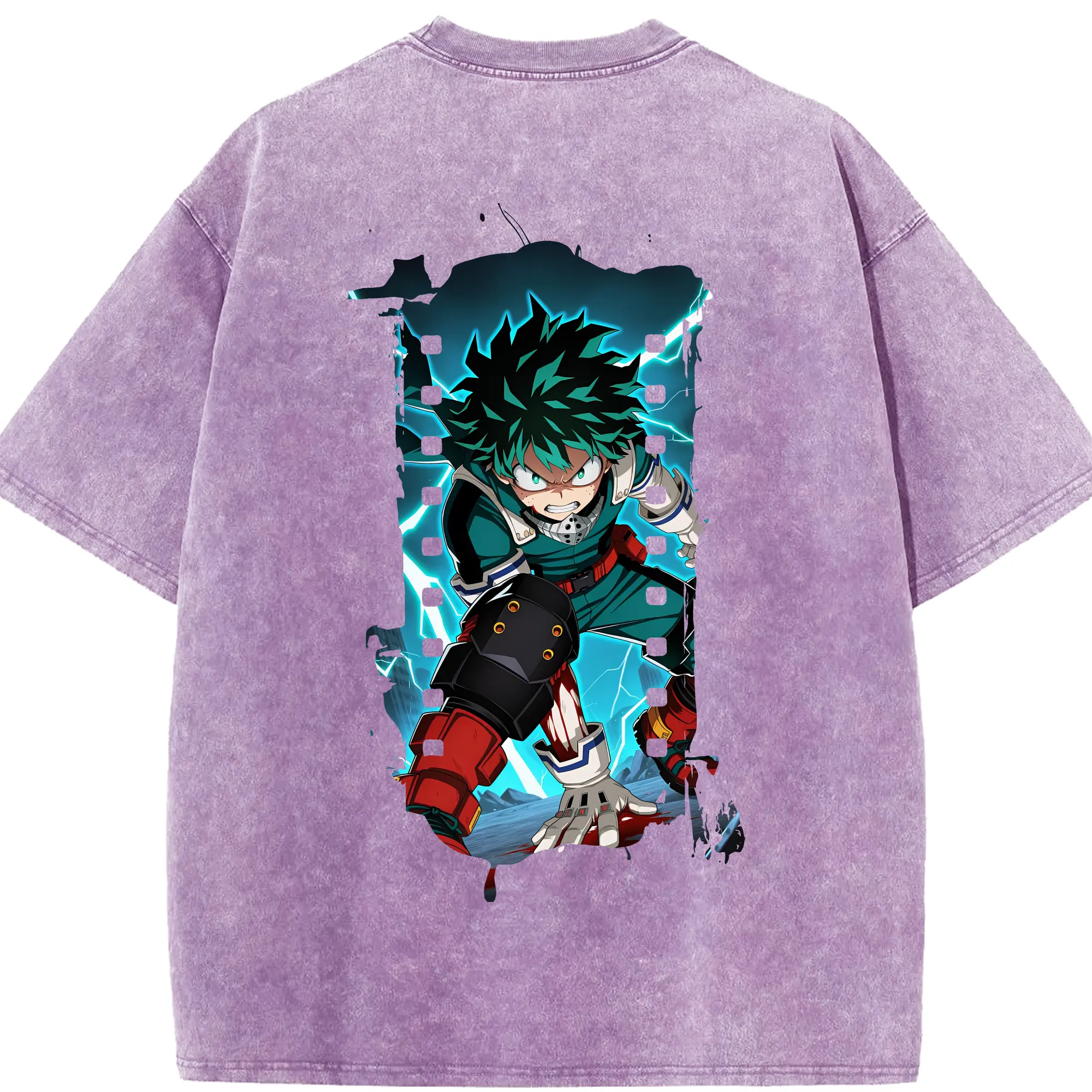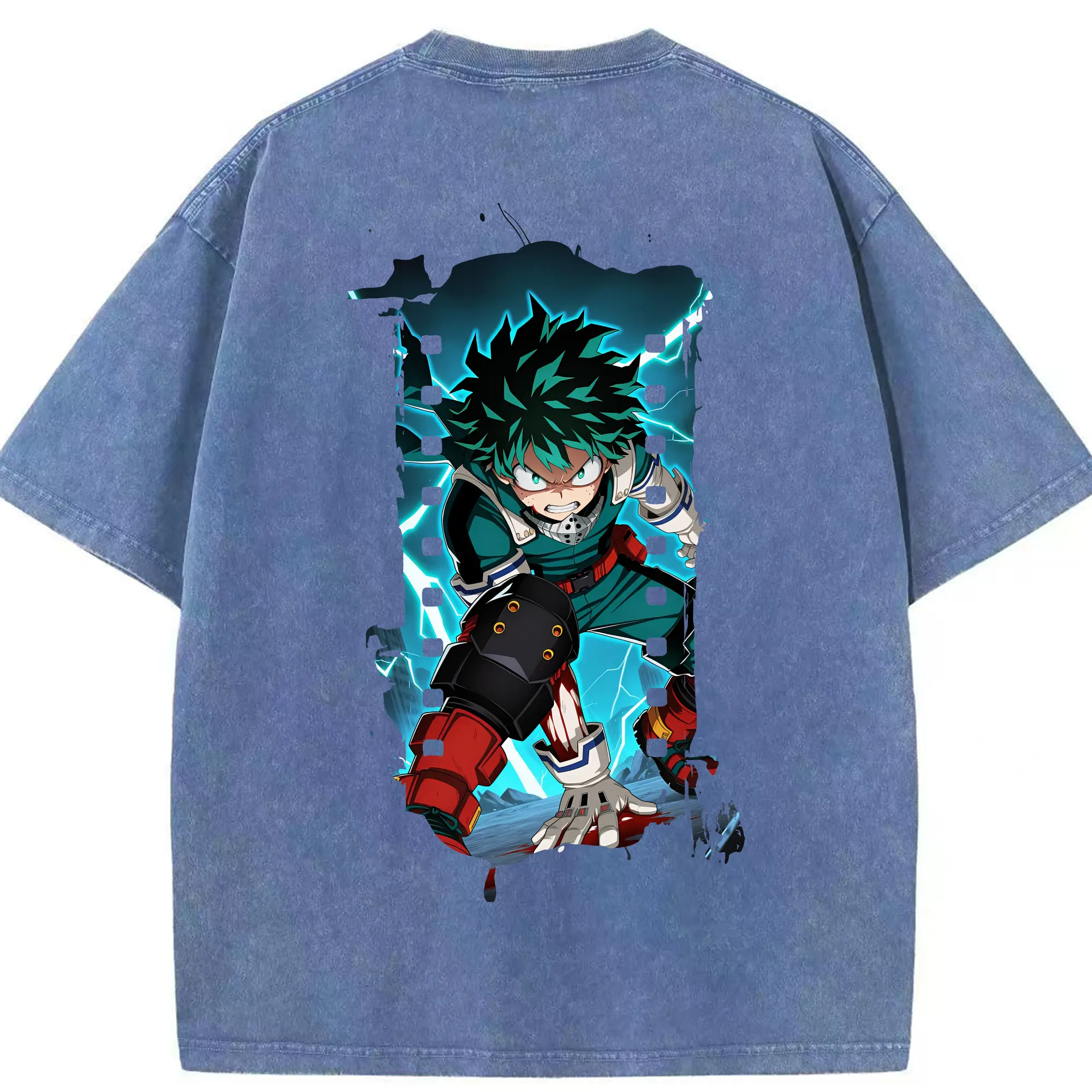僕のヒーローアカデミア グッズ,緑谷出久 - 綿100% ヴィンテージ風 半袖Tシャツ ・ フロントプリント ・ 柔らか肌触り ・ 通気性 快適 ・ スポーツ カジュアル 外出用