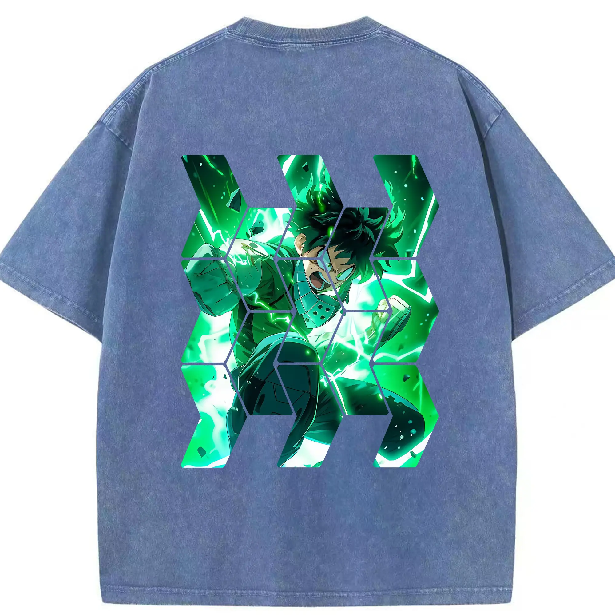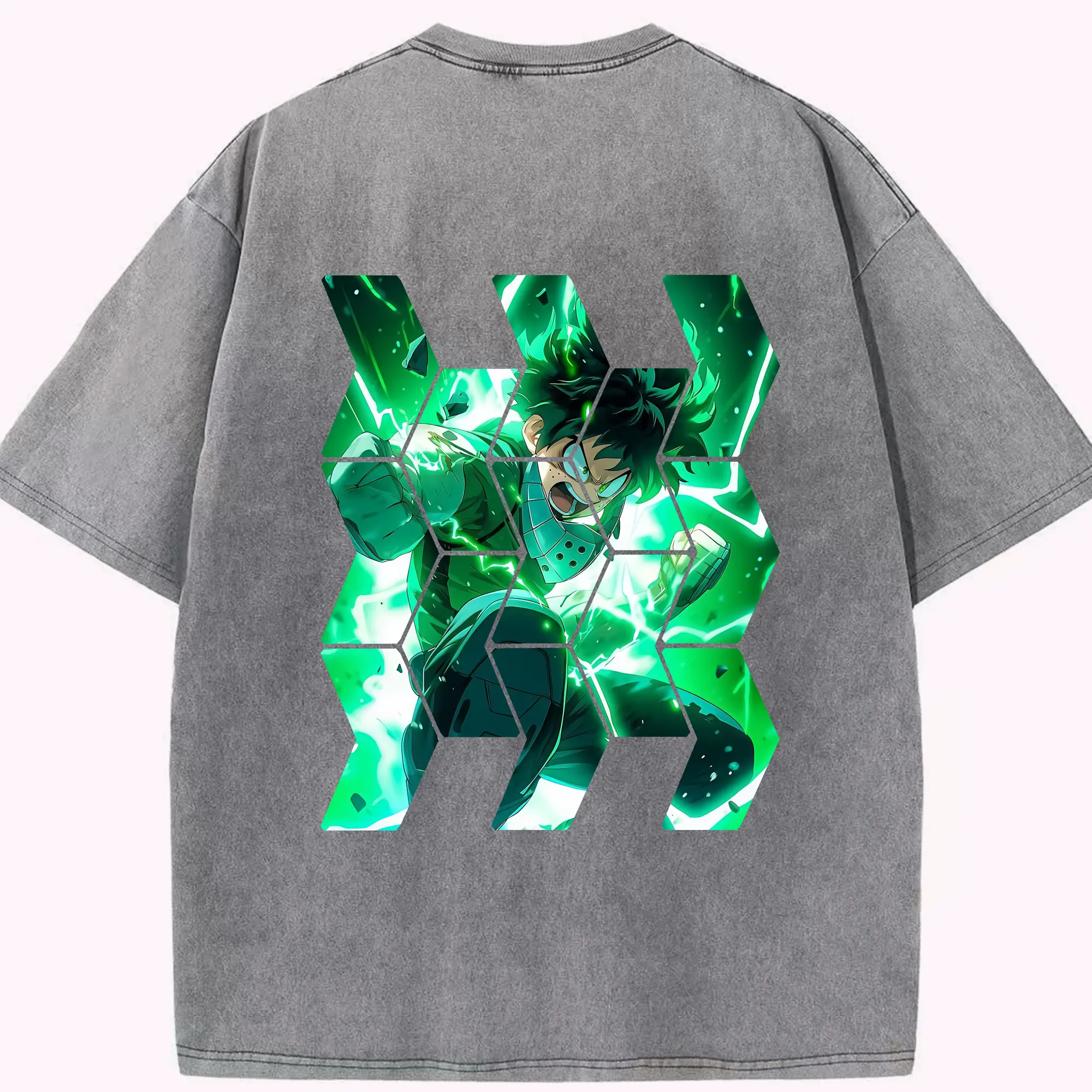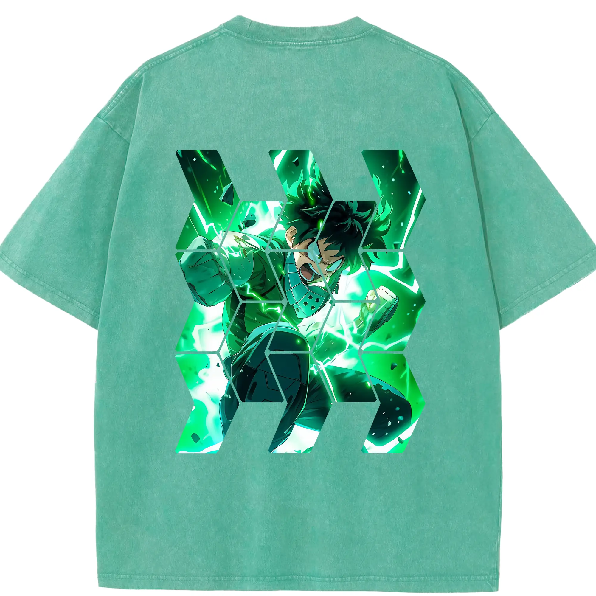 僕のヒーローアカデミア グッズ,緑谷出久 - 綿100% ヴィンテージ風 半袖Tシャツ ・ フロントプリント ・ 柔らか肌触り ・ 通気性 快適 ・ スポーツ カジュアル 外出用