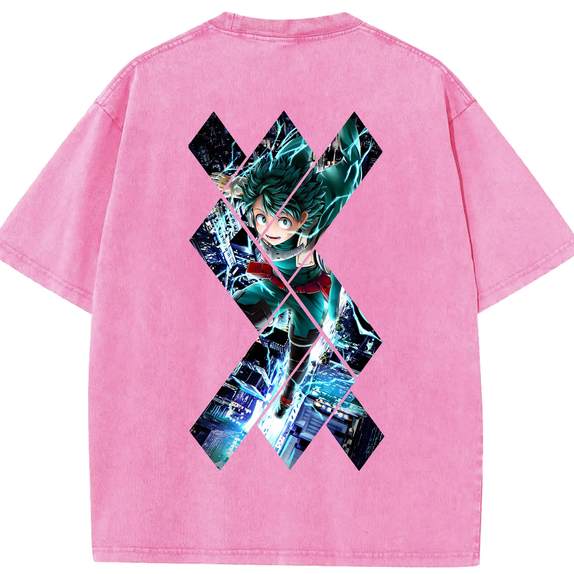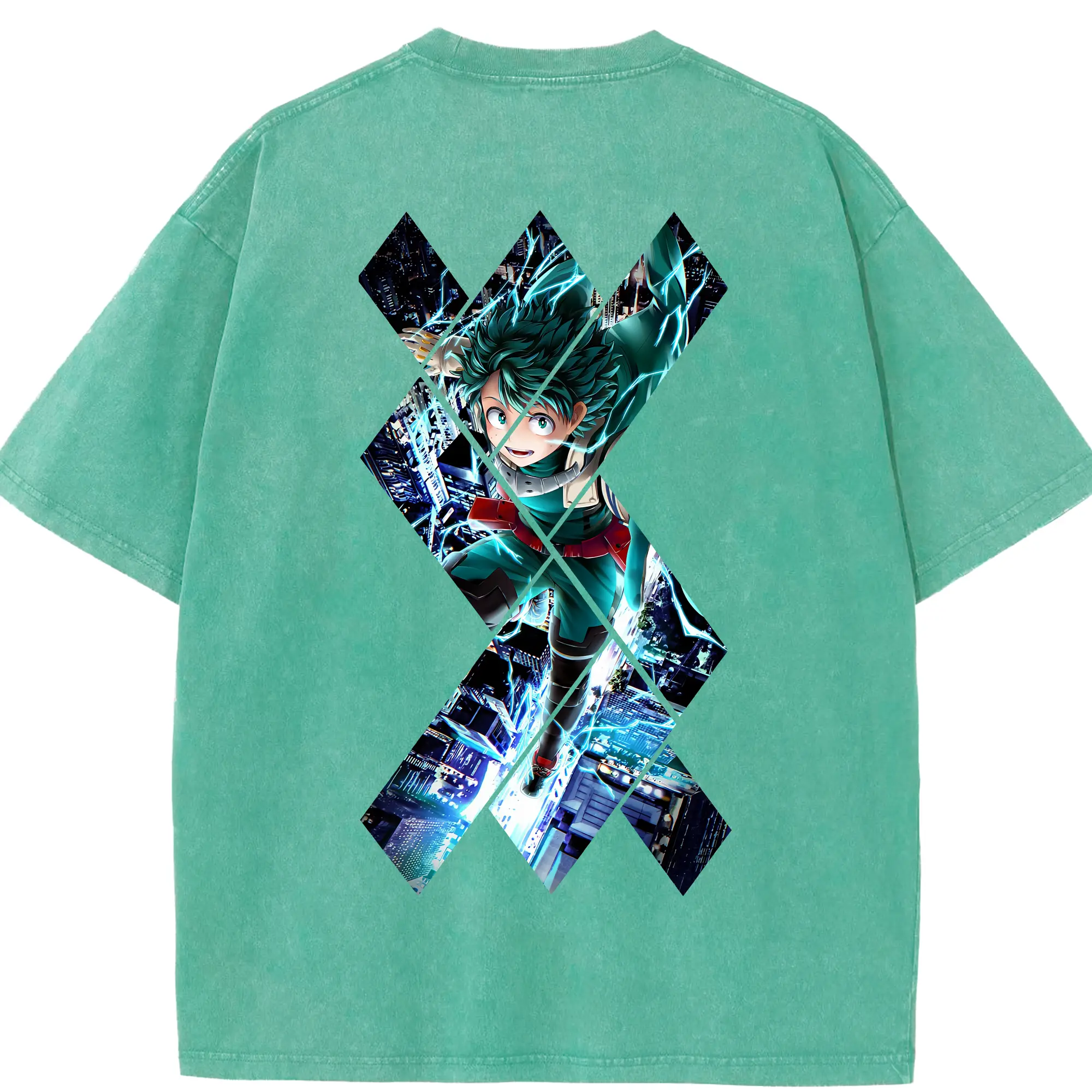 僕のヒーローアカデミア グッズ,緑谷出久 - 綿100% ヴィンテージ風 半袖Tシャツ ・ フロントプリント ・ 柔らか肌触り ・ 通気性 快適 ・ スポーツ カジュアル 外出用