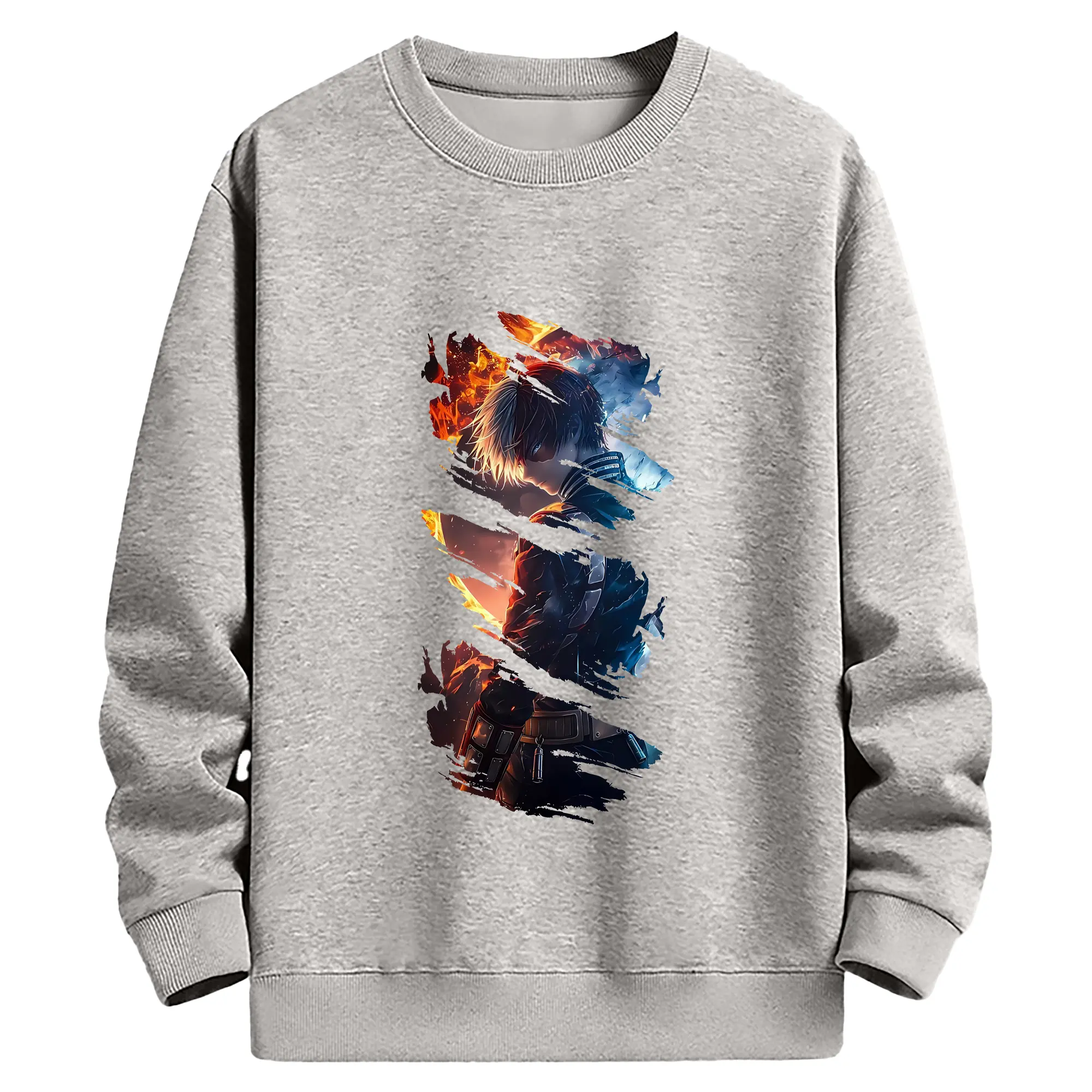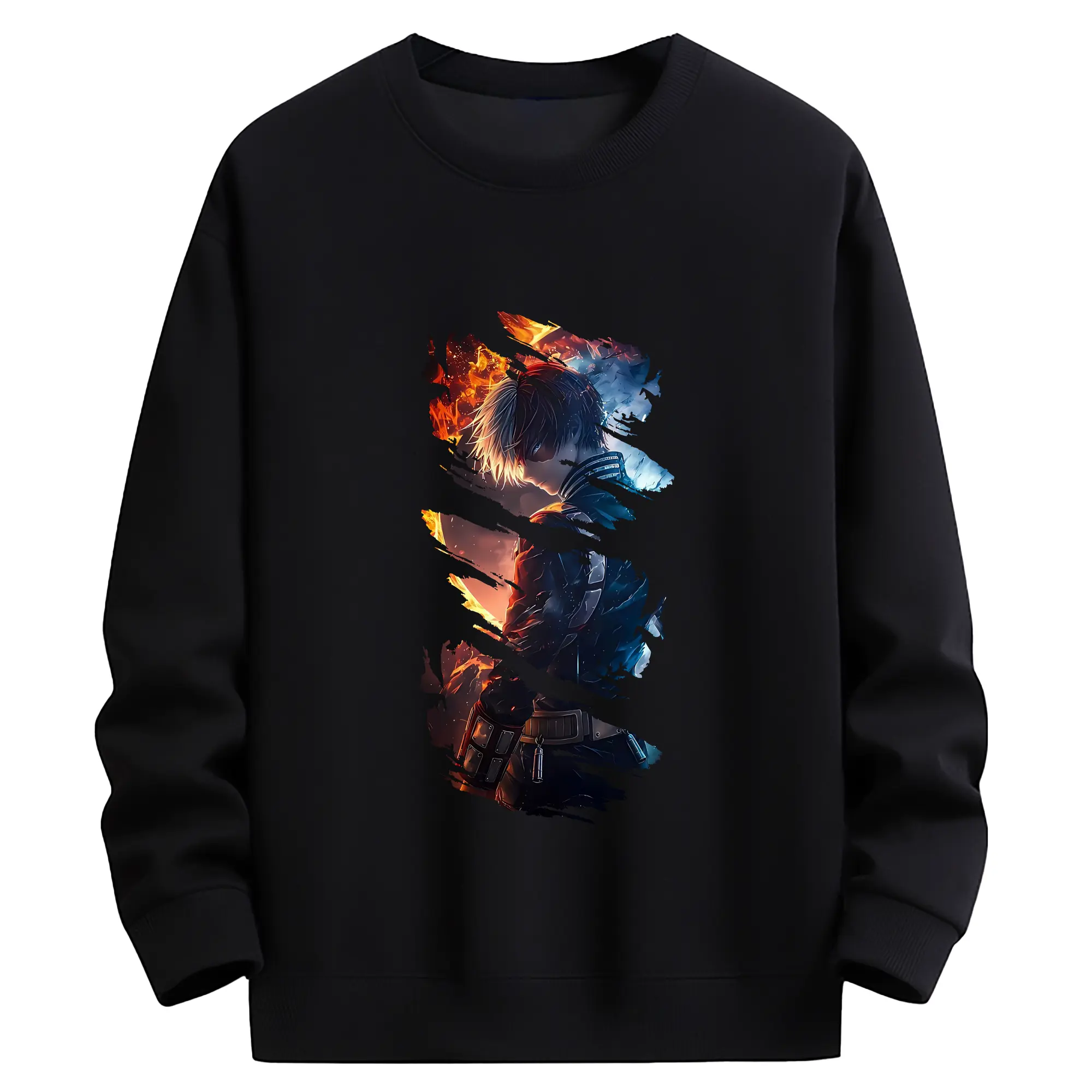 僕のヒーローアカデミア グッズ,轟焦凍 - 薄手 クルーネック スウェット 裏毛260g · ポリエステル 春秋向け カジュアル 男女兼用 · トレーナー デイリー スポーツ 散歩に最適