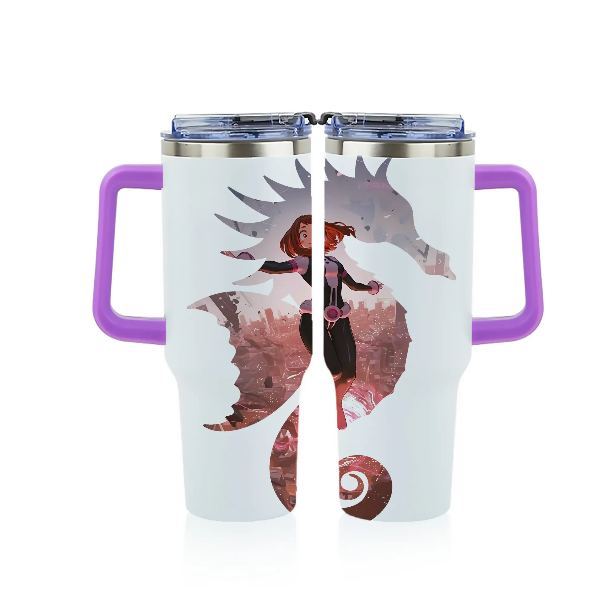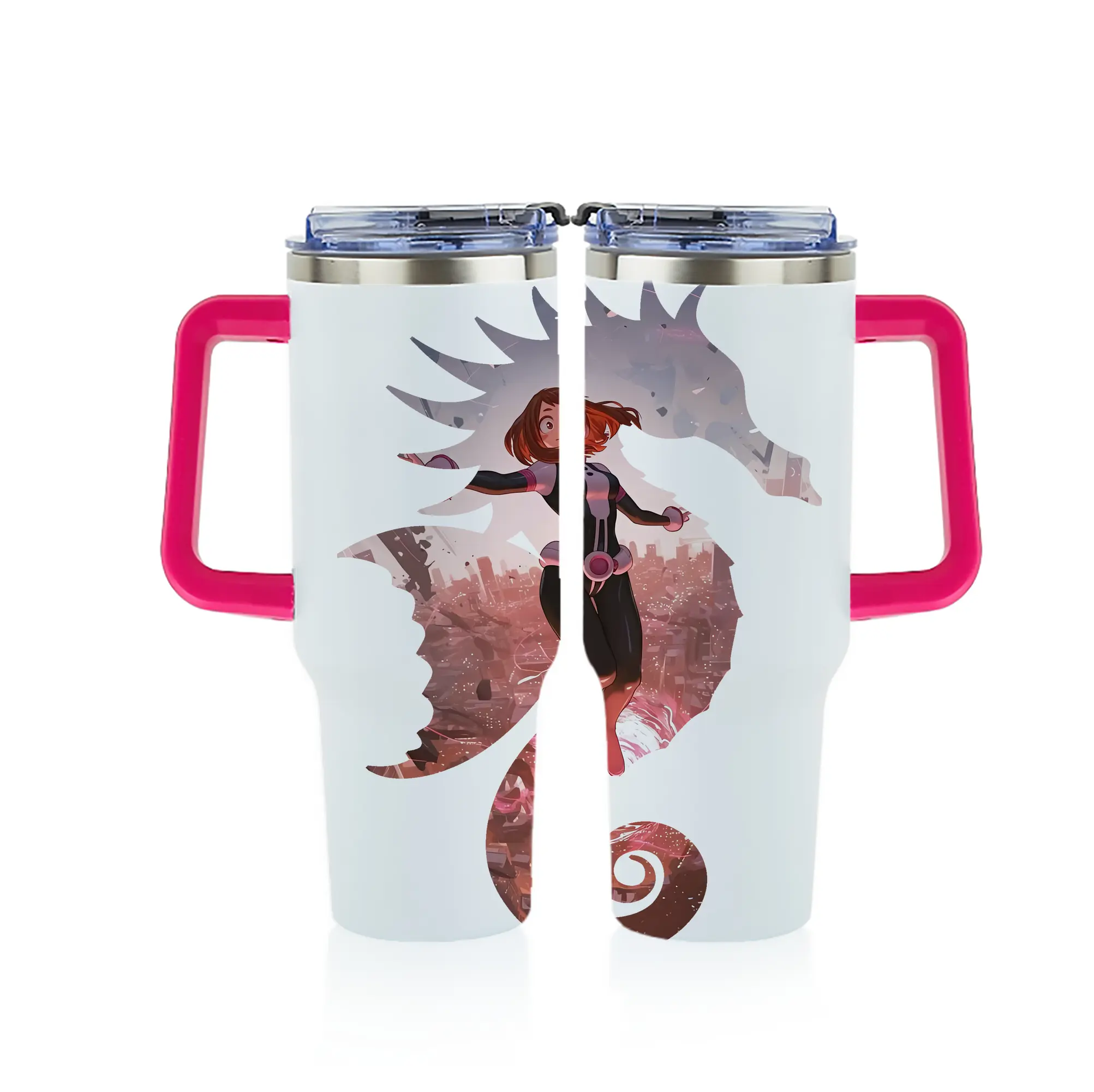 僕のヒーローアカデミア グッズ,麗日お茶子 - 1200mL フルプリント車用タンブラー ・ 304ステンレス 内側 ・ 201ステンレス 外側 ・ 保温 保冷 ・ 通勤 ドライブ アウトドア用