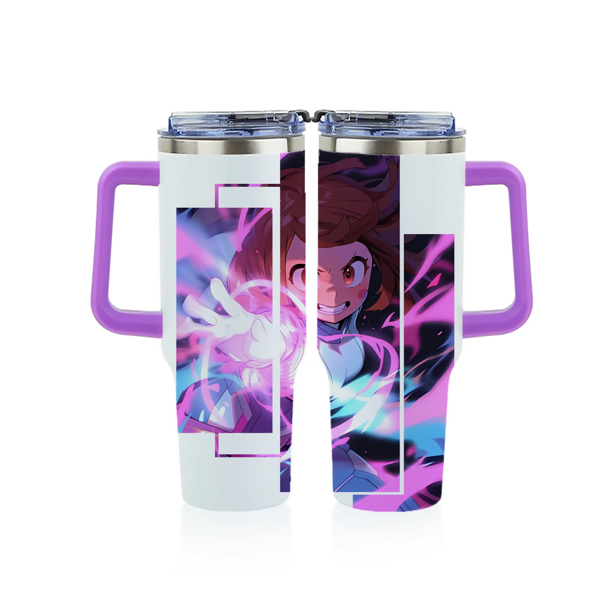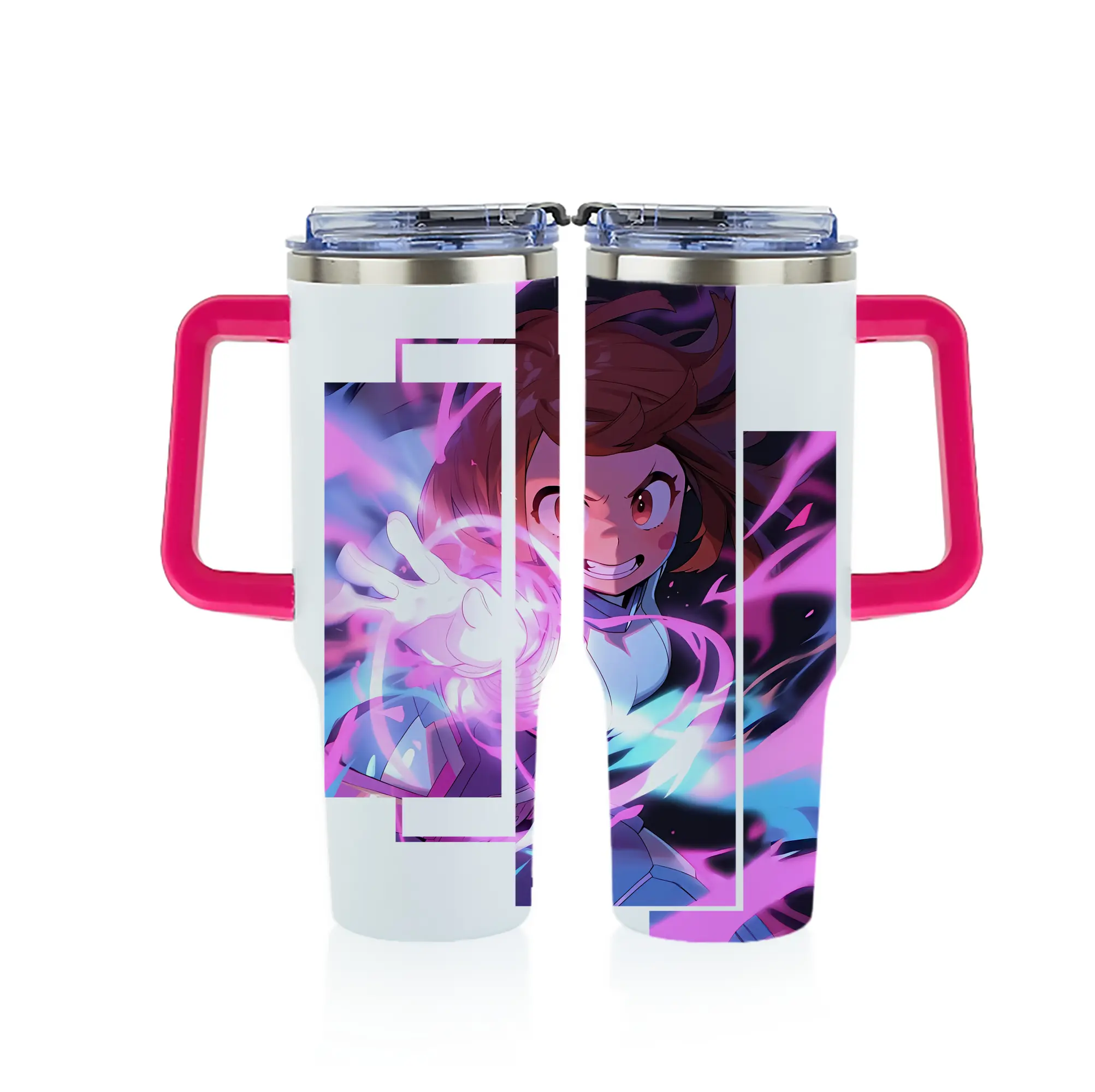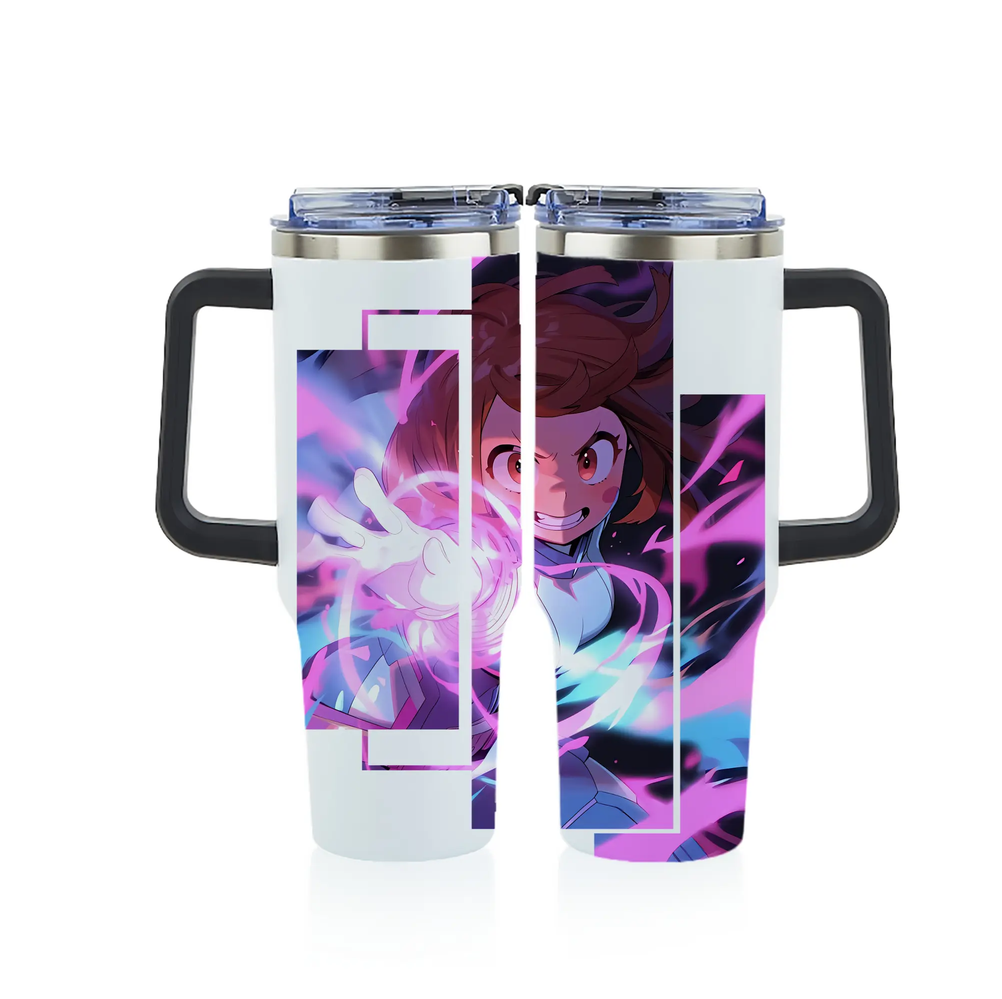 僕のヒーローアカデミア グッズ,麗日お茶子 - 1200mL フルプリント車用タンブラー ・ 304ステンレス 内側 ・ 201ステンレス 外側 ・ 保温 保冷 ・ 通勤 ドライブ アウトドア用
