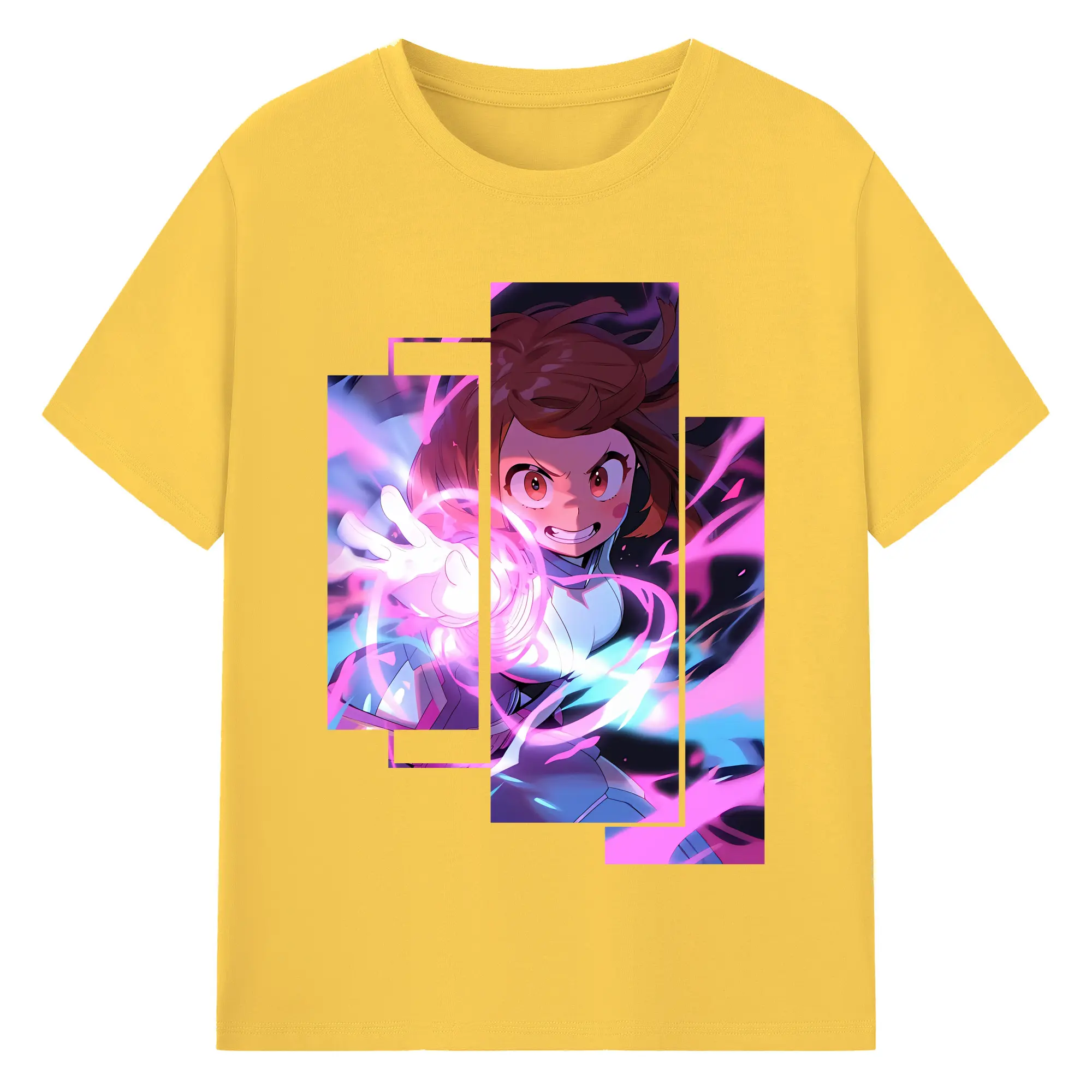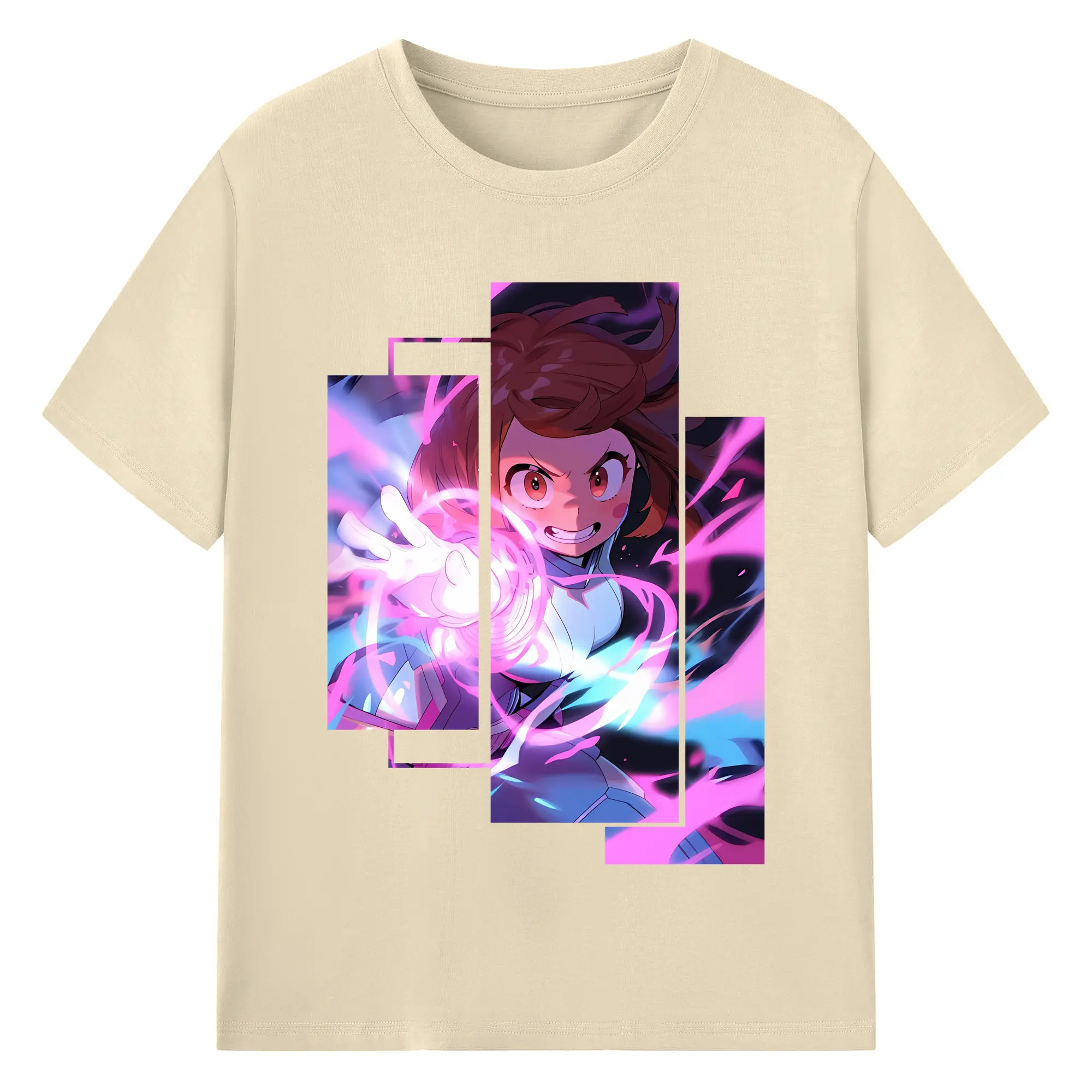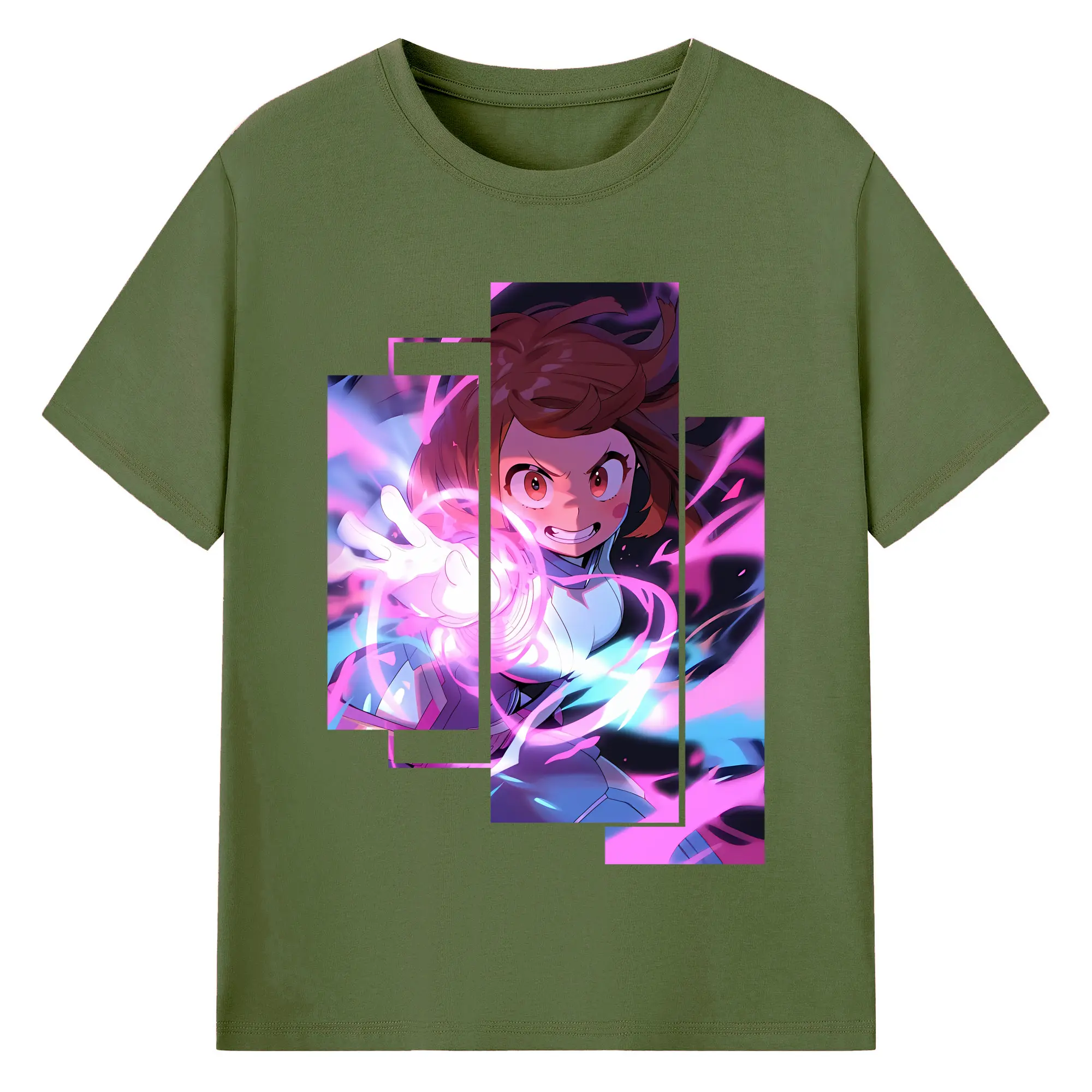 僕のヒーローアカデミア グッズ,麗日お茶子 - 綿100% 半袖Tシャツ ・ バックプリント ・ 快適 通気性 ・ 日常使い 散歩 スポーツ用