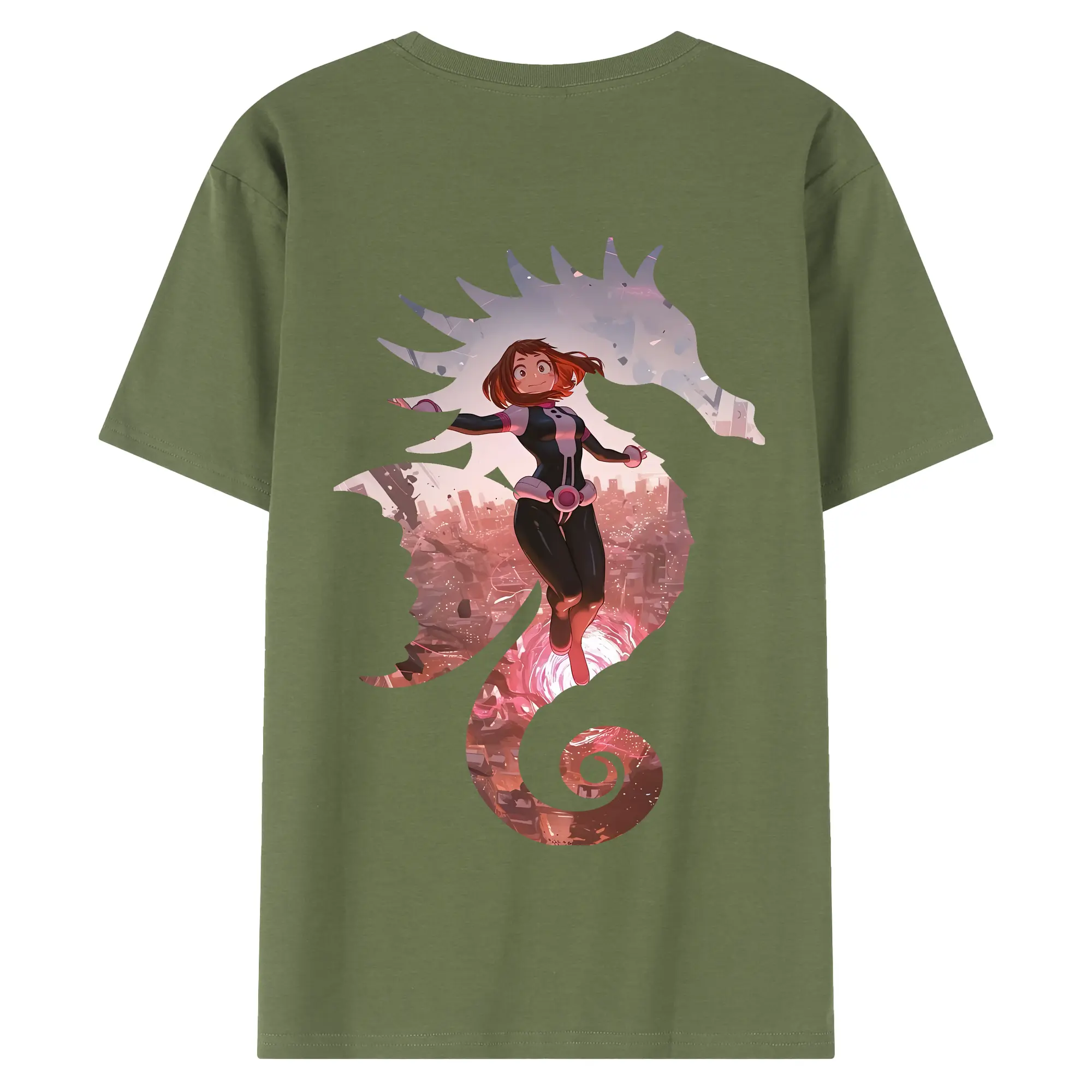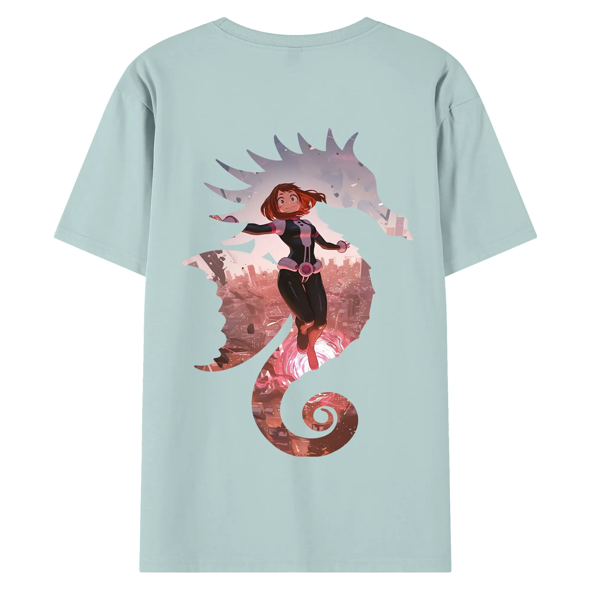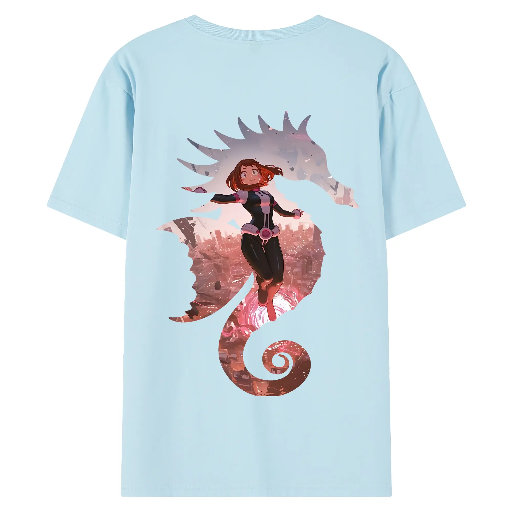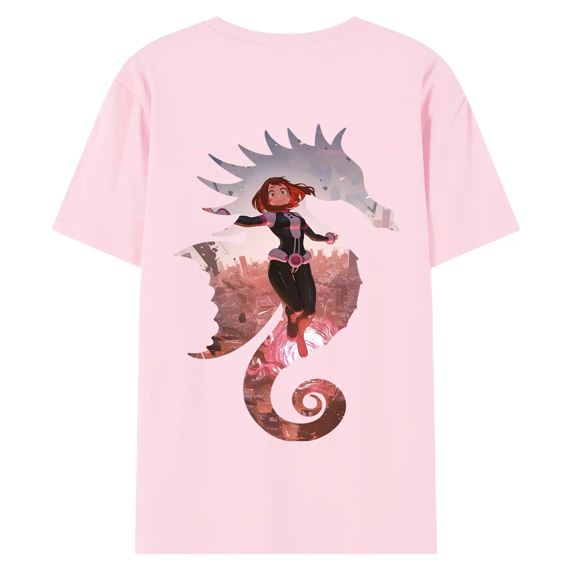 僕のヒーローアカデミア グッズ,麗日お茶子 - 綿100% 半袖Tシャツ ・ フロントプリント ・ 快適 通気性 ・ 日常使い 散歩 スポーツ用