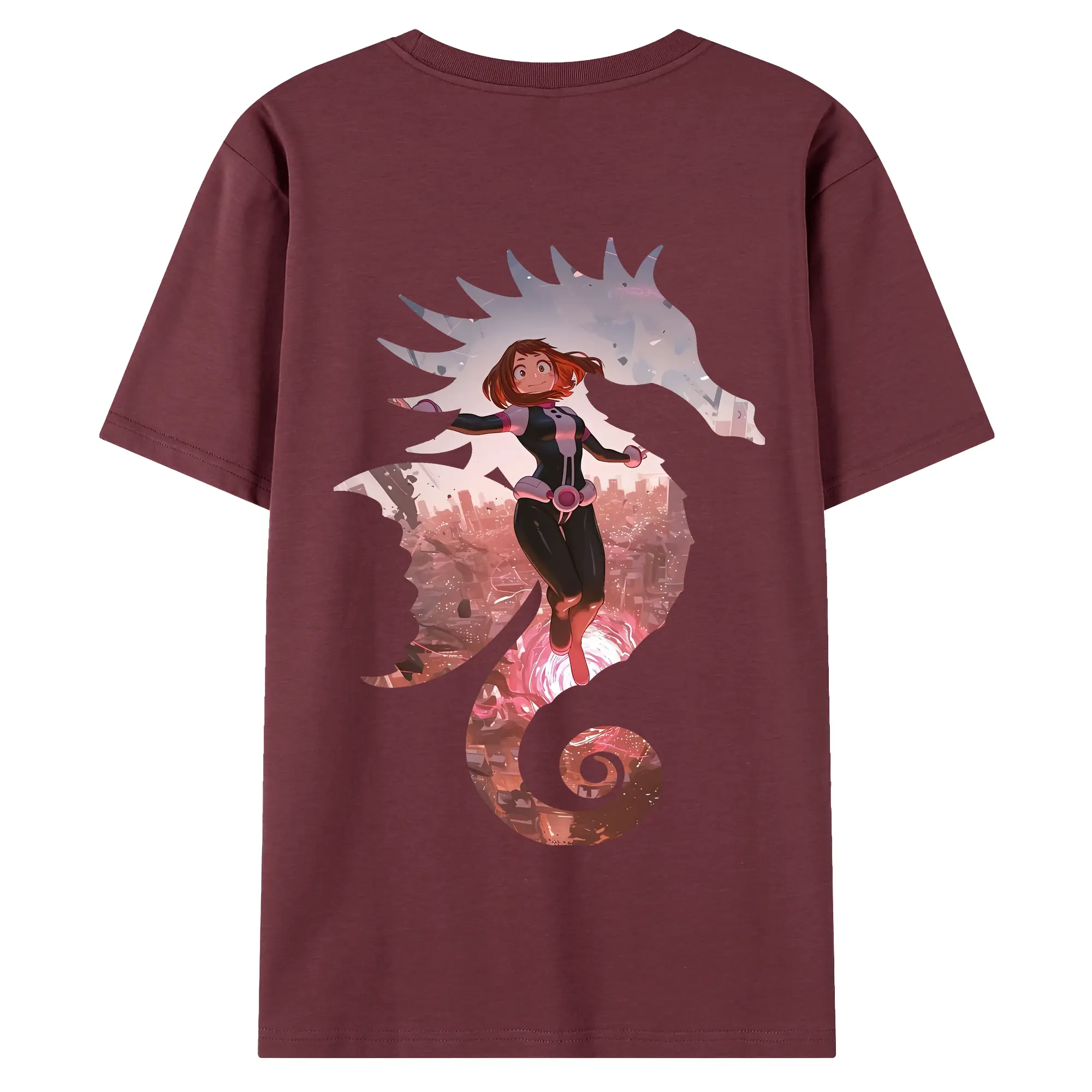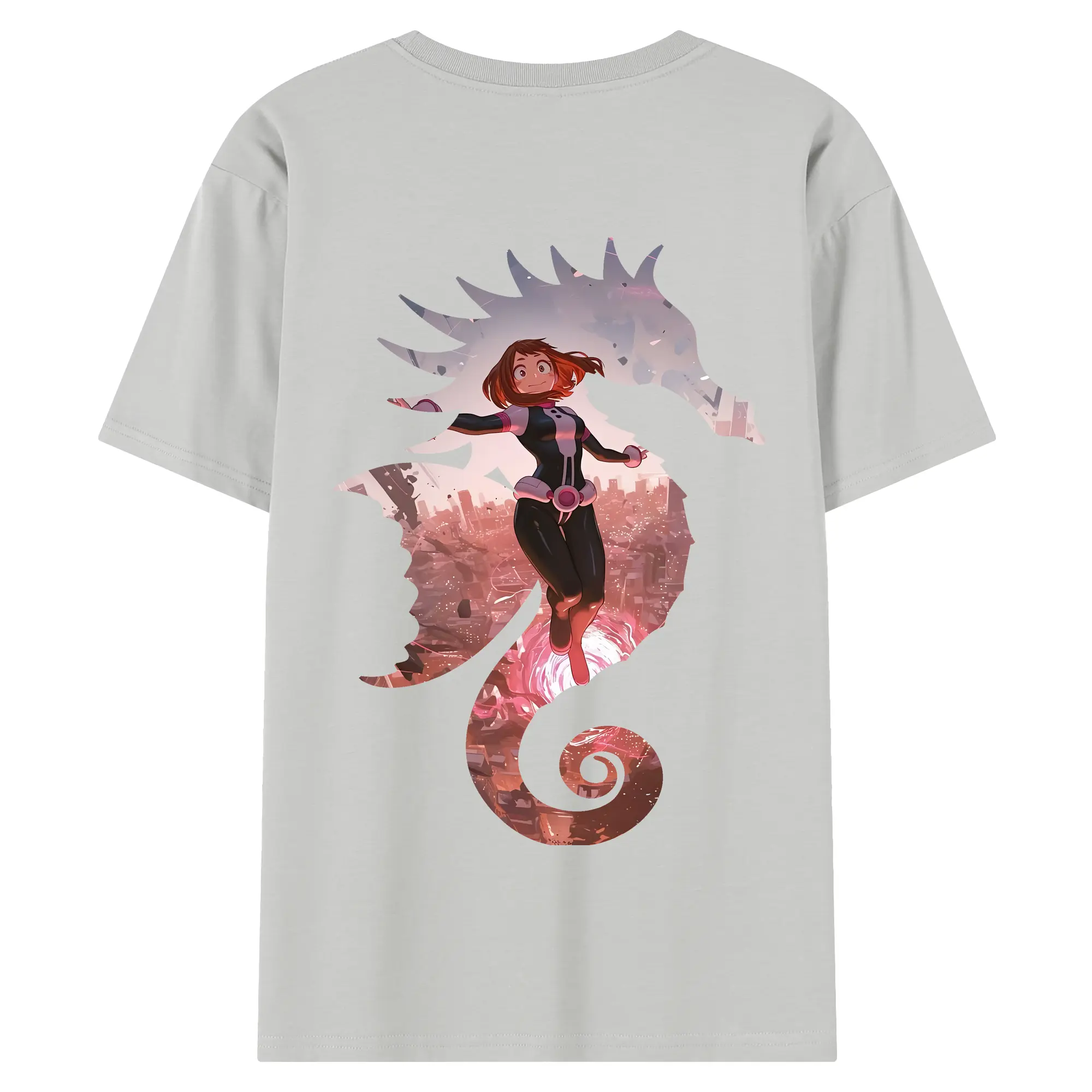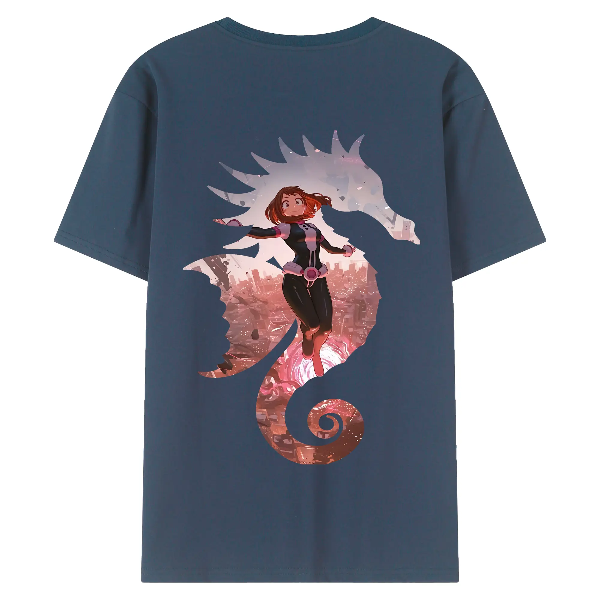 僕のヒーローアカデミア グッズ,麗日お茶子 - 綿100% ヴィンテージ風 半袖Tシャツ ・ 背面プリント ・ 柔らか肌触り ・ 通気性 快適 ・ スポーツ カジュアル 外出用