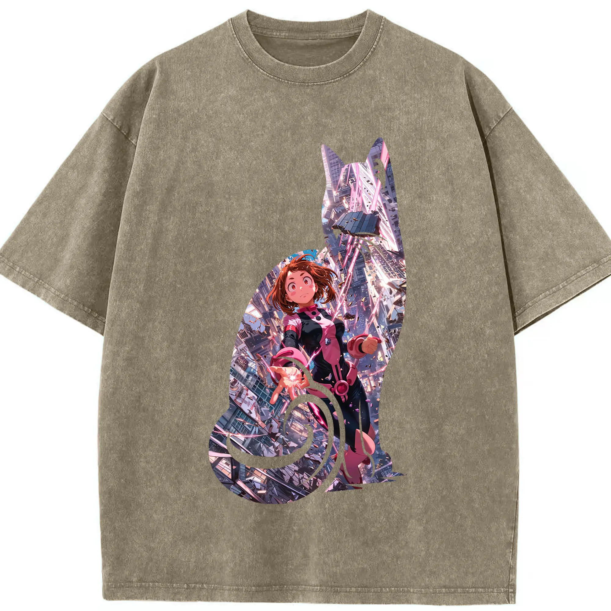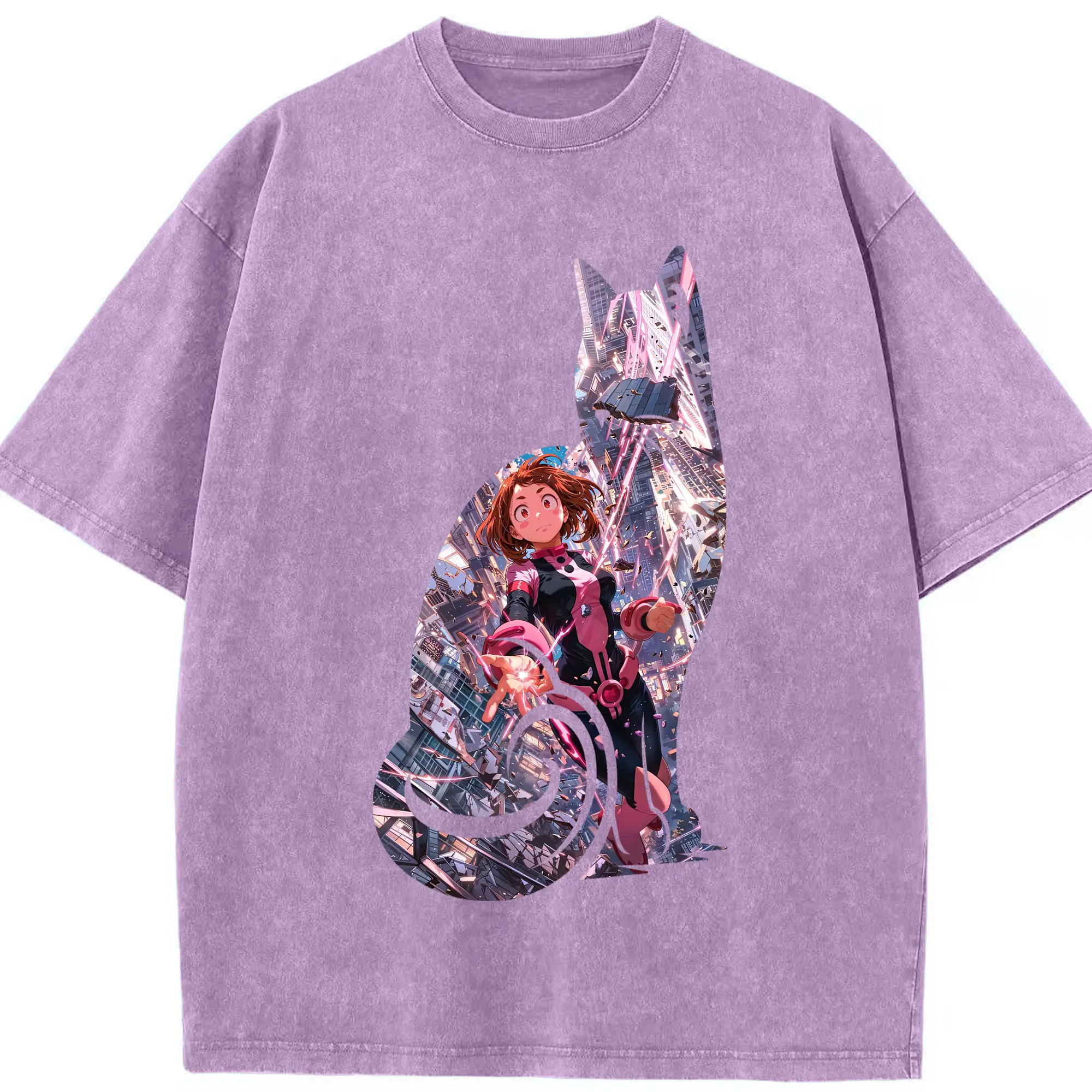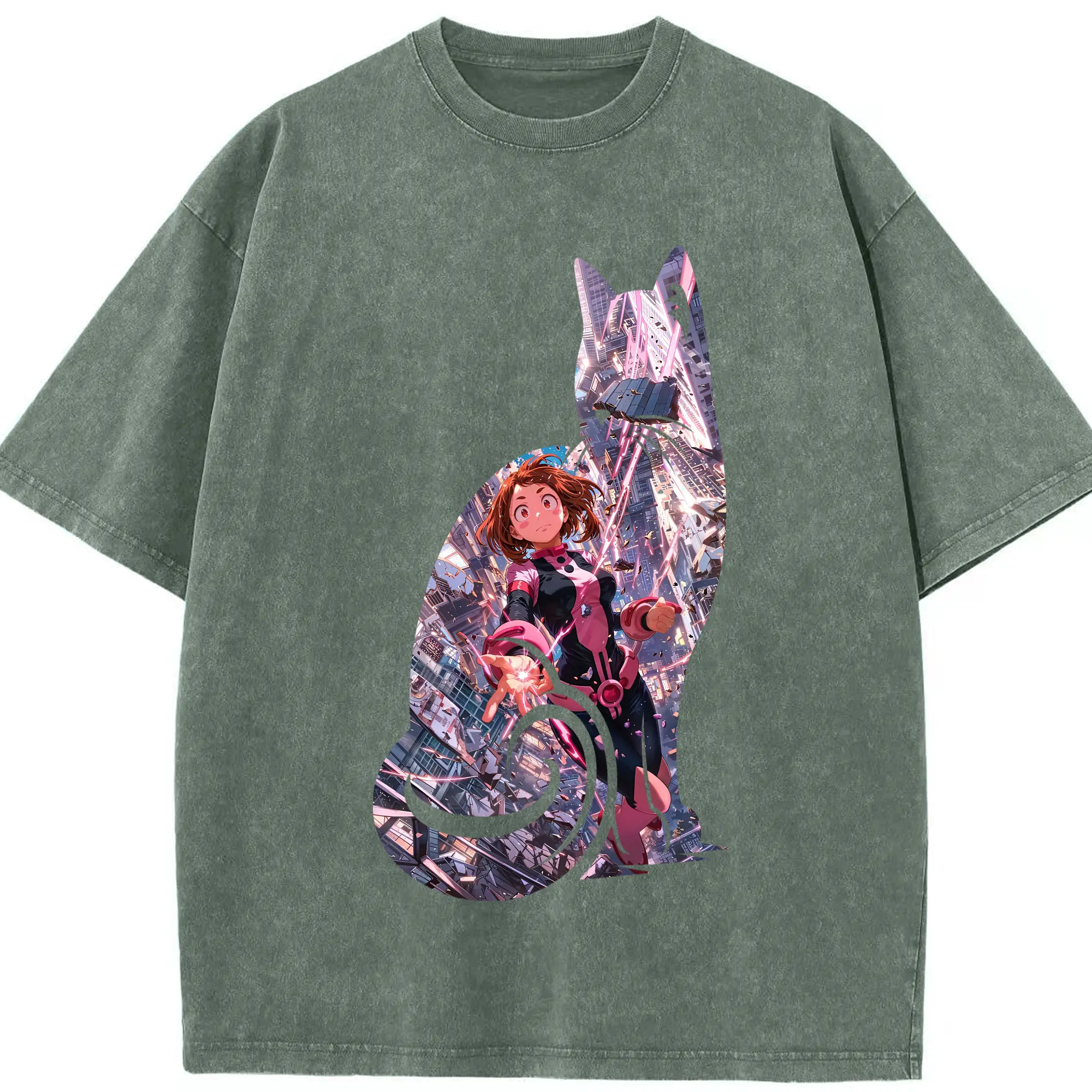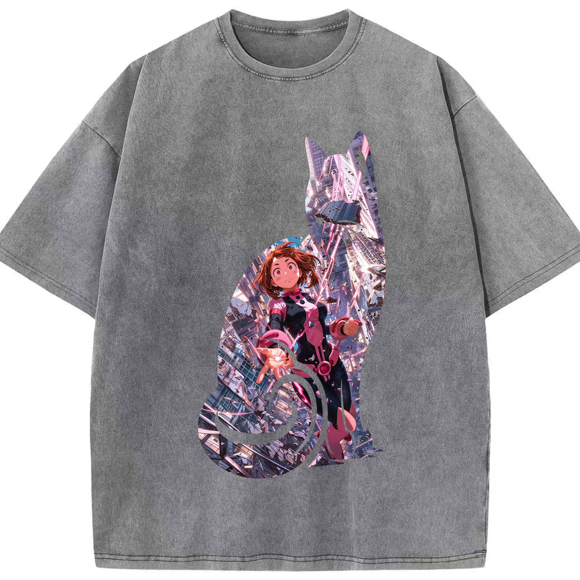 僕のヒーローアカデミア グッズ,麗日お茶子 - 綿100% ヴィンテージ風 半袖Tシャツ ・ 背面プリント ・ 柔らか肌触り ・ 通気性 快適 ・ スポーツ カジュアル 外出用