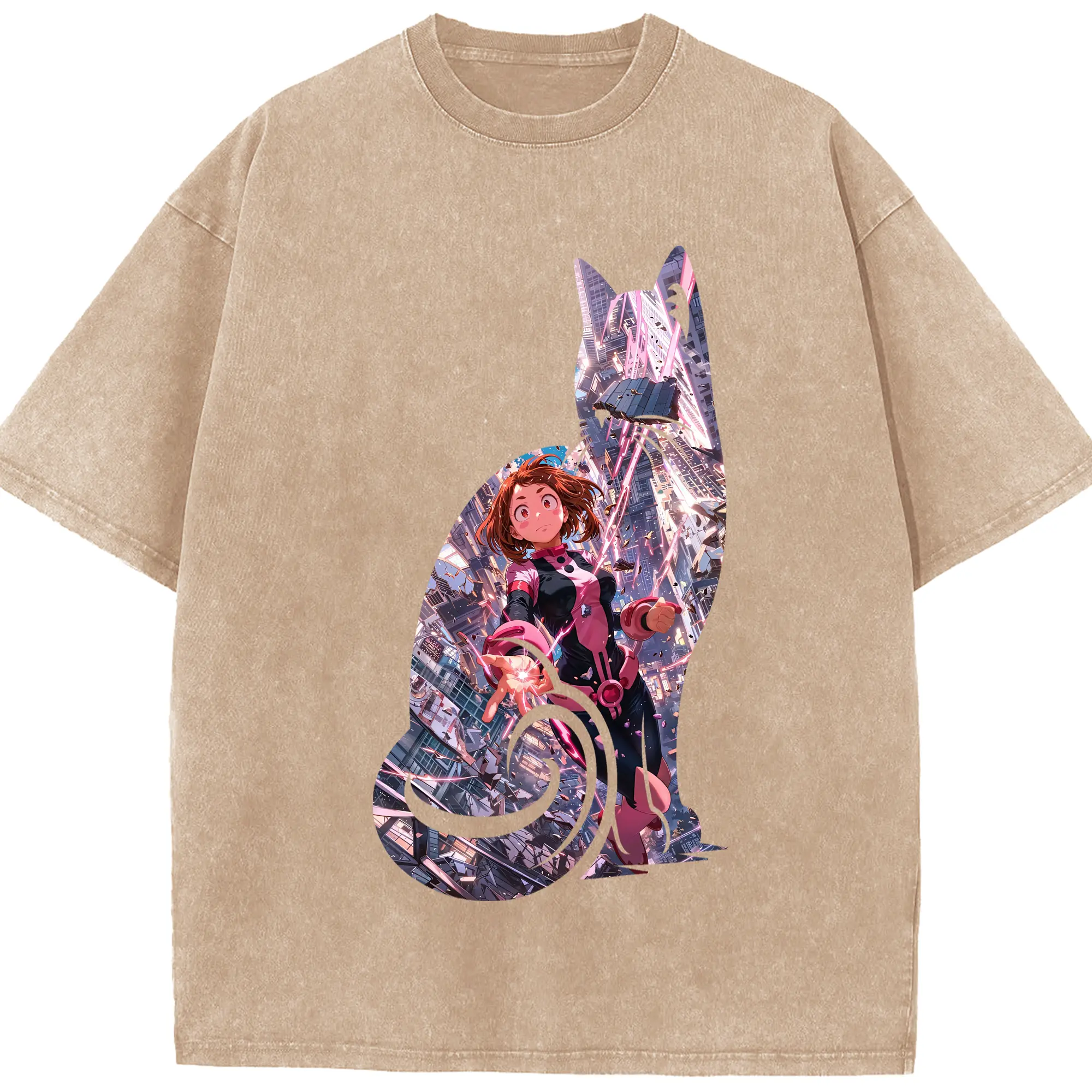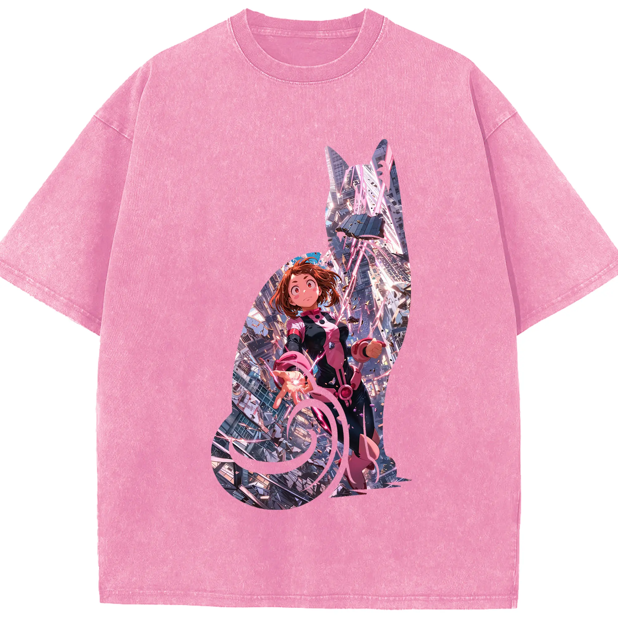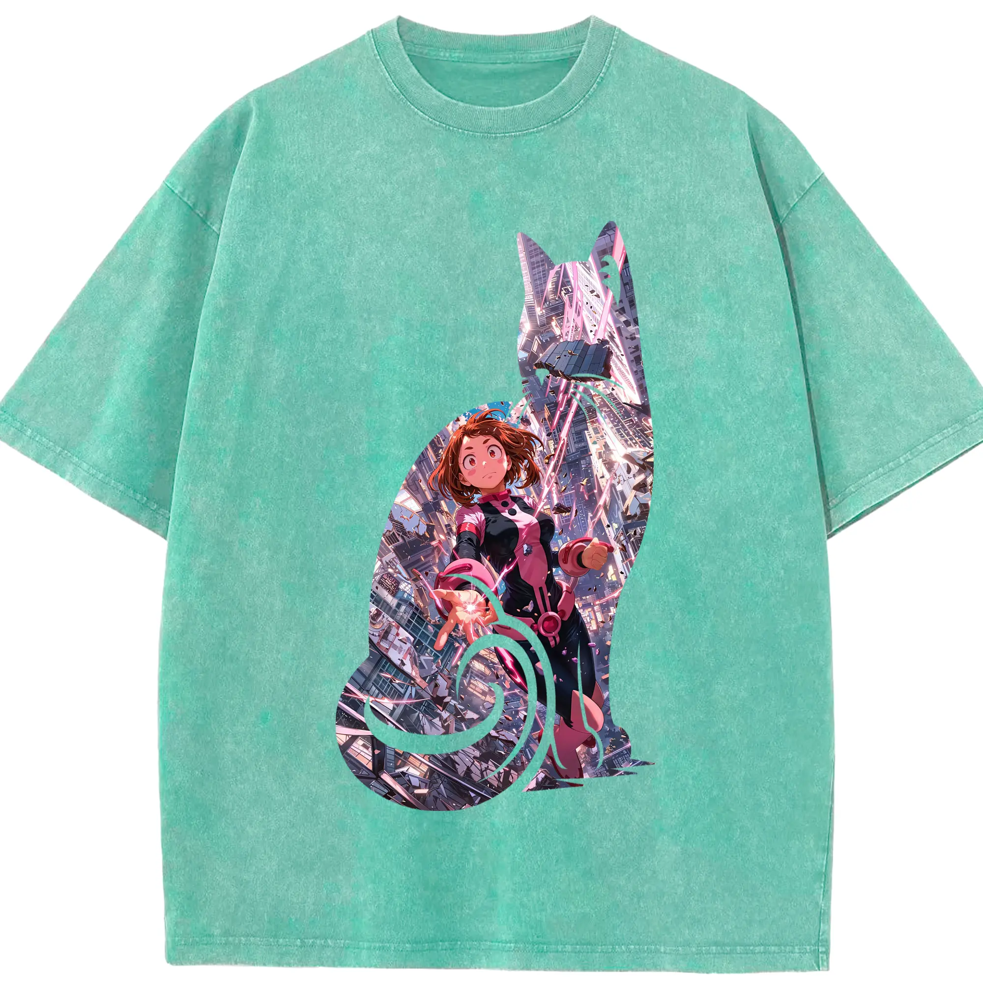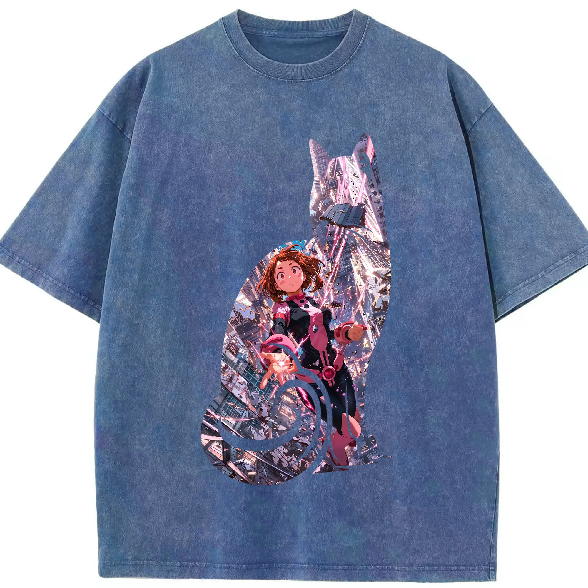 僕のヒーローアカデミア グッズ,麗日お茶子 - 綿100% ヴィンテージ風 半袖Tシャツ ・ 背面プリント ・ 柔らか肌触り ・ 通気性 快適 ・ スポーツ カジュアル 外出用