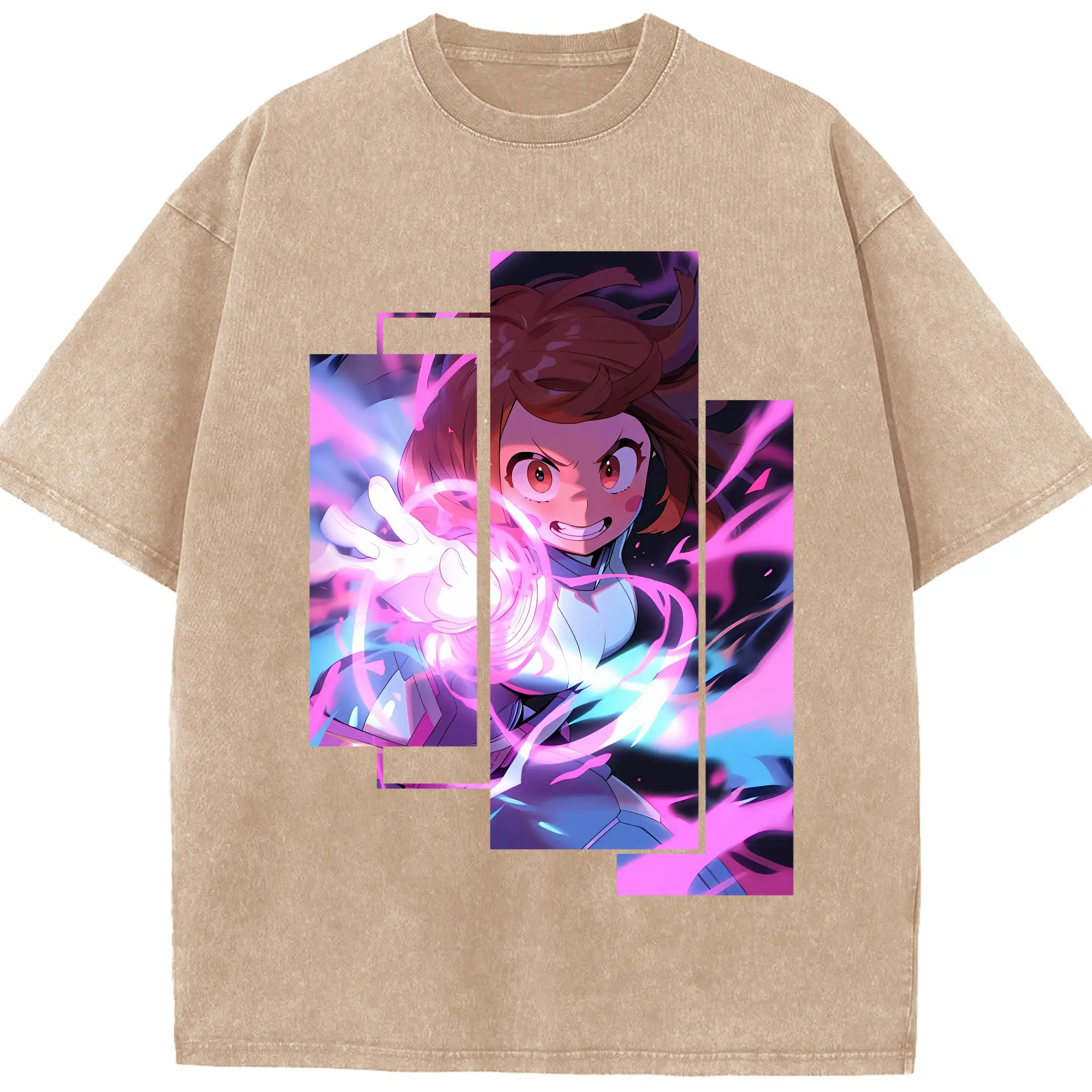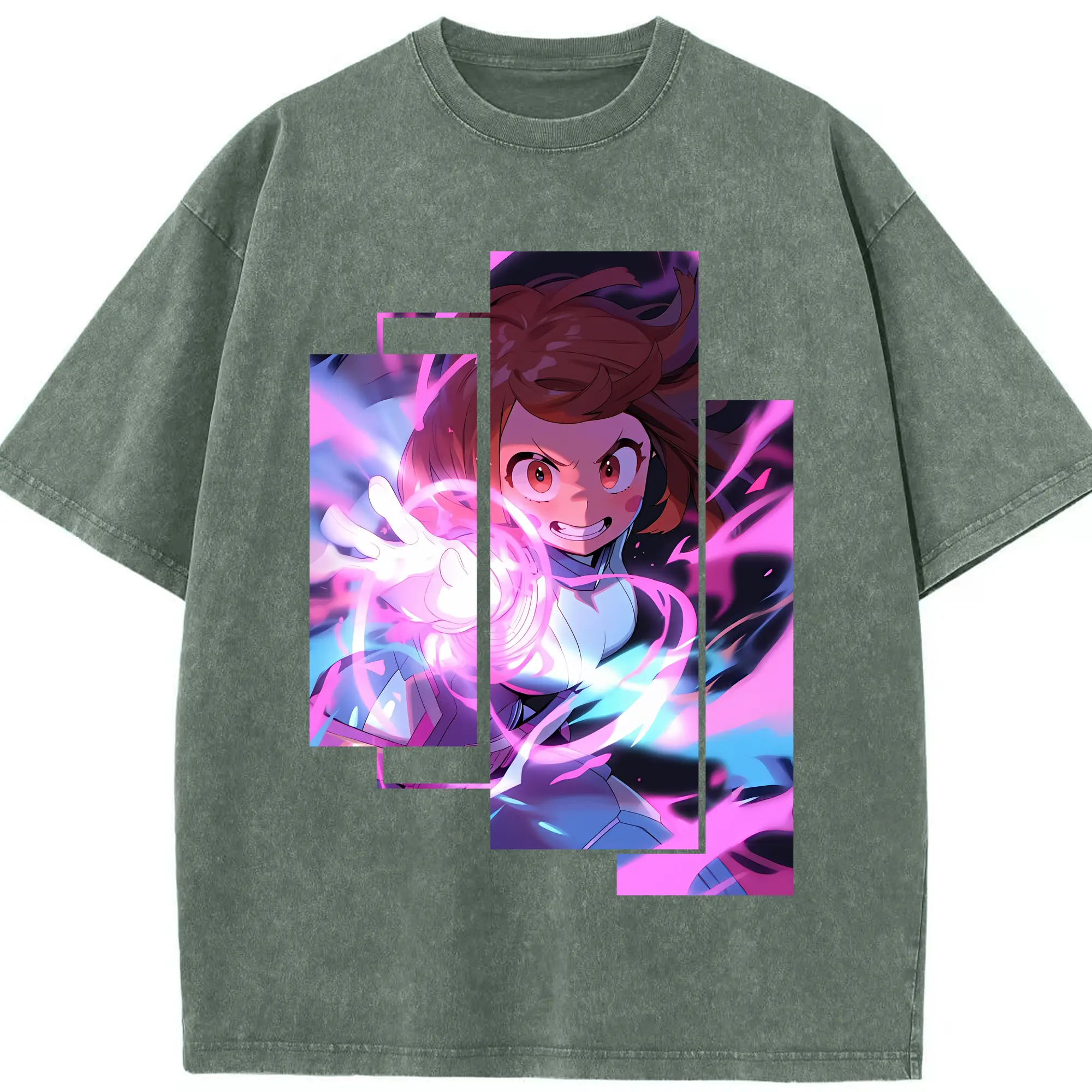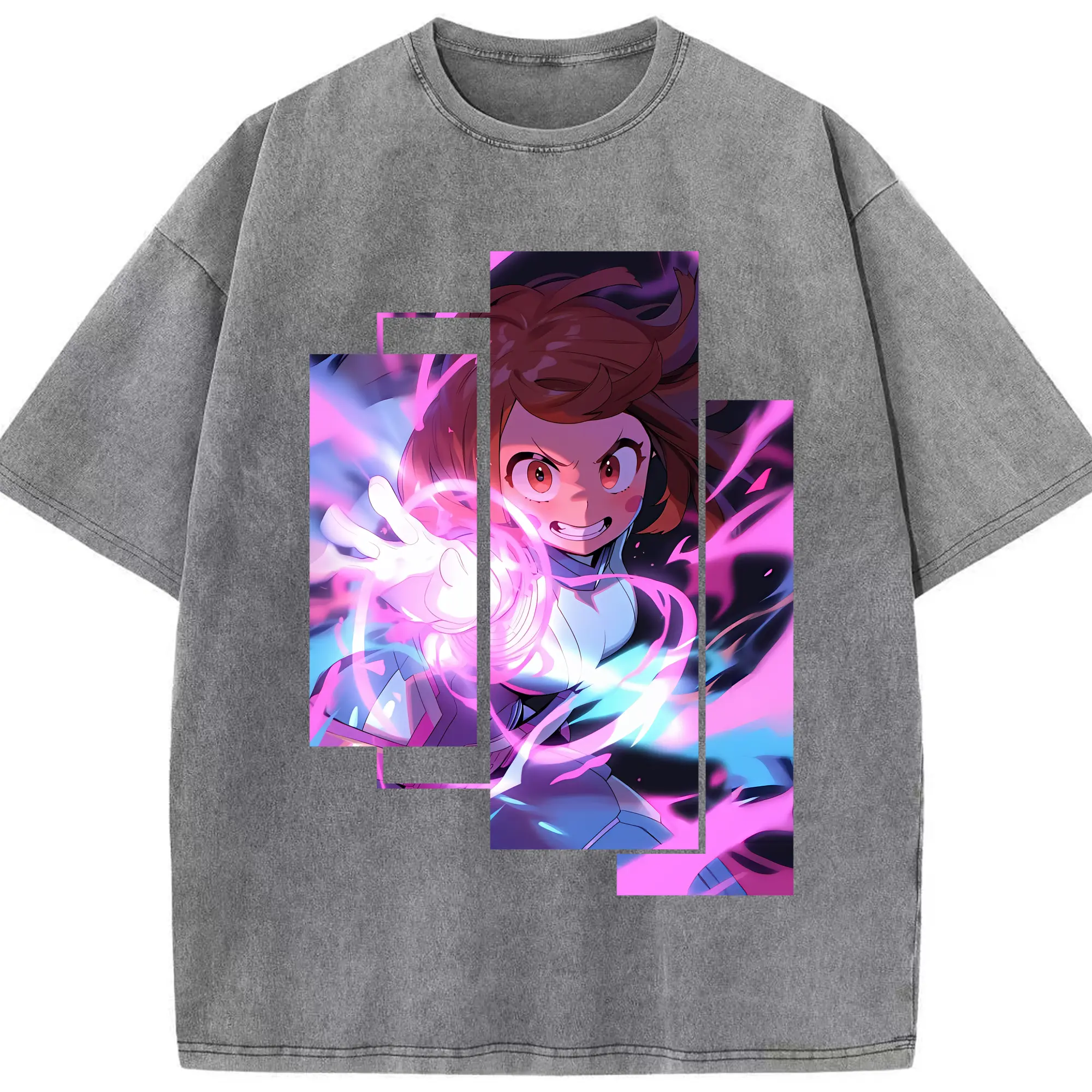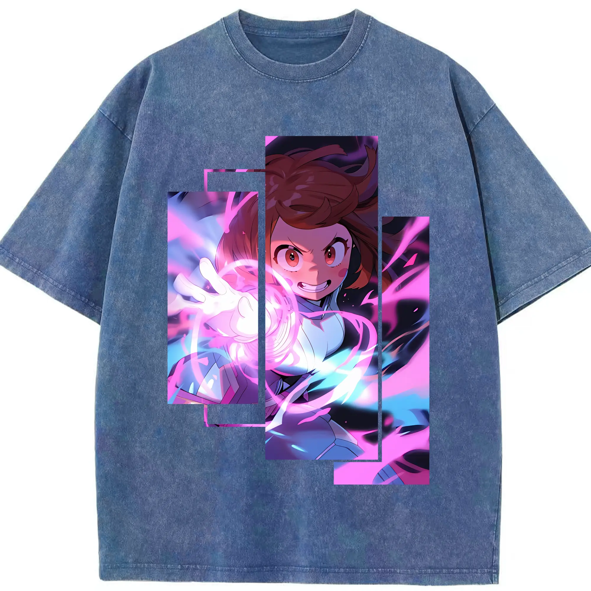僕のヒーローアカデミア グッズ,麗日お茶子 - 綿100% ヴィンテージ風 半袖Tシャツ ・ 背面プリント ・ 柔らか肌触り ・ 通気性 快適 ・ スポーツ カジュアル 外出用