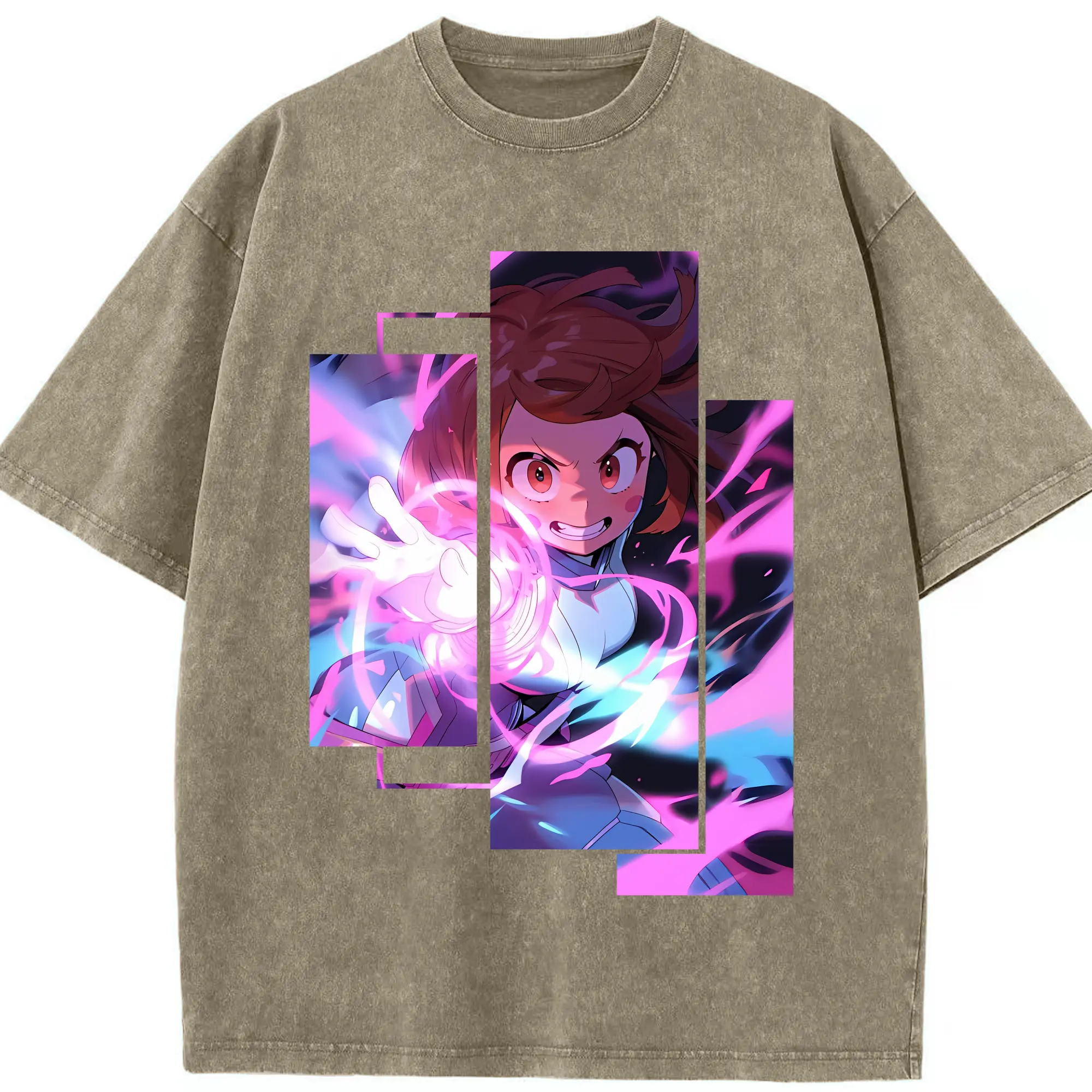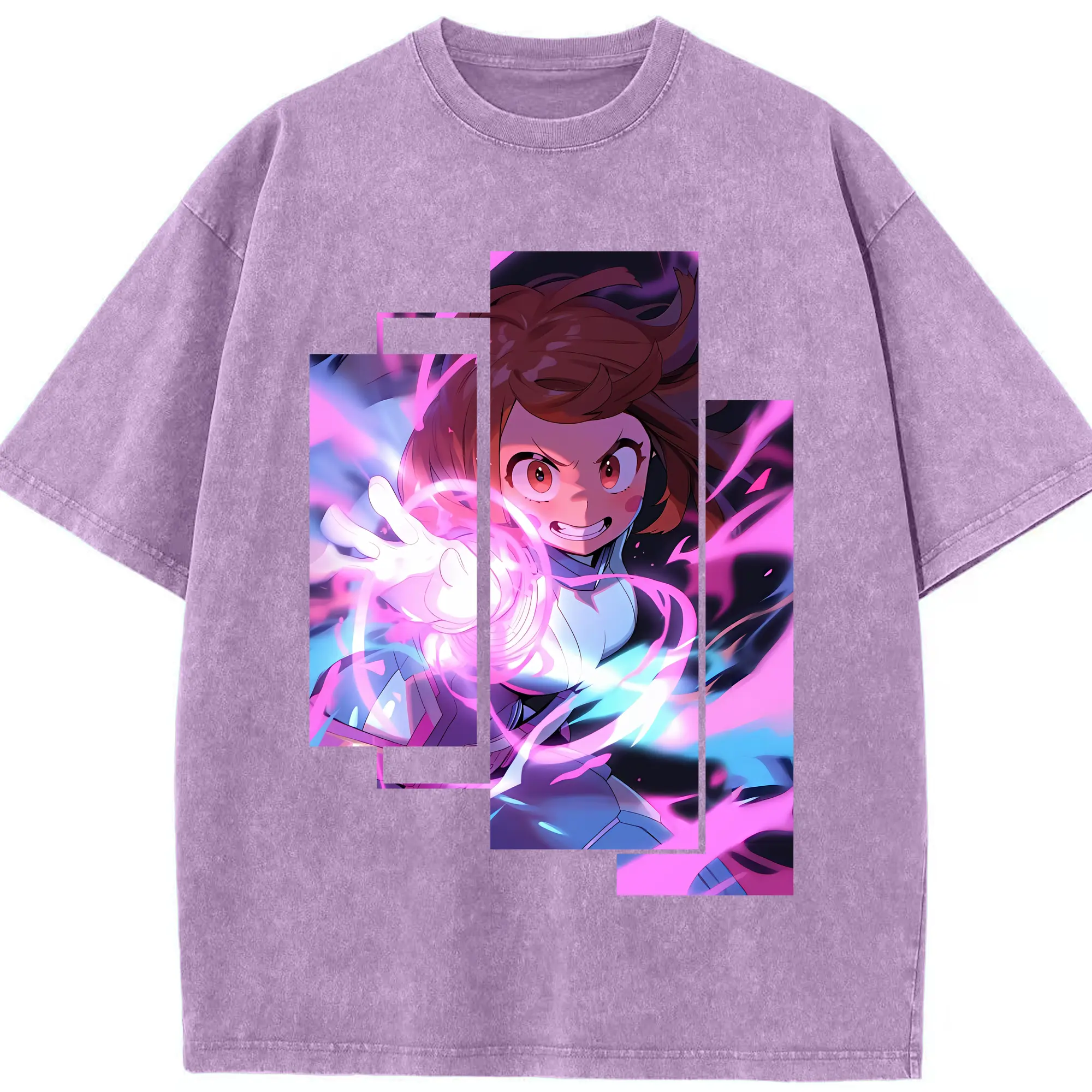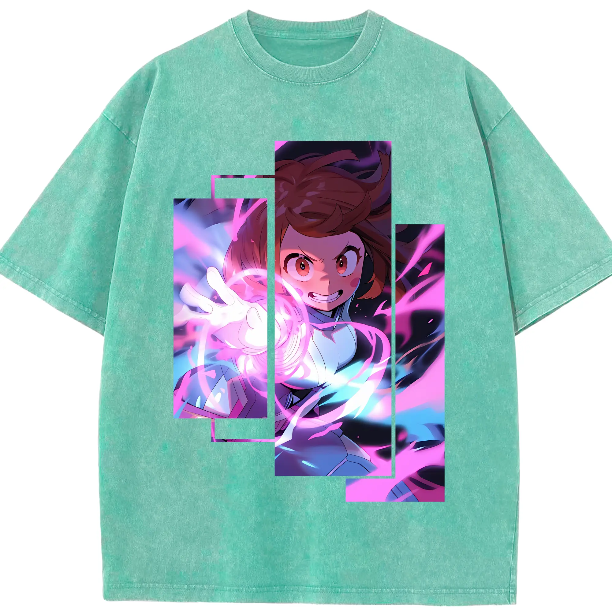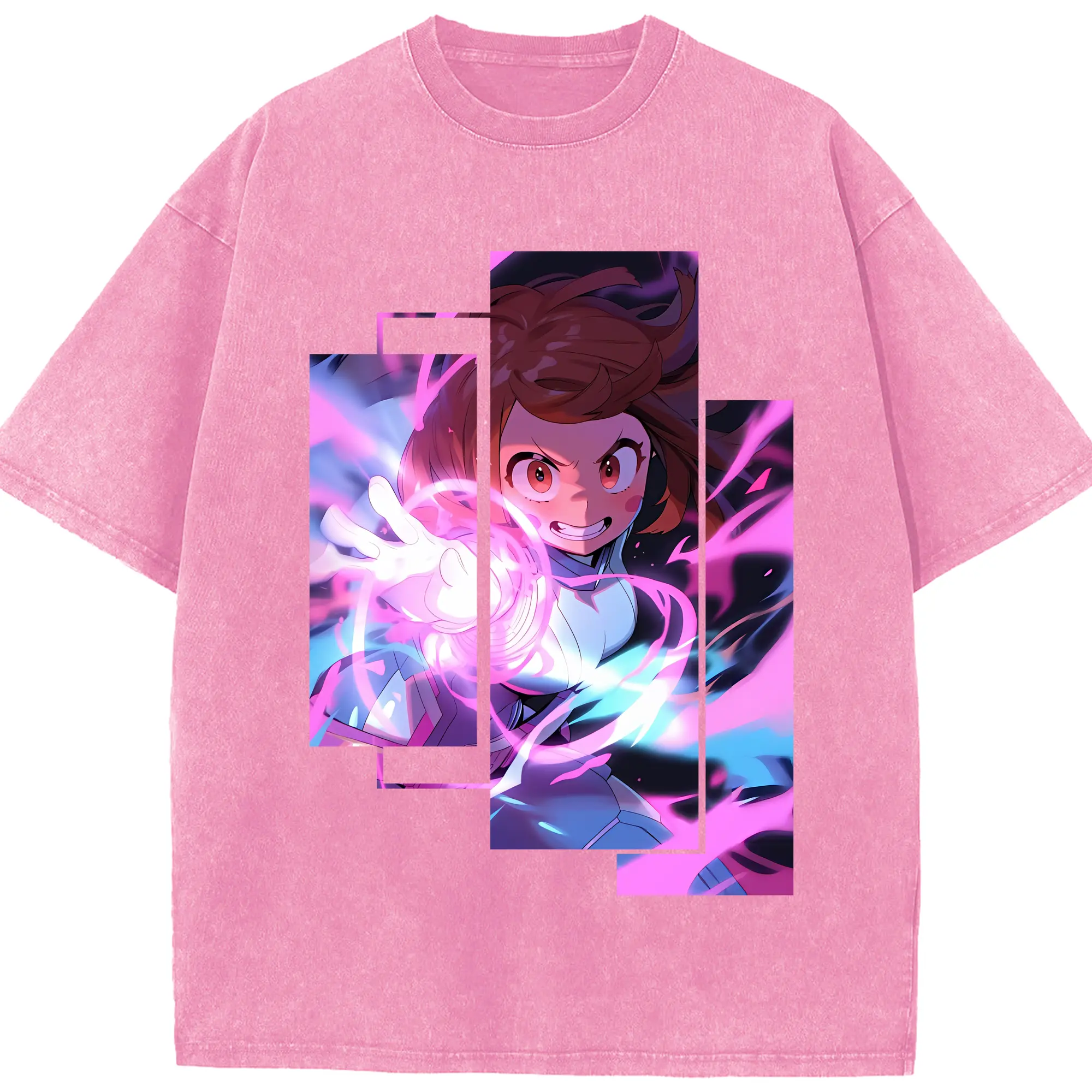 僕のヒーローアカデミア グッズ,麗日お茶子 - 綿100% ヴィンテージ風 半袖Tシャツ ・ 背面プリント ・ 柔らか肌触り ・ 通気性 快適 ・ スポーツ カジュアル 外出用