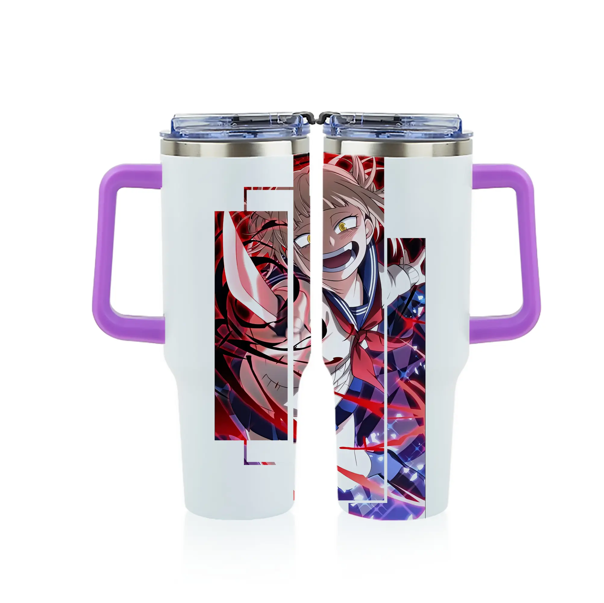僕のヒーローアカデミア グッズ,トガヒミコ - 1200mL フルプリント車用タンブラー ・ 304ステンレス 内側 ・ 201ステンレス 外側 ・ 保温 保冷 ・ 通勤 ドライブ アウトドア用