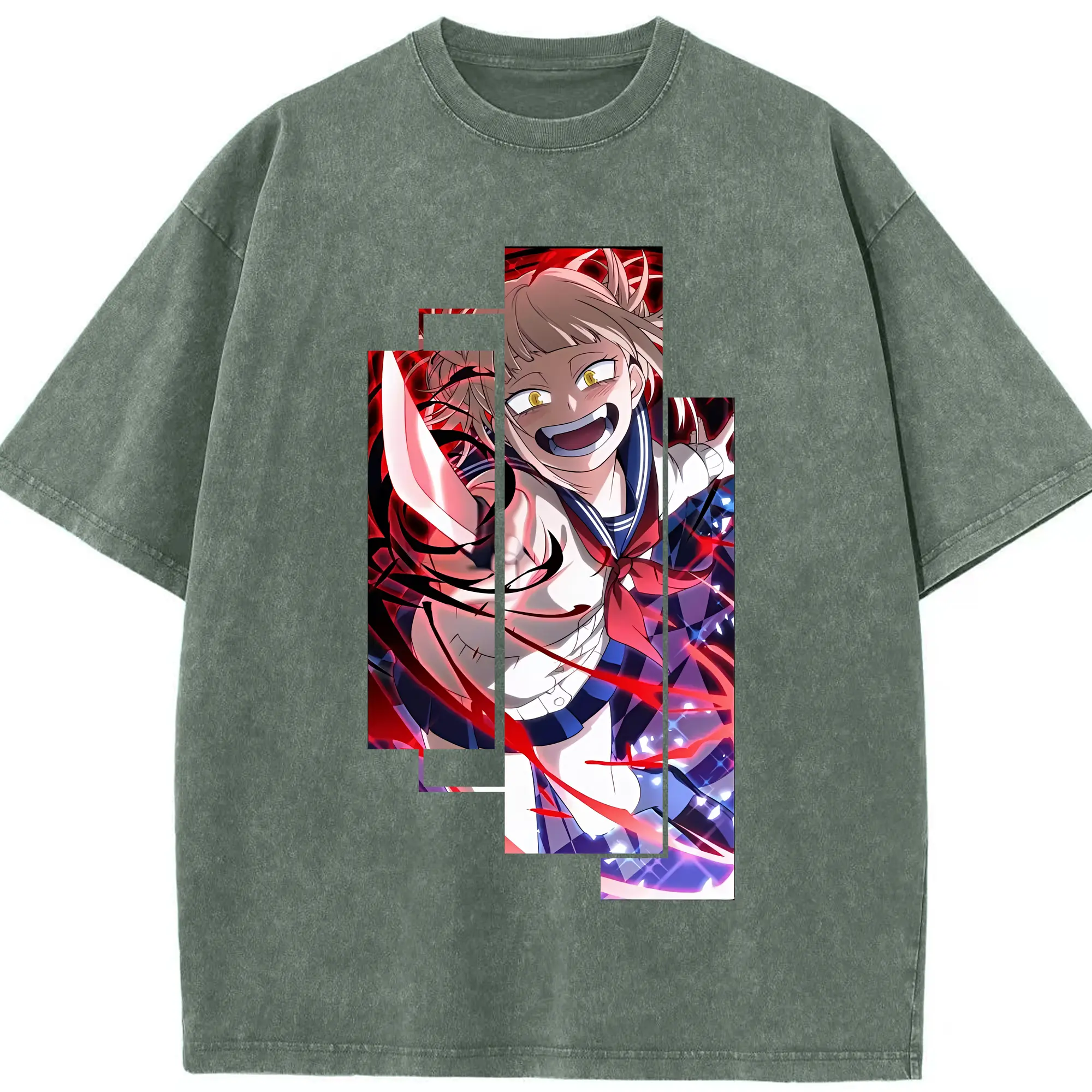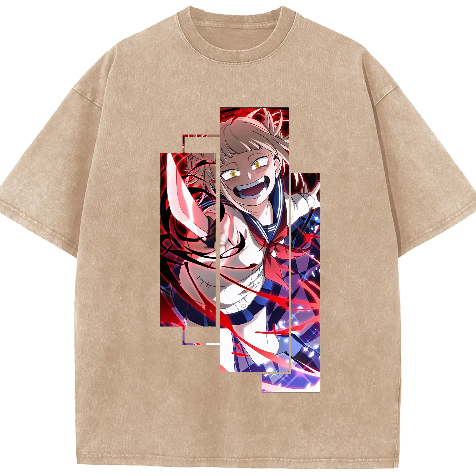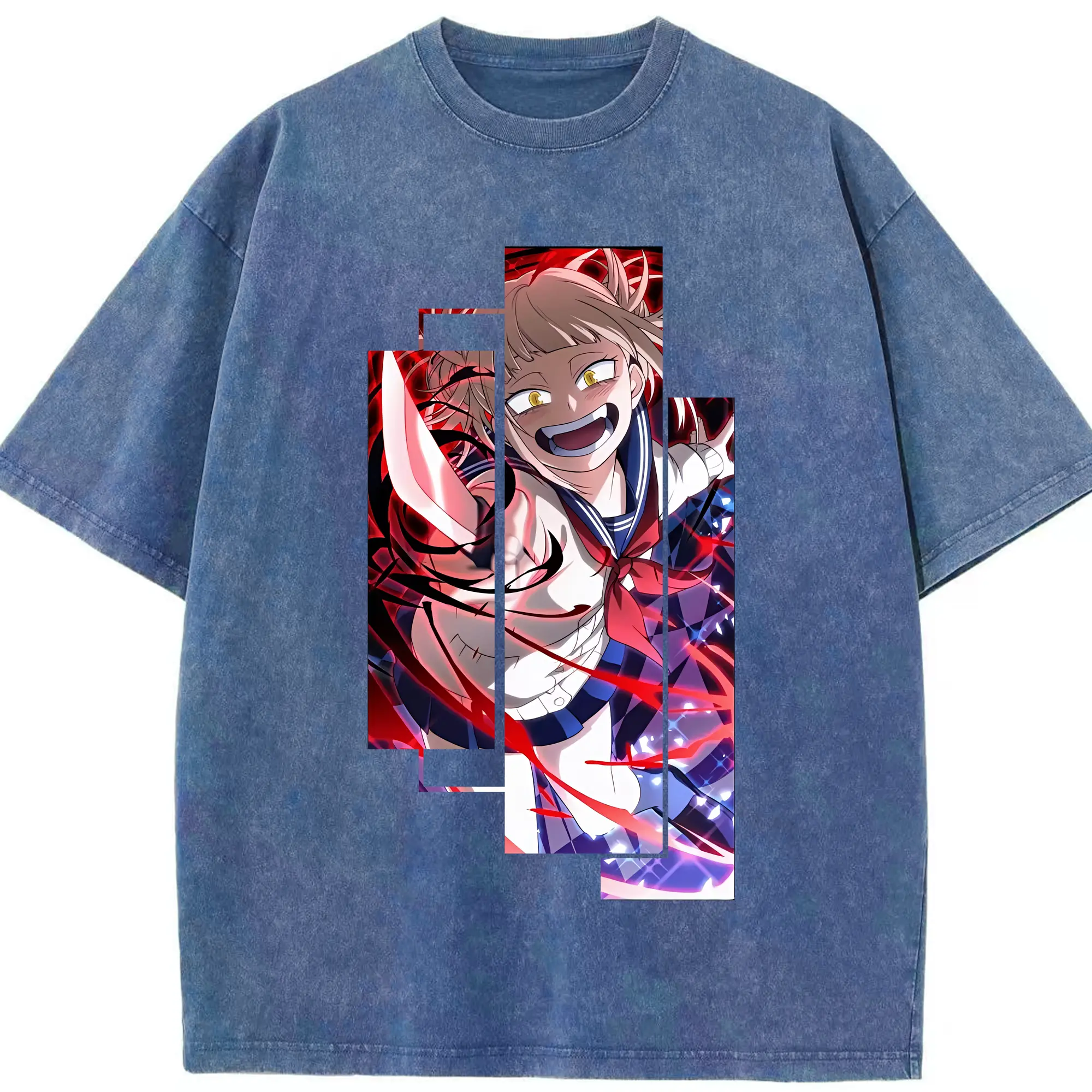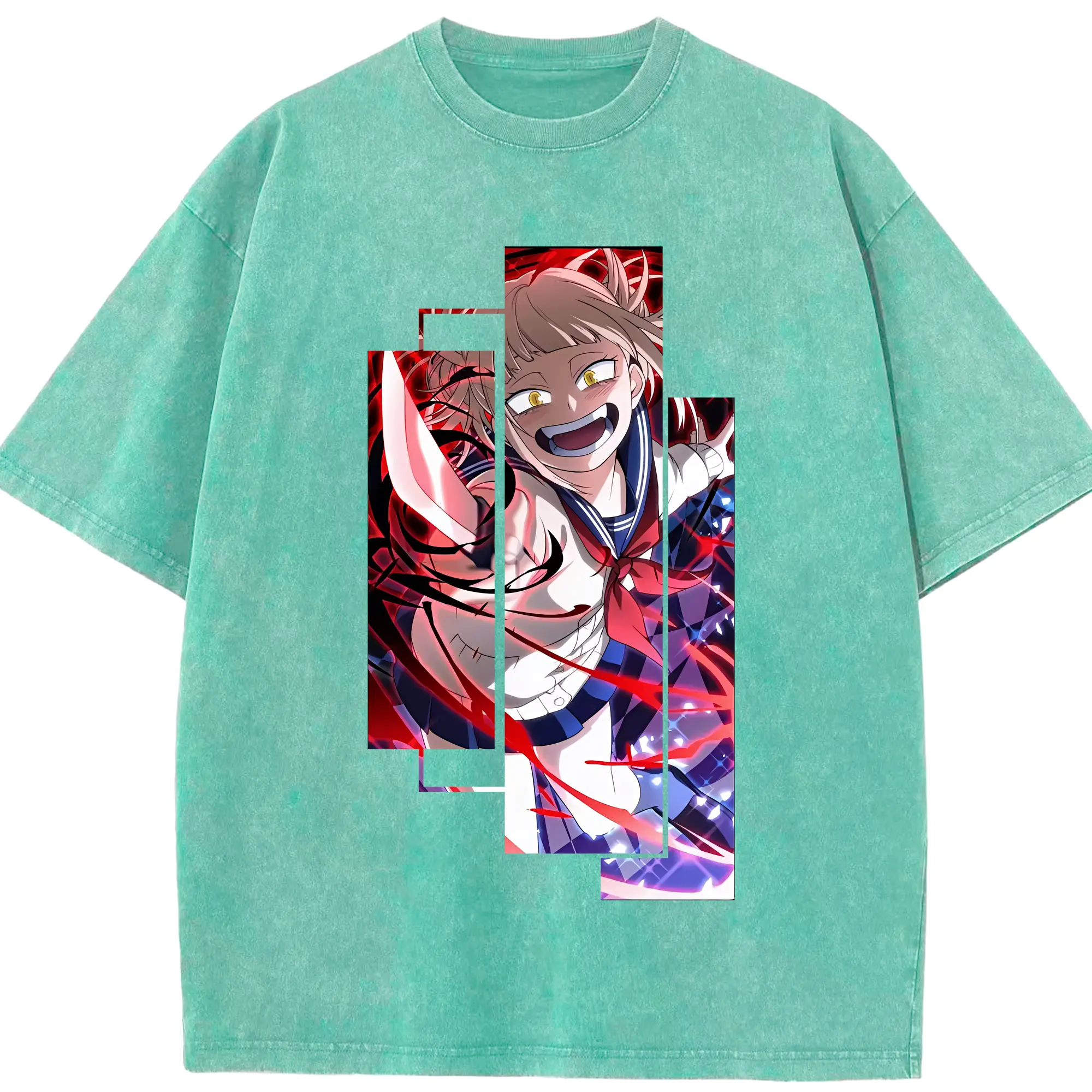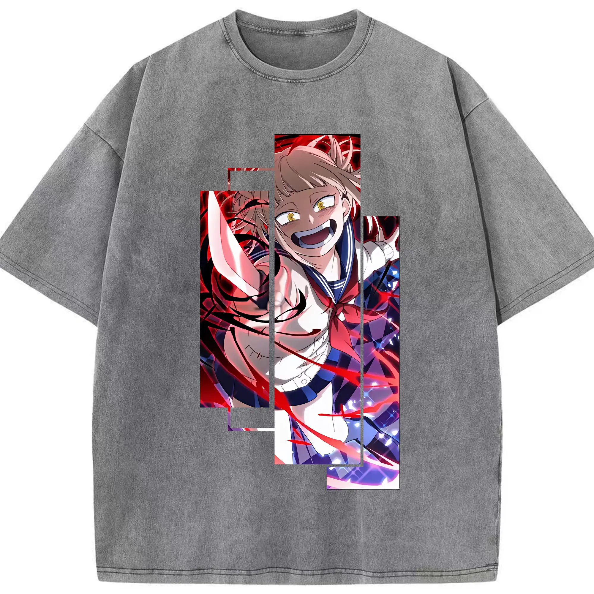 僕のヒーローアカデミア グッズ,トガヒミコ - 綿100% ヴィンテージ風 半袖Tシャツ ・ 背面プリント ・ 柔らか肌触り ・ 通気性 快適 ・ スポーツ カジュアル 外出用