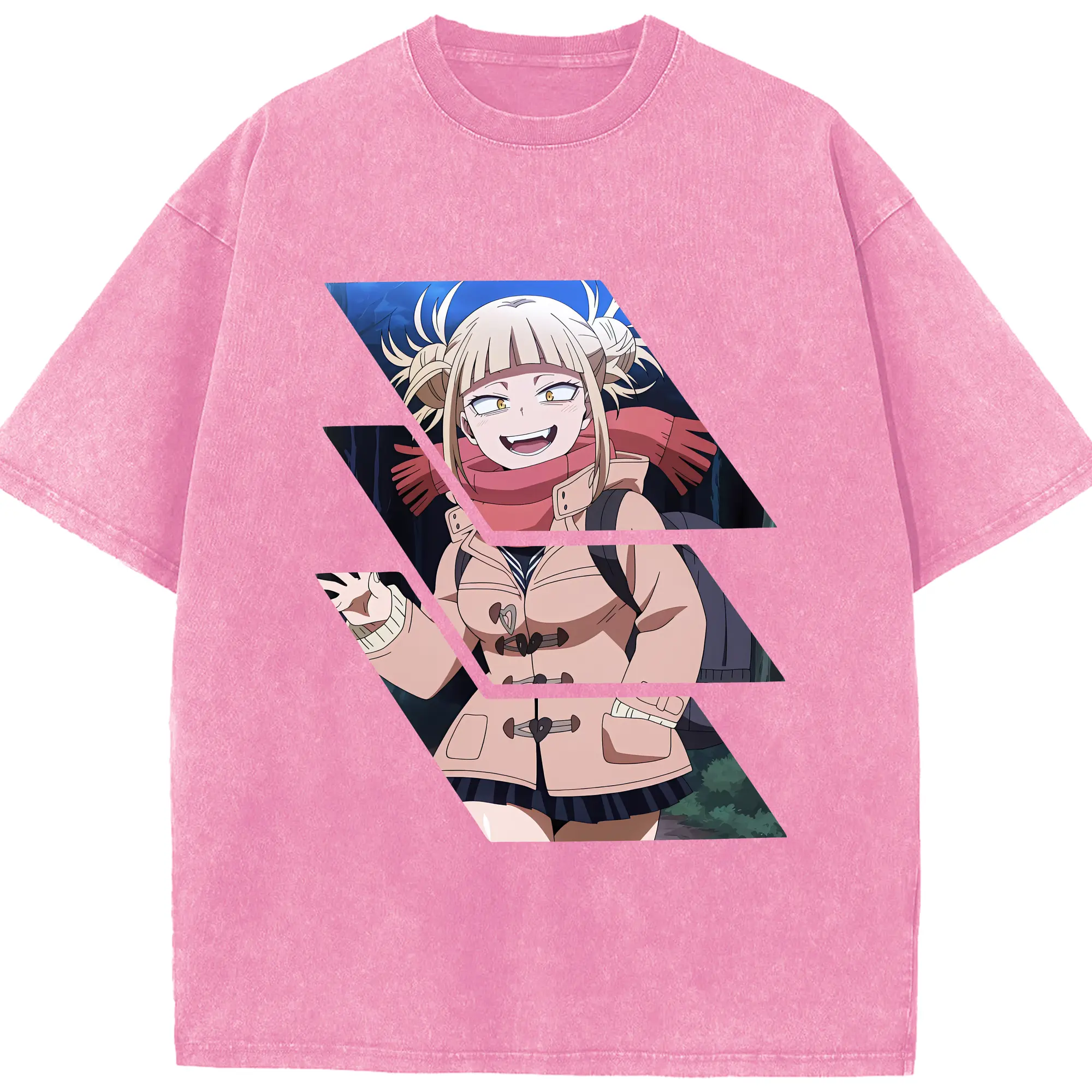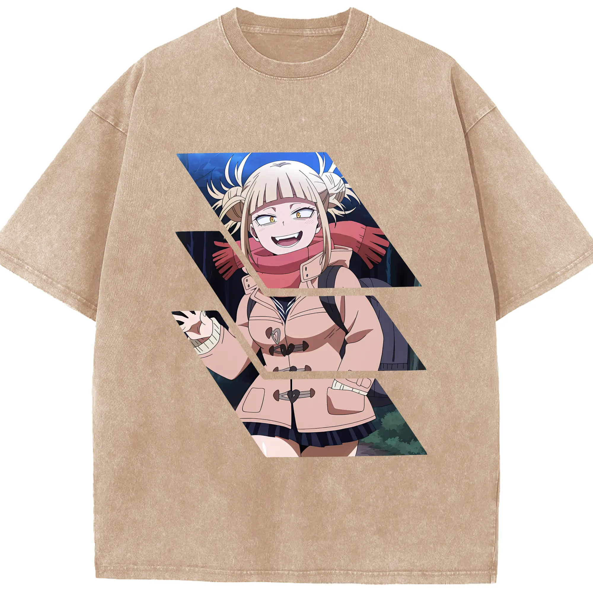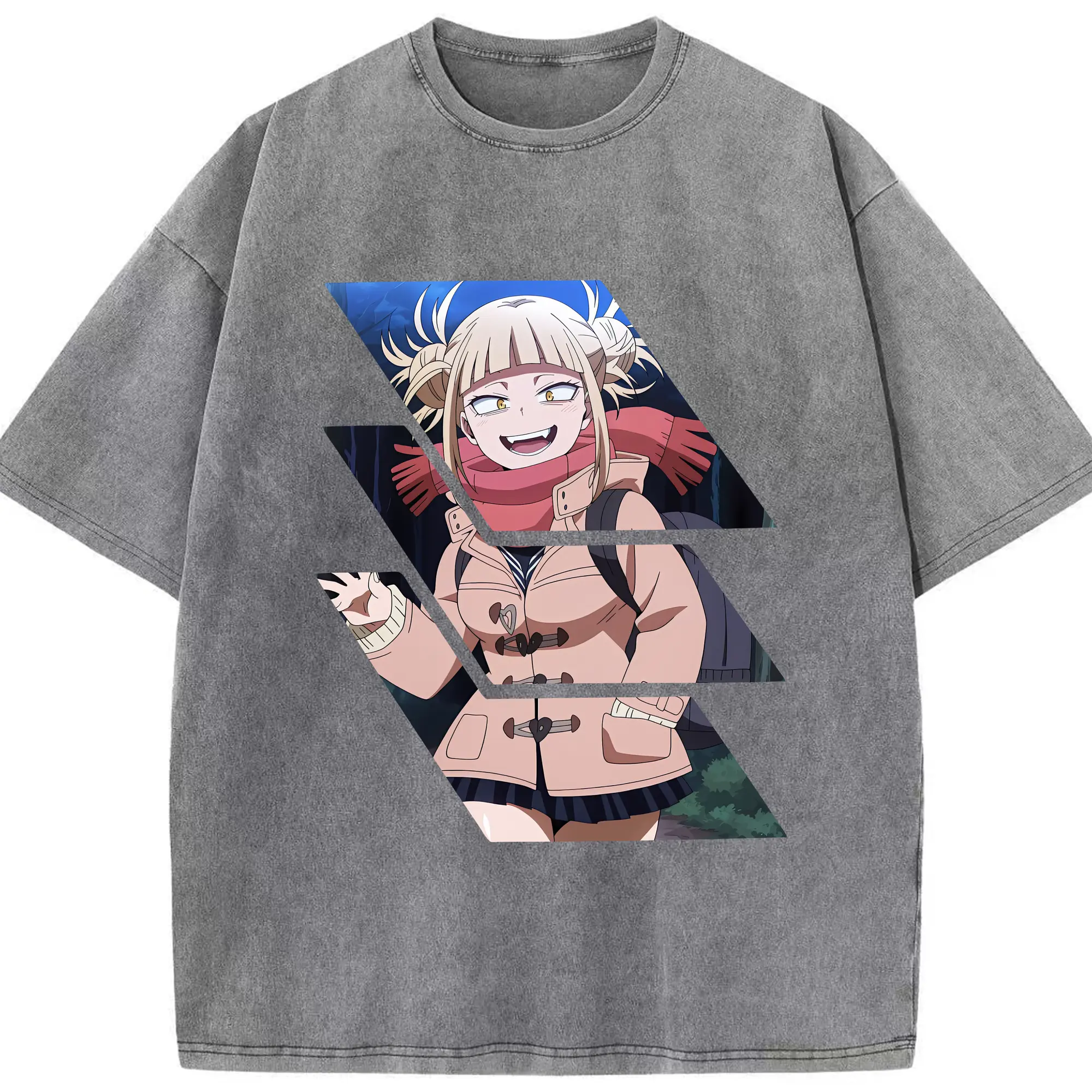僕のヒーローアカデミア グッズ,トガヒミコ - 綿100% ヴィンテージ風 半袖Tシャツ ・ 背面プリント ・ 柔らか肌触り ・ 通気性 快適 ・ スポーツ カジュアル 外出用