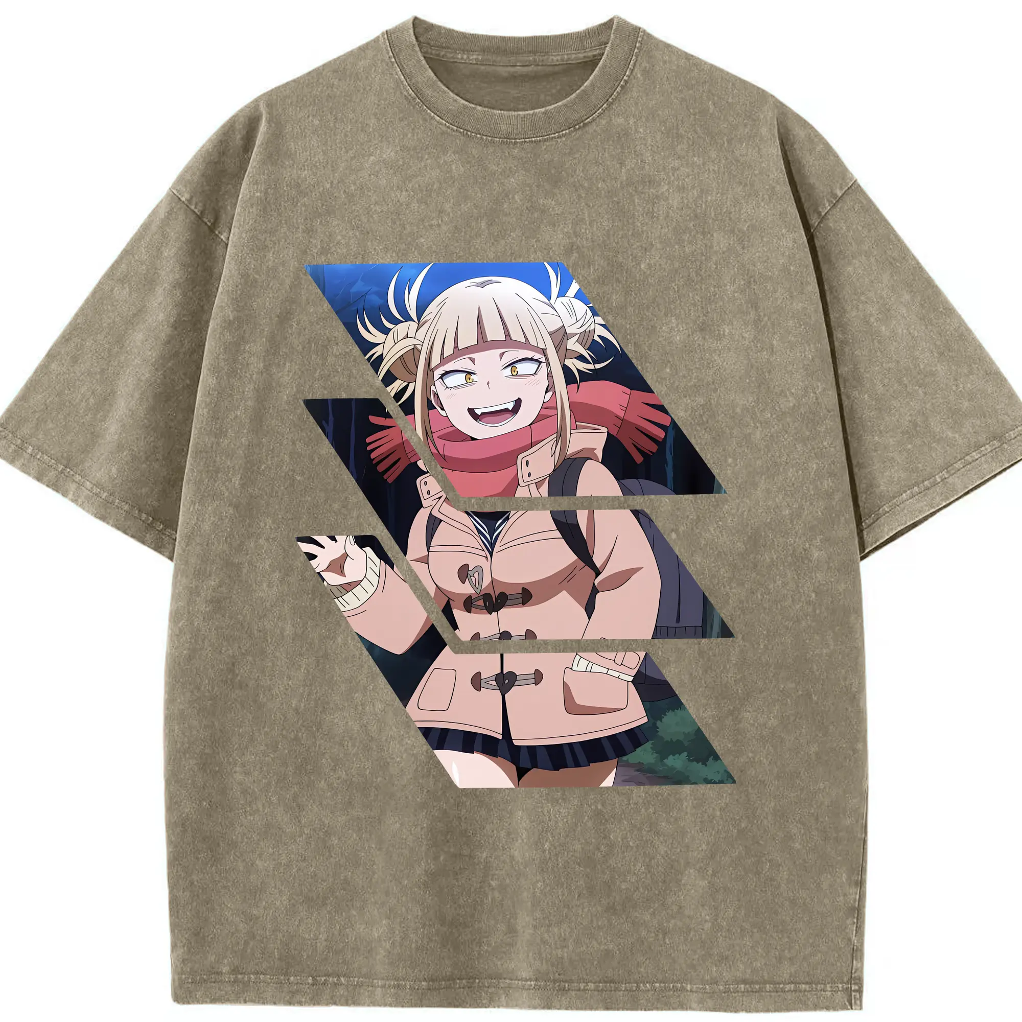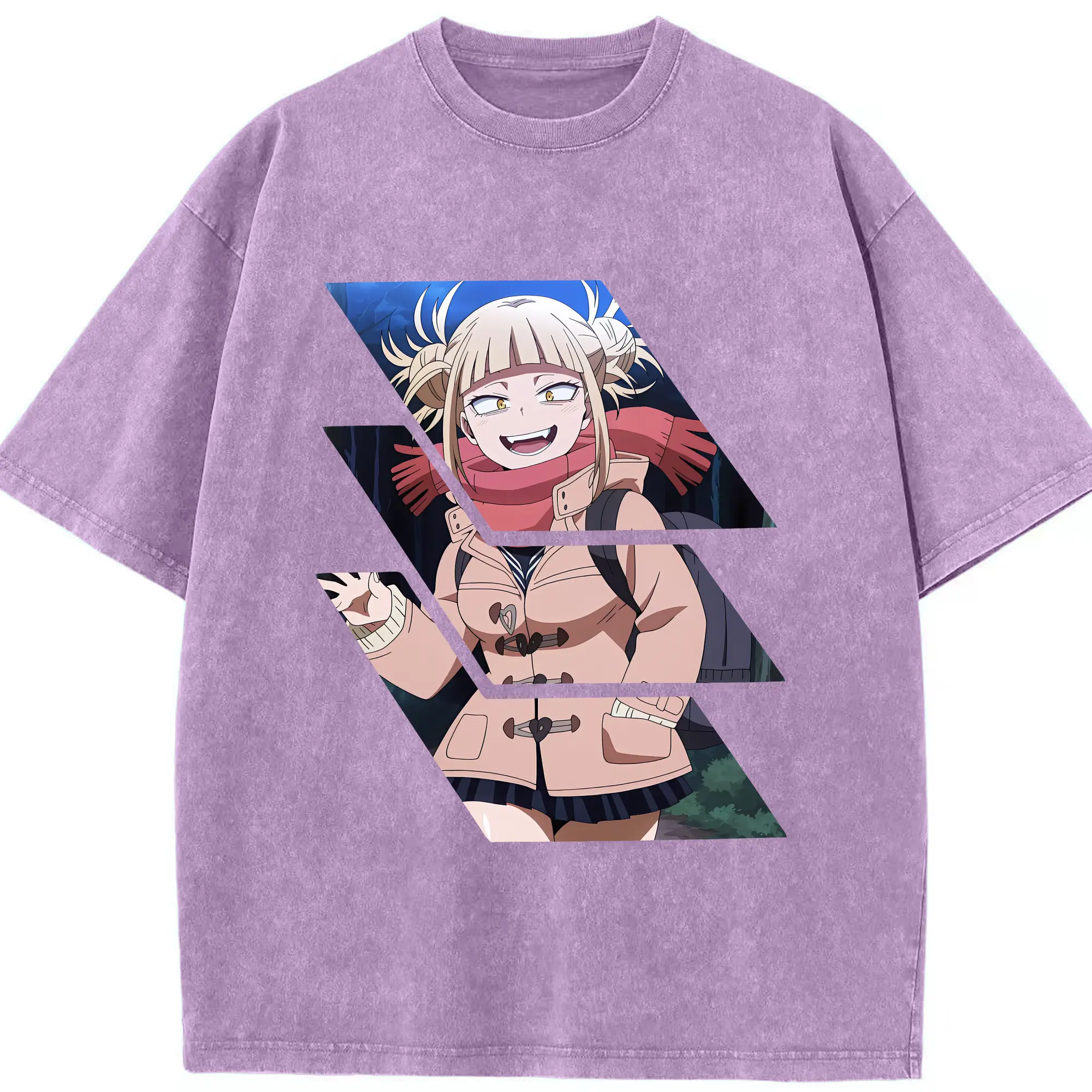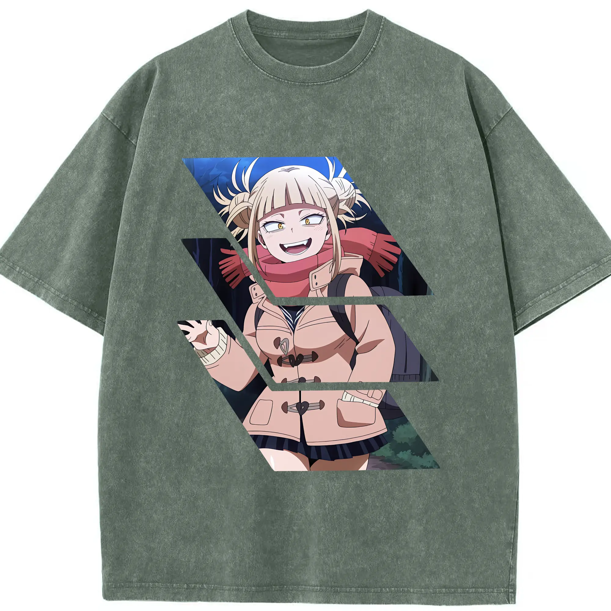 僕のヒーローアカデミア グッズ,トガヒミコ - 綿100% ヴィンテージ風 半袖Tシャツ ・ 背面プリント ・ 柔らか肌触り ・ 通気性 快適 ・ スポーツ カジュアル 外出用