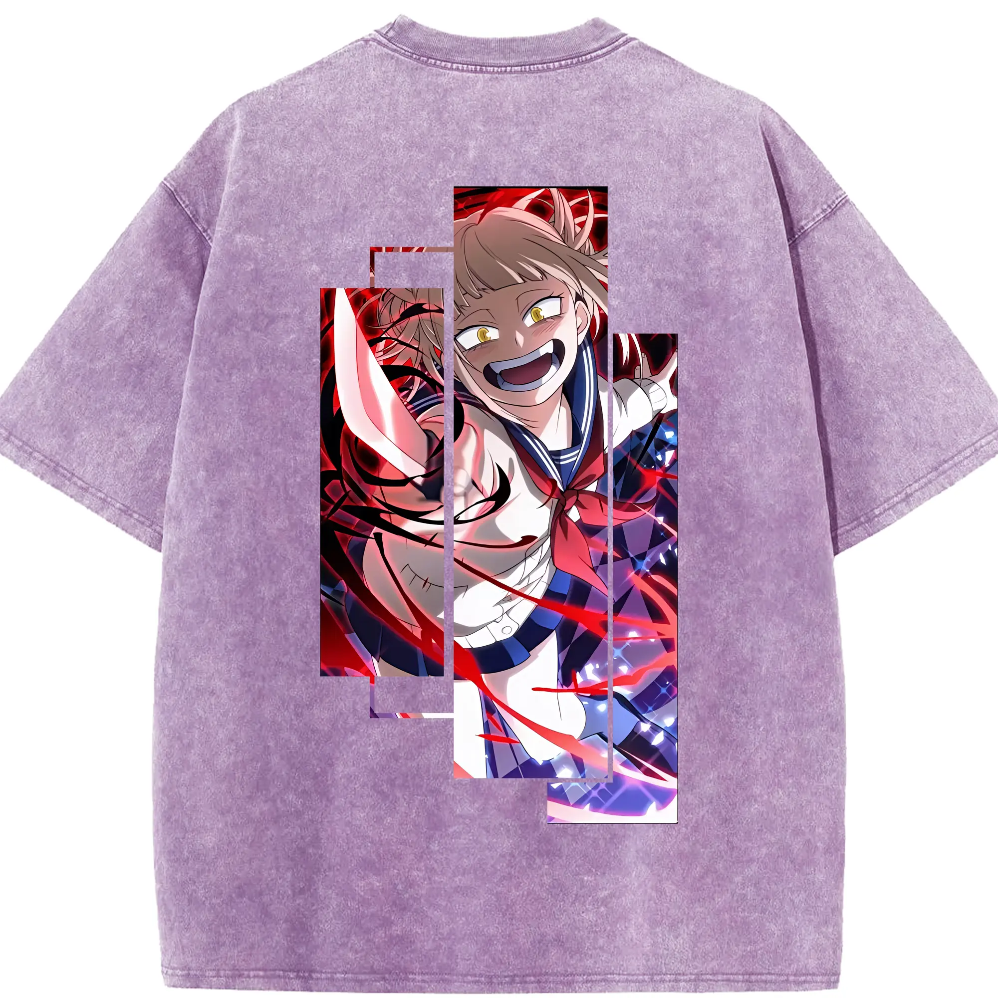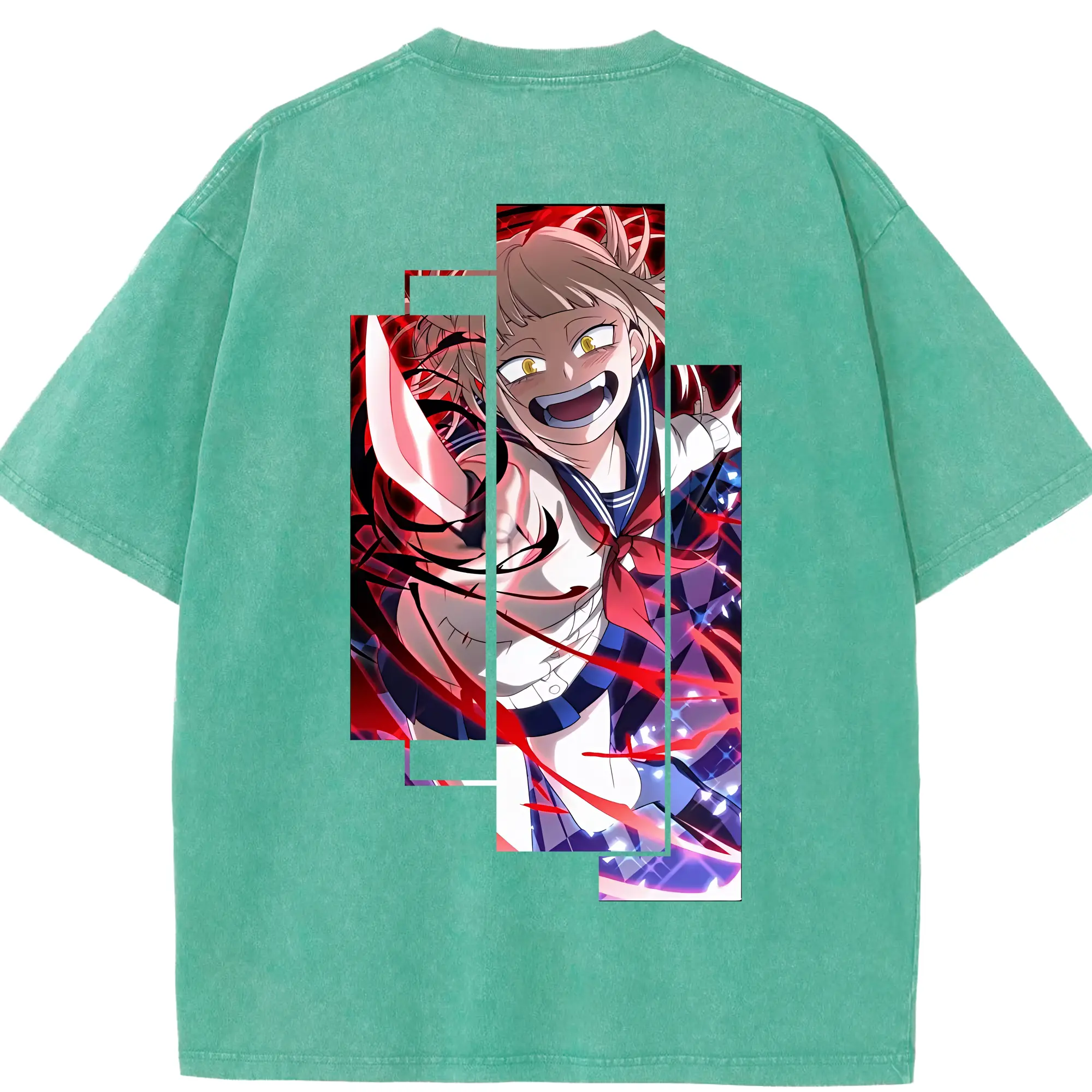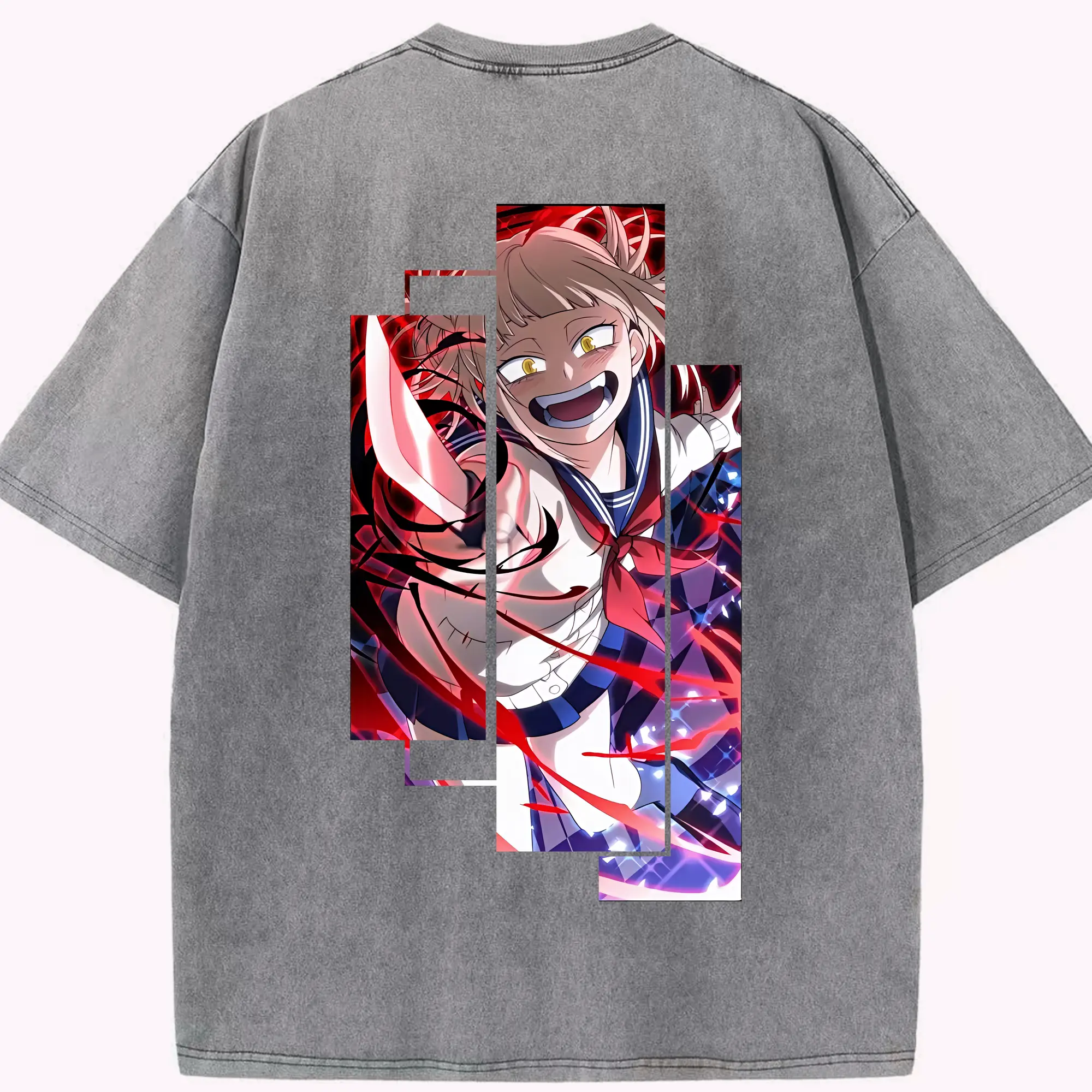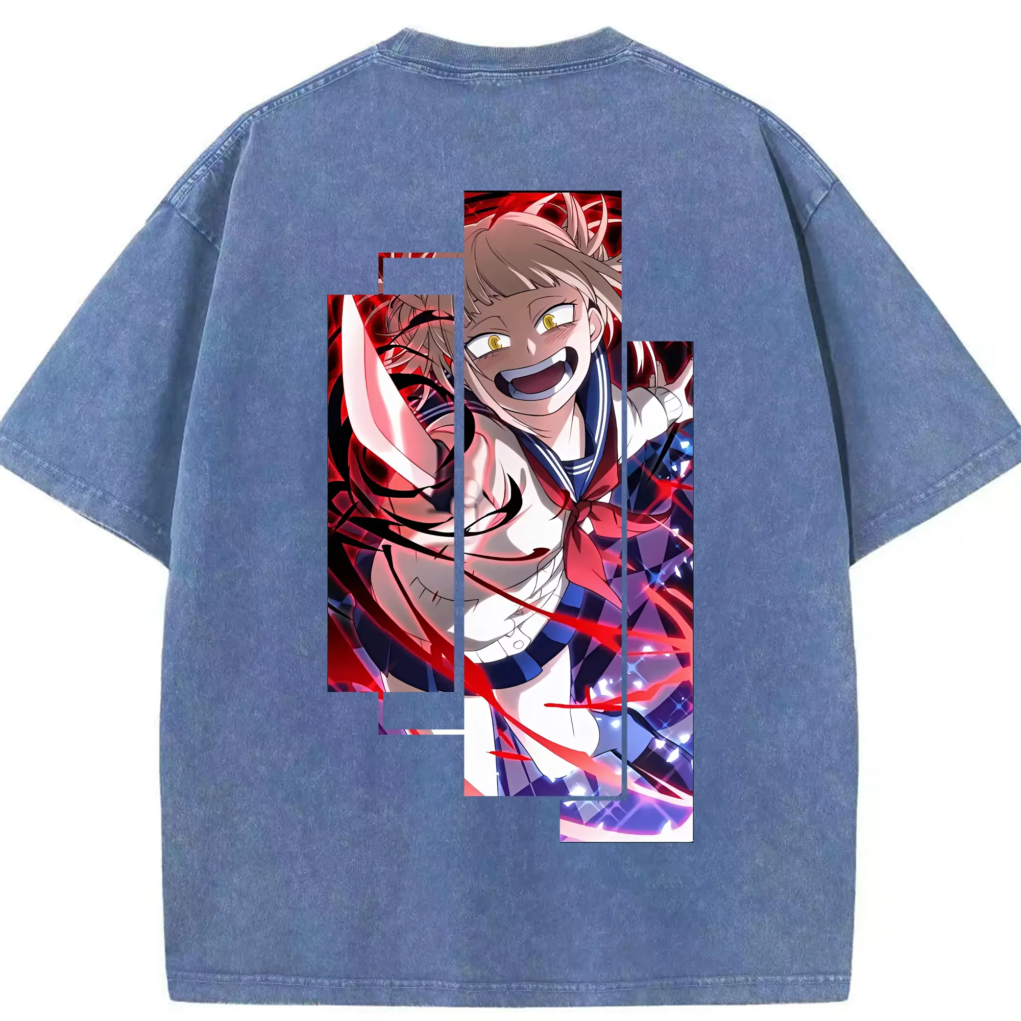 僕のヒーローアカデミア グッズ,トガヒミコ - 綿100% ヴィンテージ風 半袖Tシャツ ・ フロントプリント ・ 柔らか肌触り ・ 通気性 快適 ・ スポーツ カジュアル 外出用