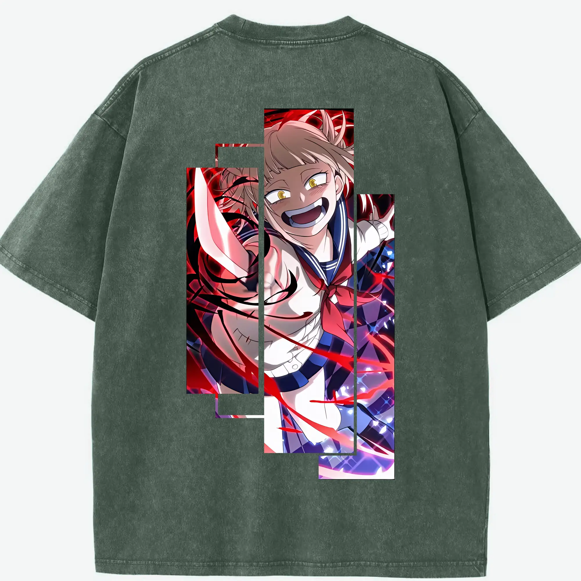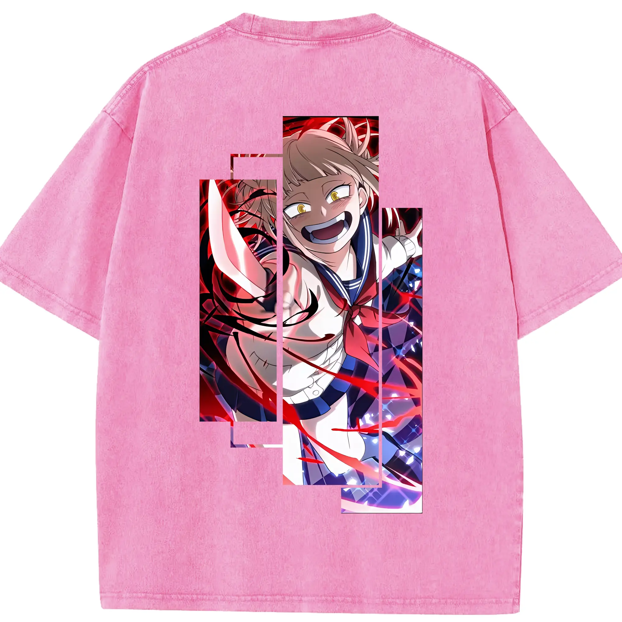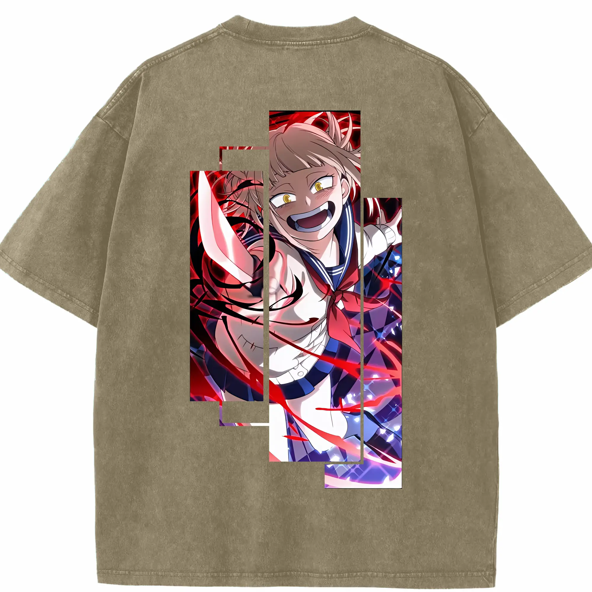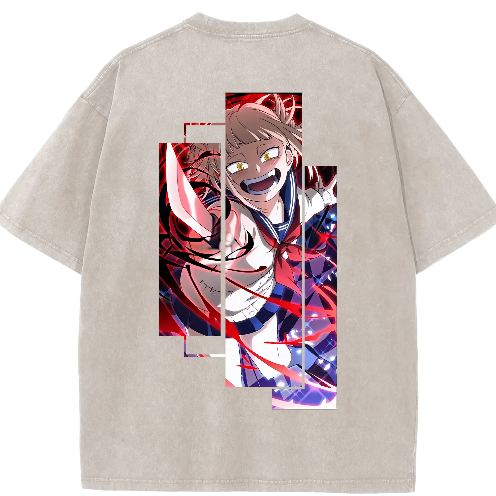 僕のヒーローアカデミア グッズ,トガヒミコ - 綿100% ヴィンテージ風 半袖Tシャツ ・ フロントプリント ・ 柔らか肌触り ・ 通気性 快適 ・ スポーツ カジュアル 外出用