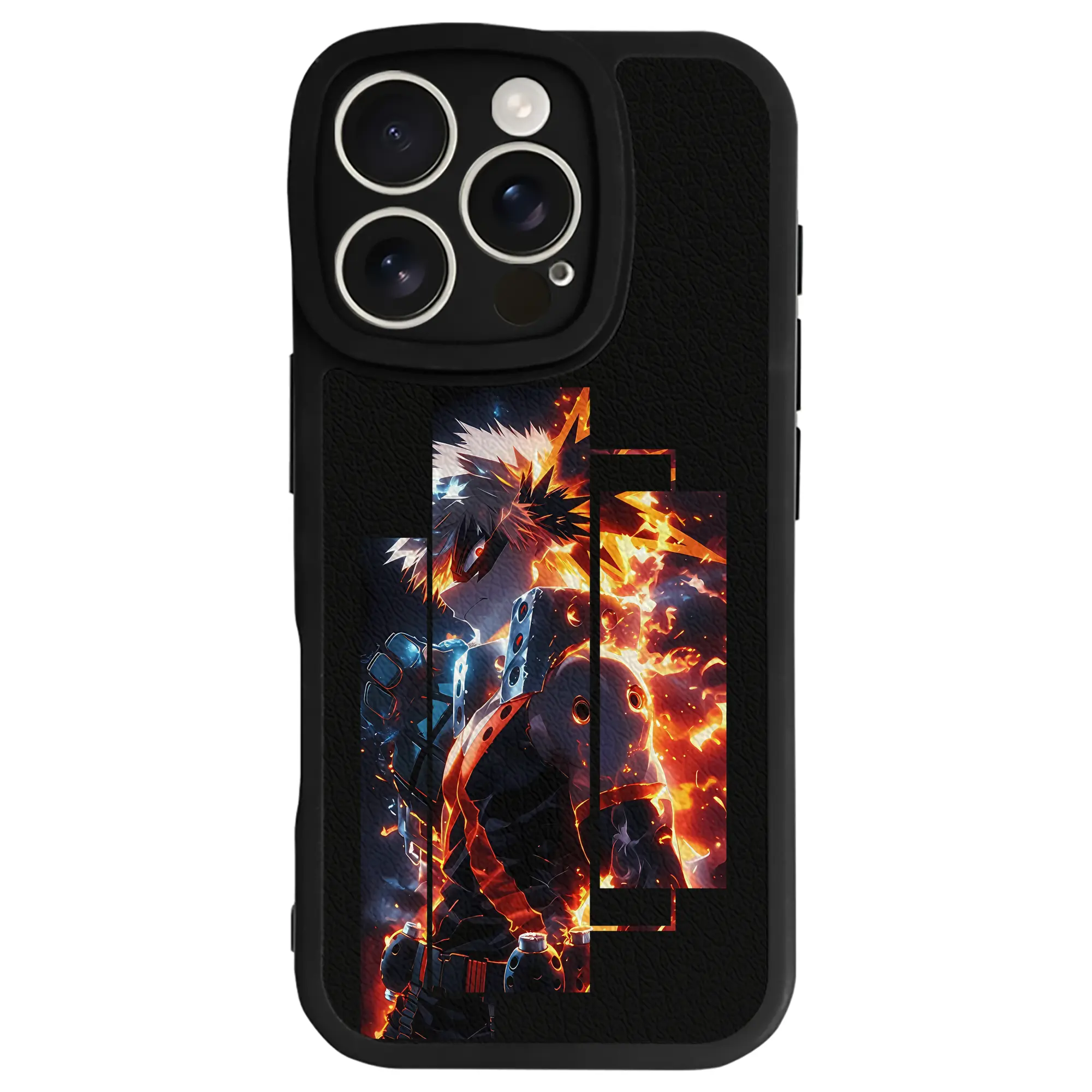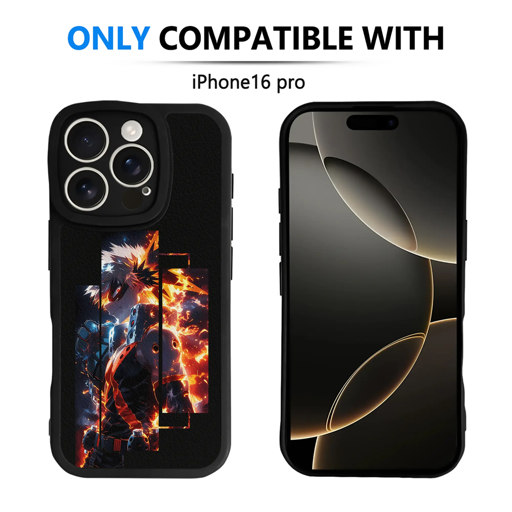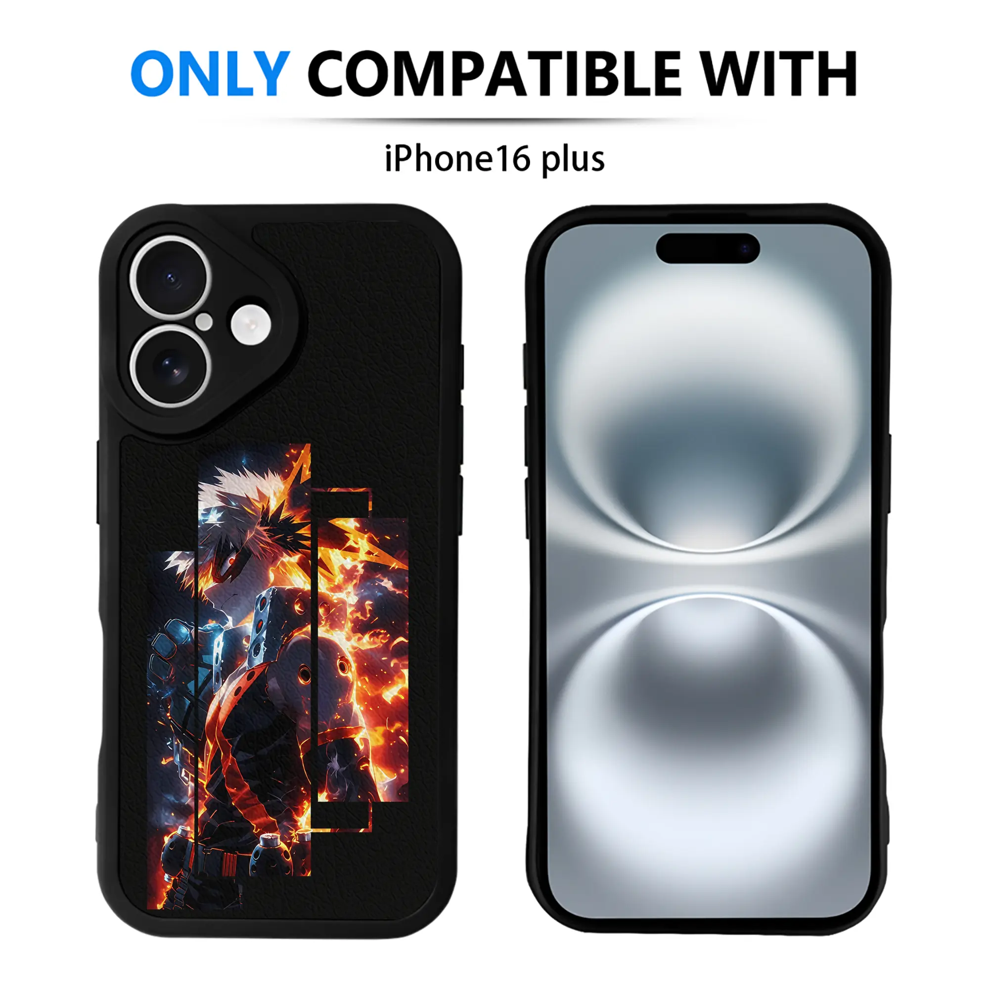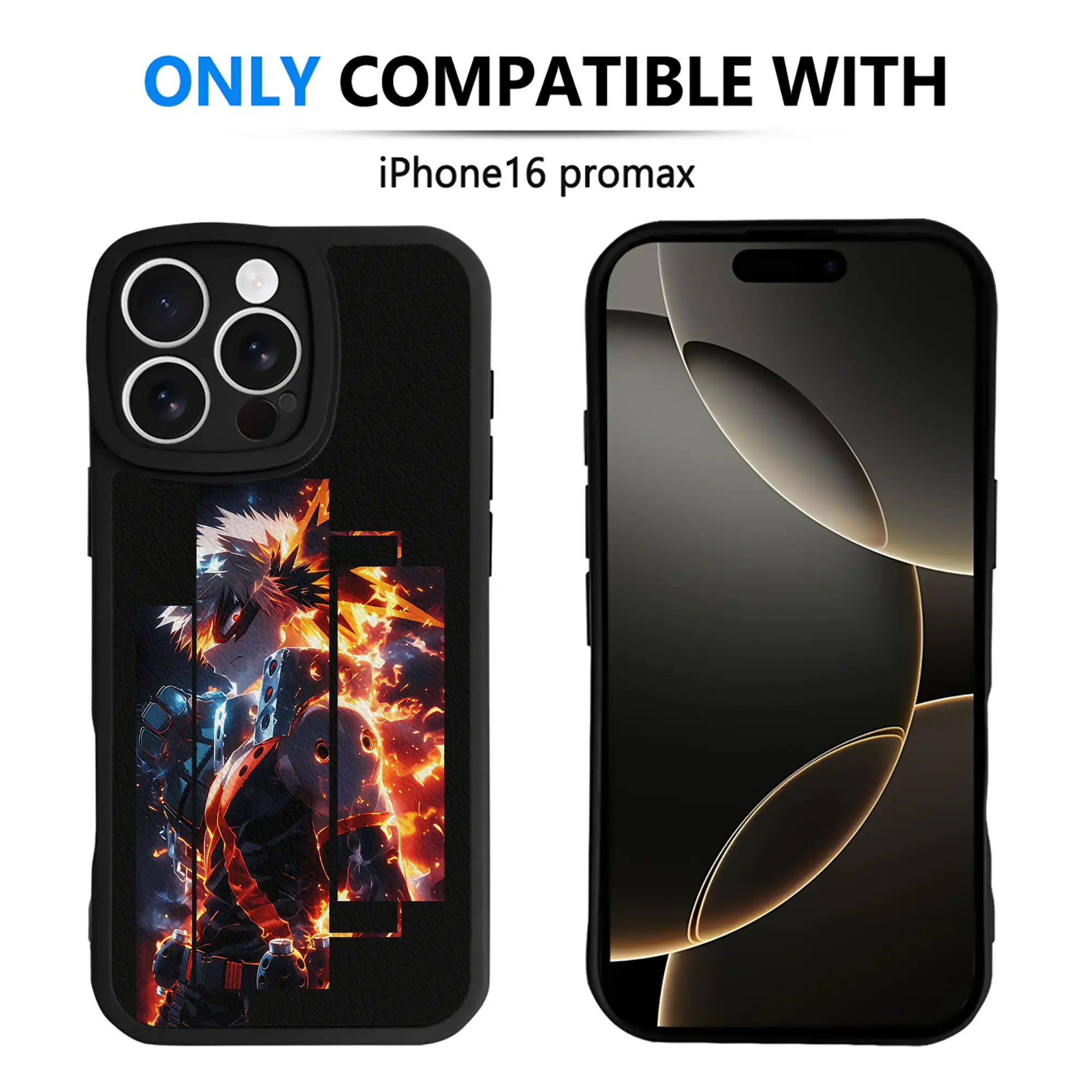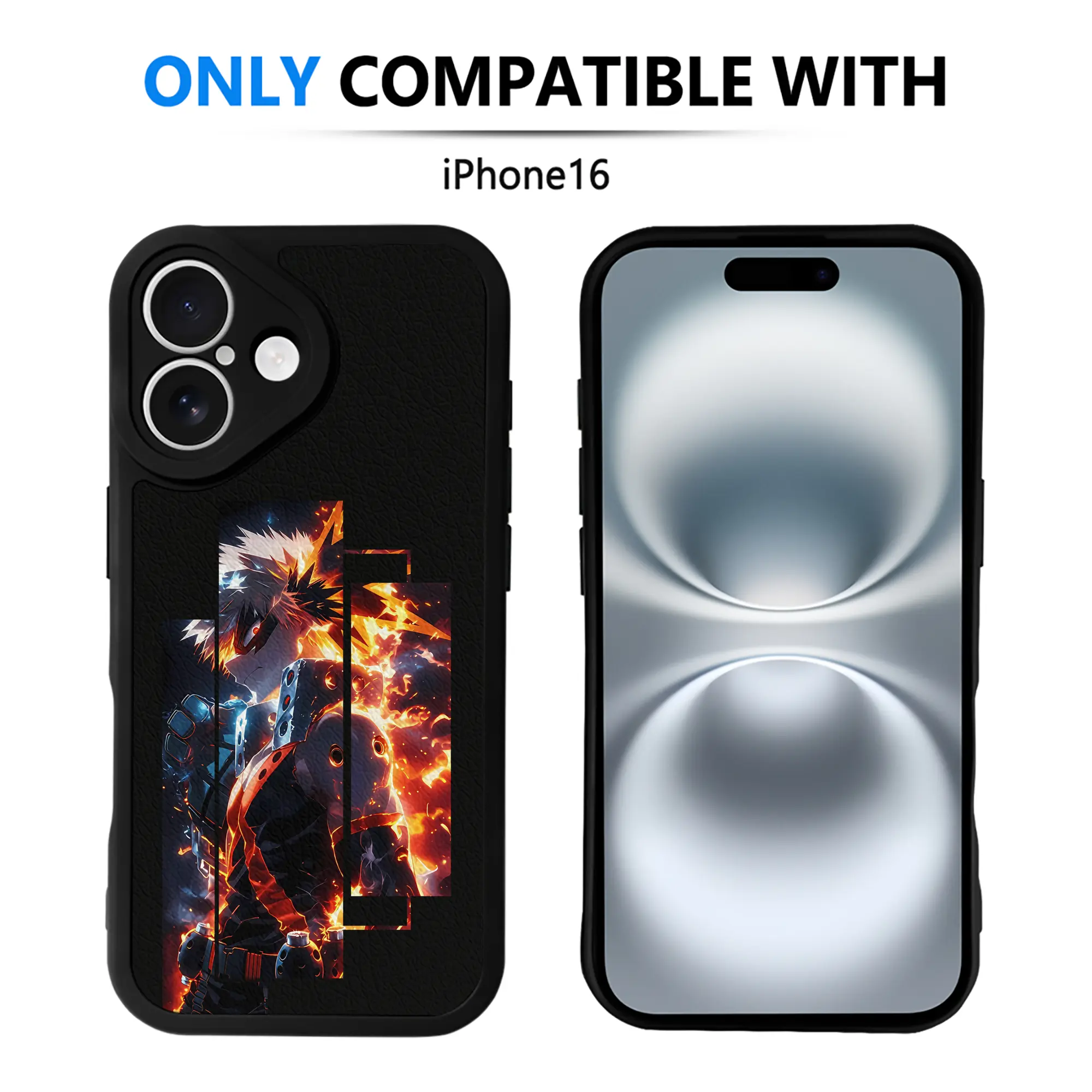 僕のヒーローアカデミア グッズ,爆豪勝己 - IPhone 16シリーズ対応 ・ シリコンスマホケース ・ レザー調 ・ 高精度フィット ・ 耐衝撃 ・ ワイヤレス充電対応 ・ 精密カット