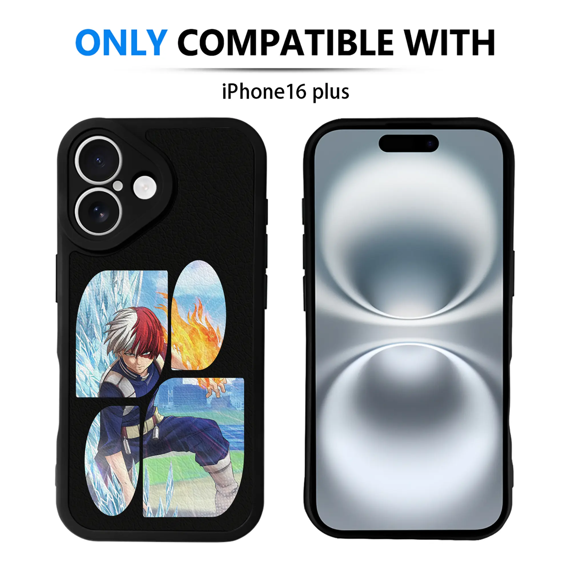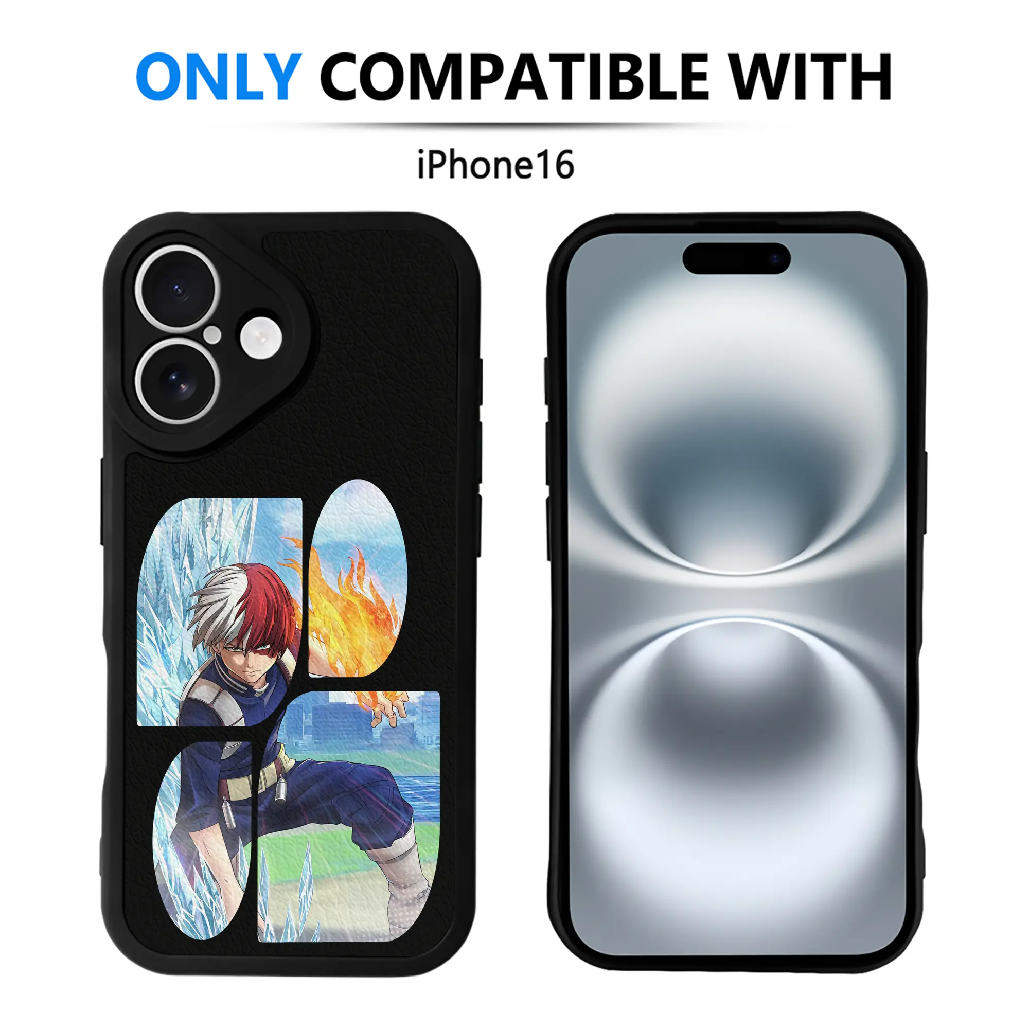 僕のヒーローアカデミア グッズ,轟焦凍 - IPhone 16シリーズ対応 ・ シリコンスマホケース ・ レザー調 ・ 高精度フィット ・ 耐衝撃 ・ ワイヤレス充電対応 ・ 精密カット