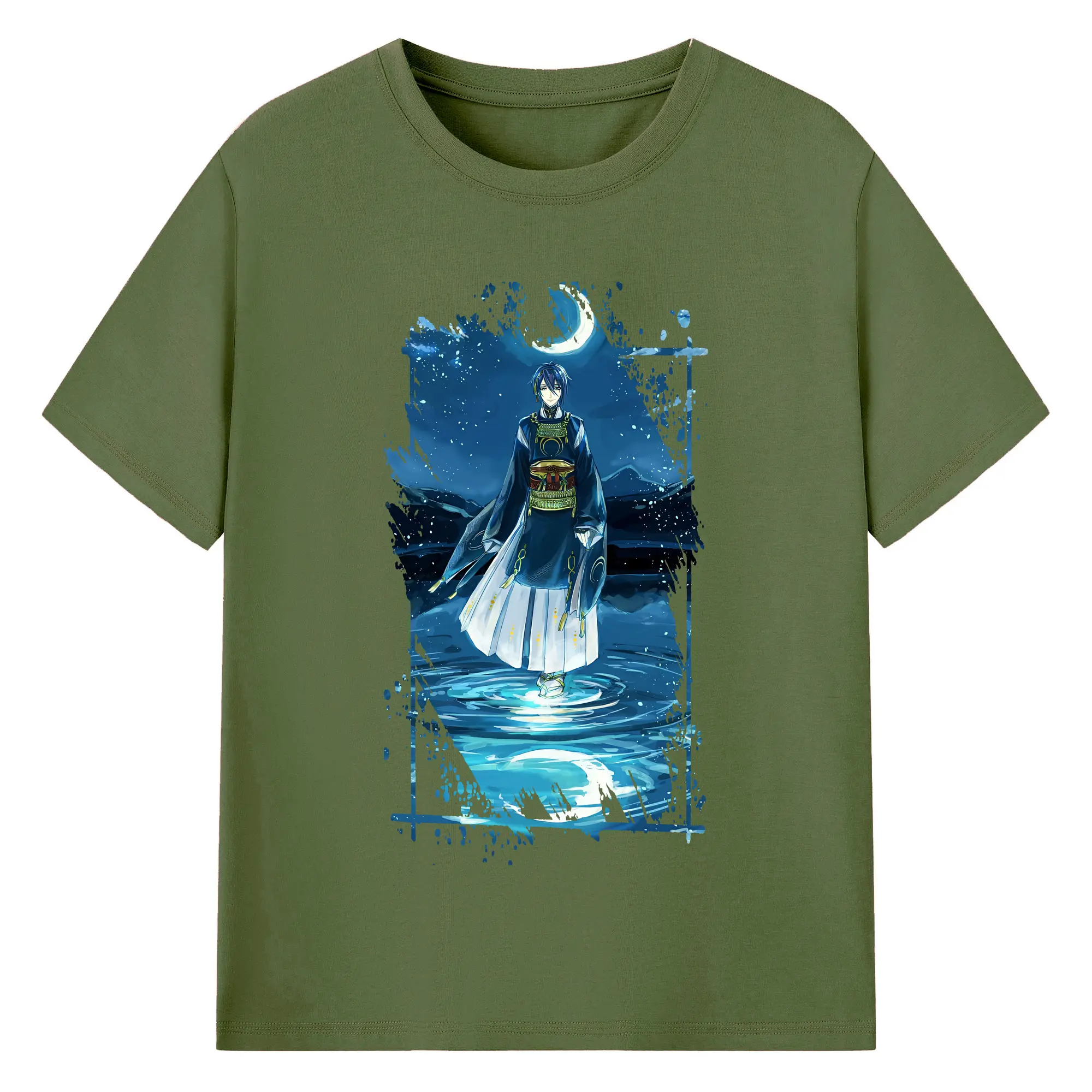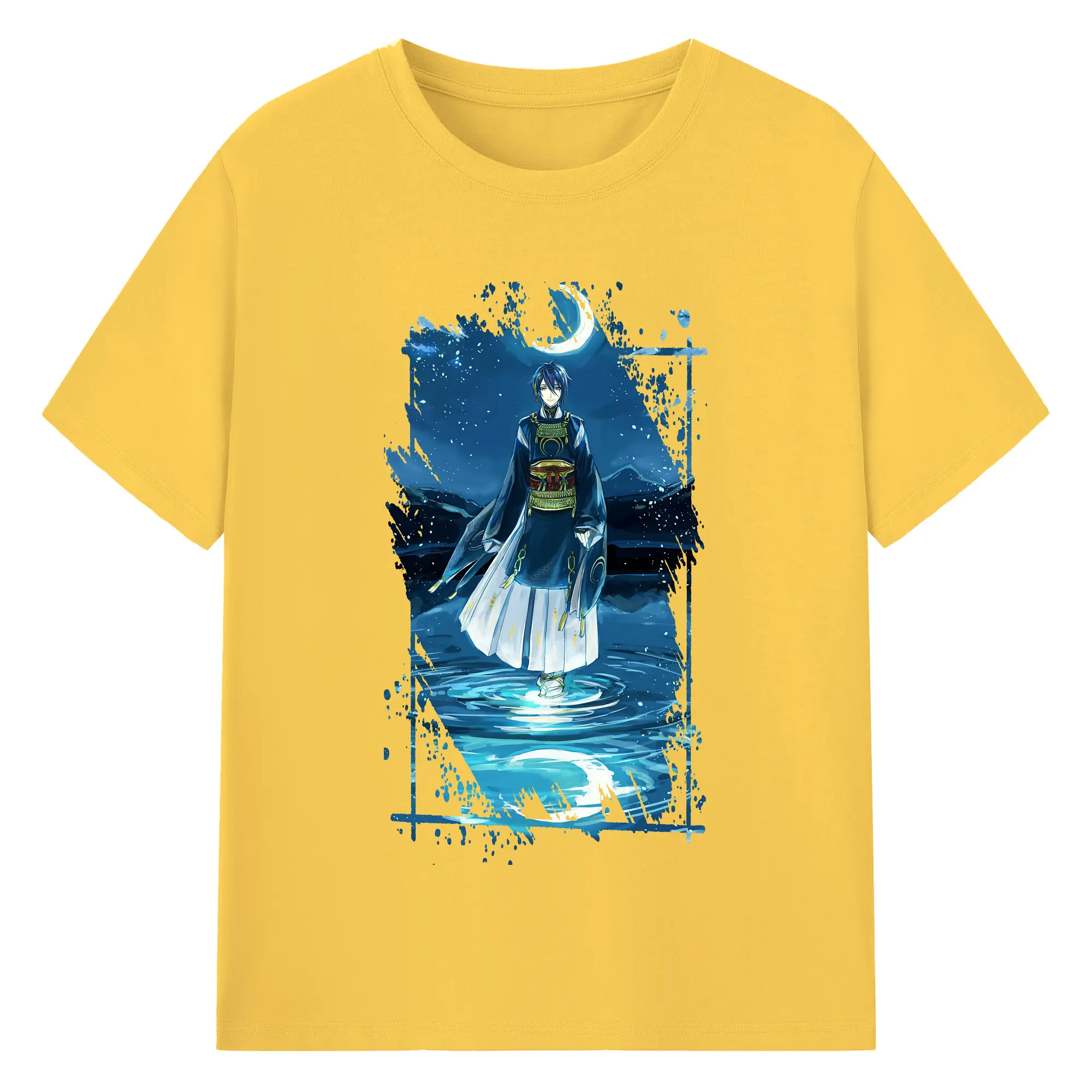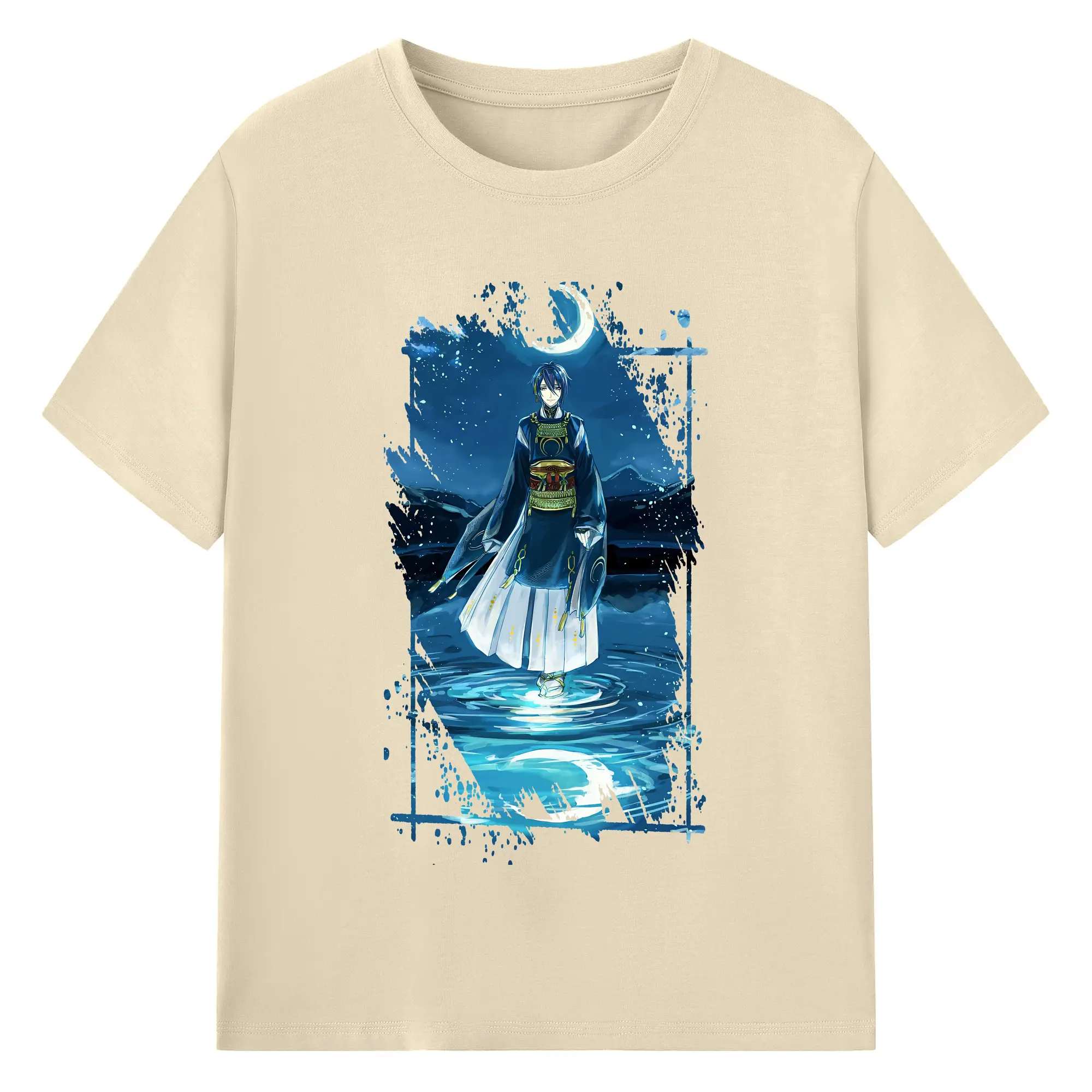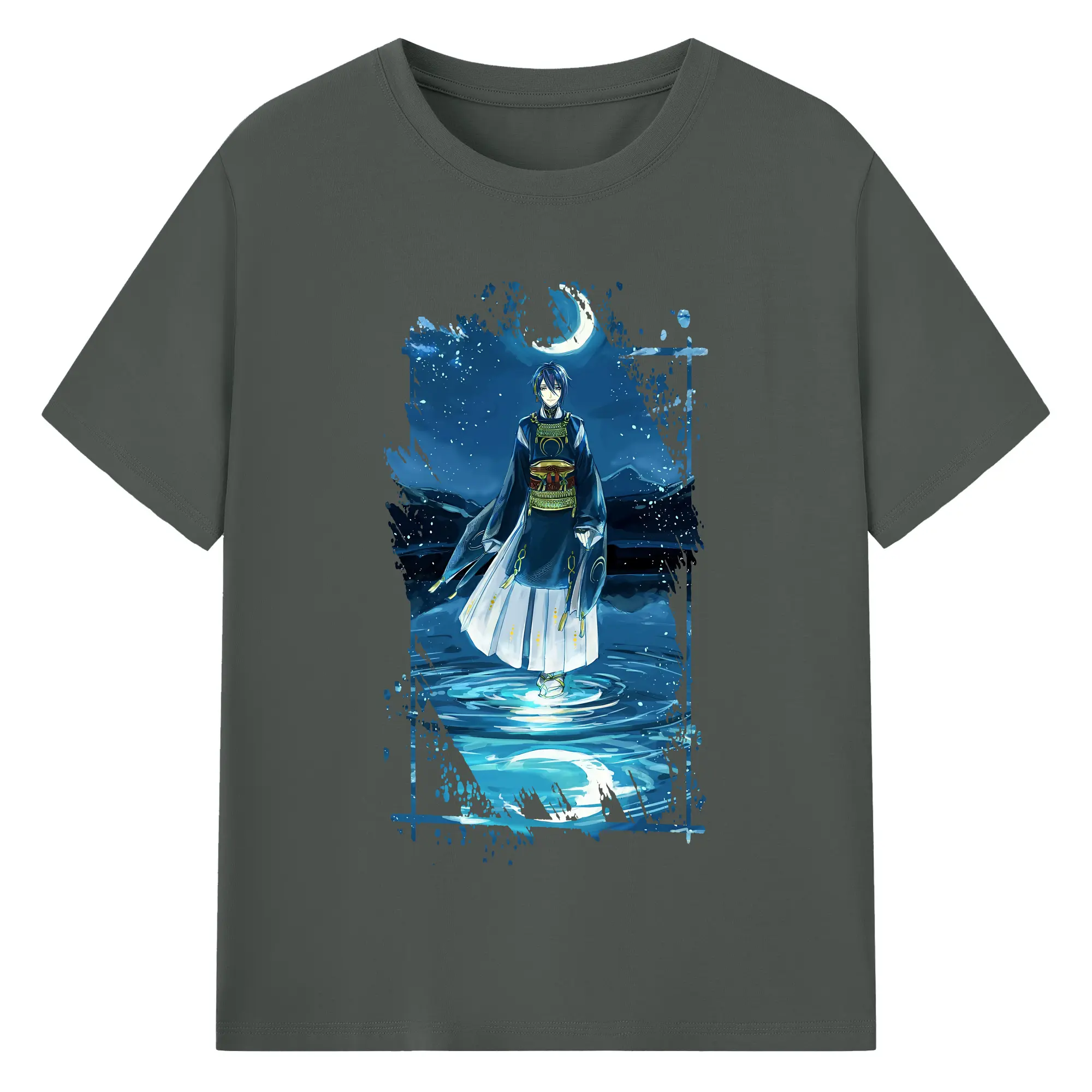 刀剣乱舞 グッズ,三日月宗近 - 綿100% ヴィンテージ風 半袖Tシャツ ・ フロントプリント ・ 柔らか肌触り ・ 通気性 快適 ・ スポーツ カジュアル 外出用