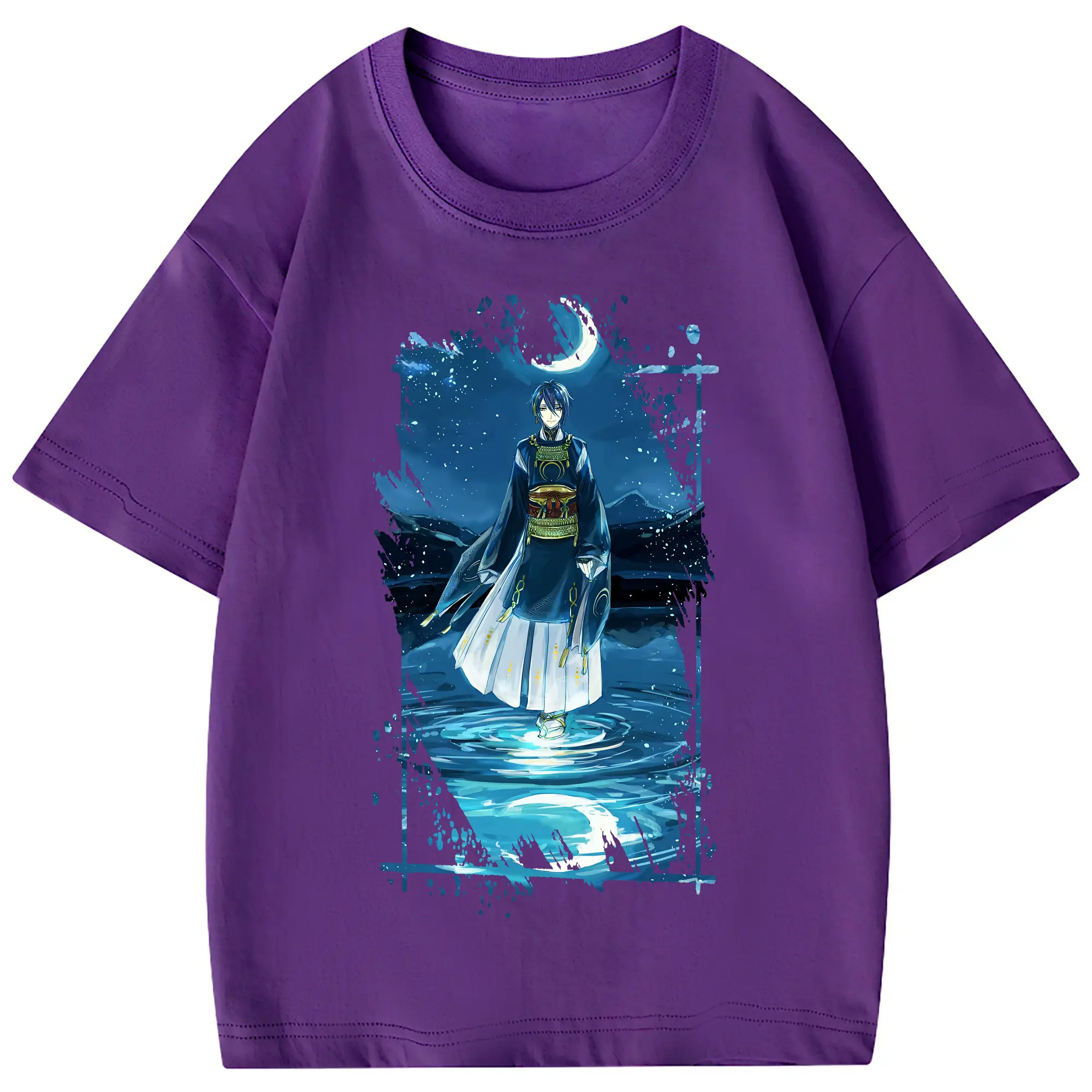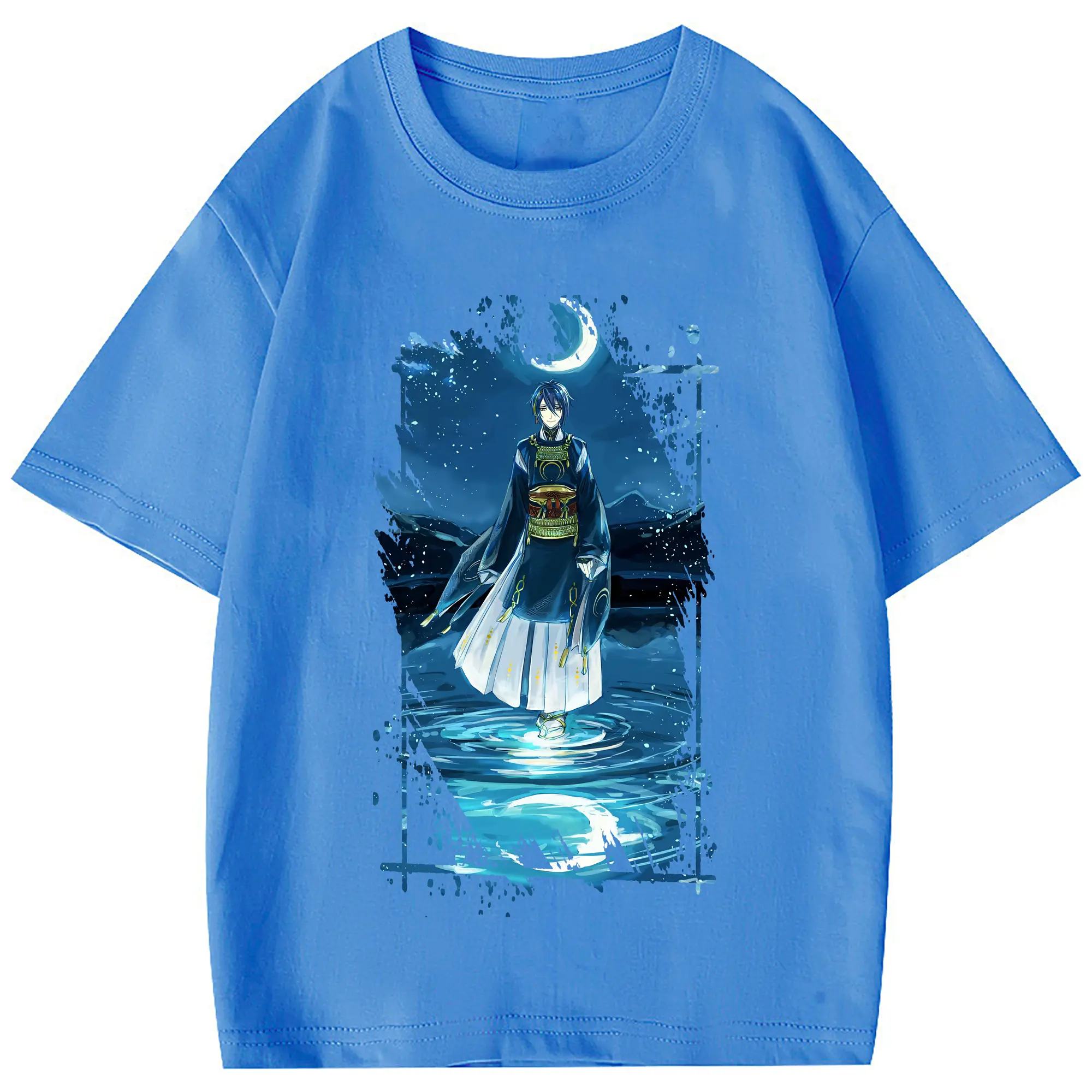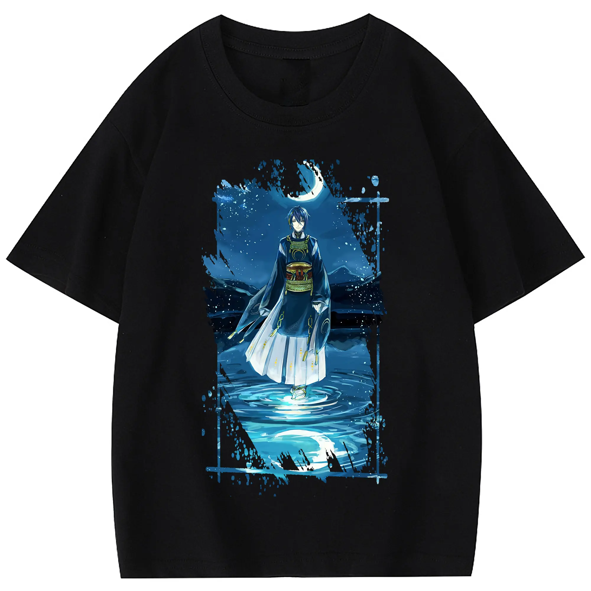 刀剣乱舞 グッズ,三日月宗近 - 綿100% 半袖Tシャツ ・ フロントプリント ・ 快適 通気性 ・ 日常使い 散歩 スポーツ用