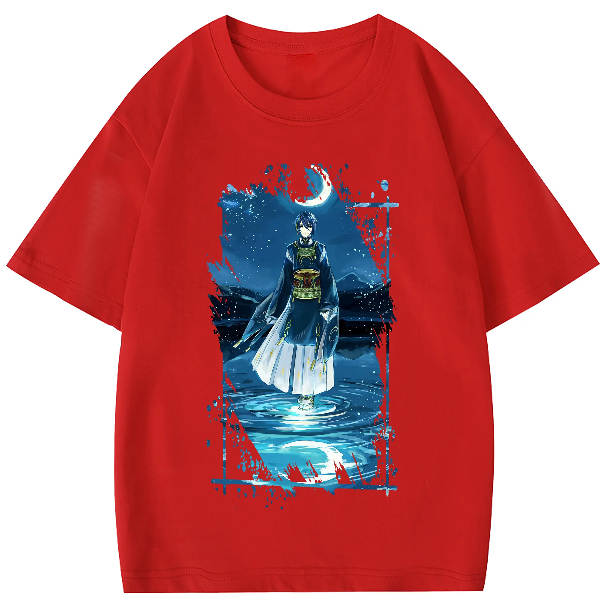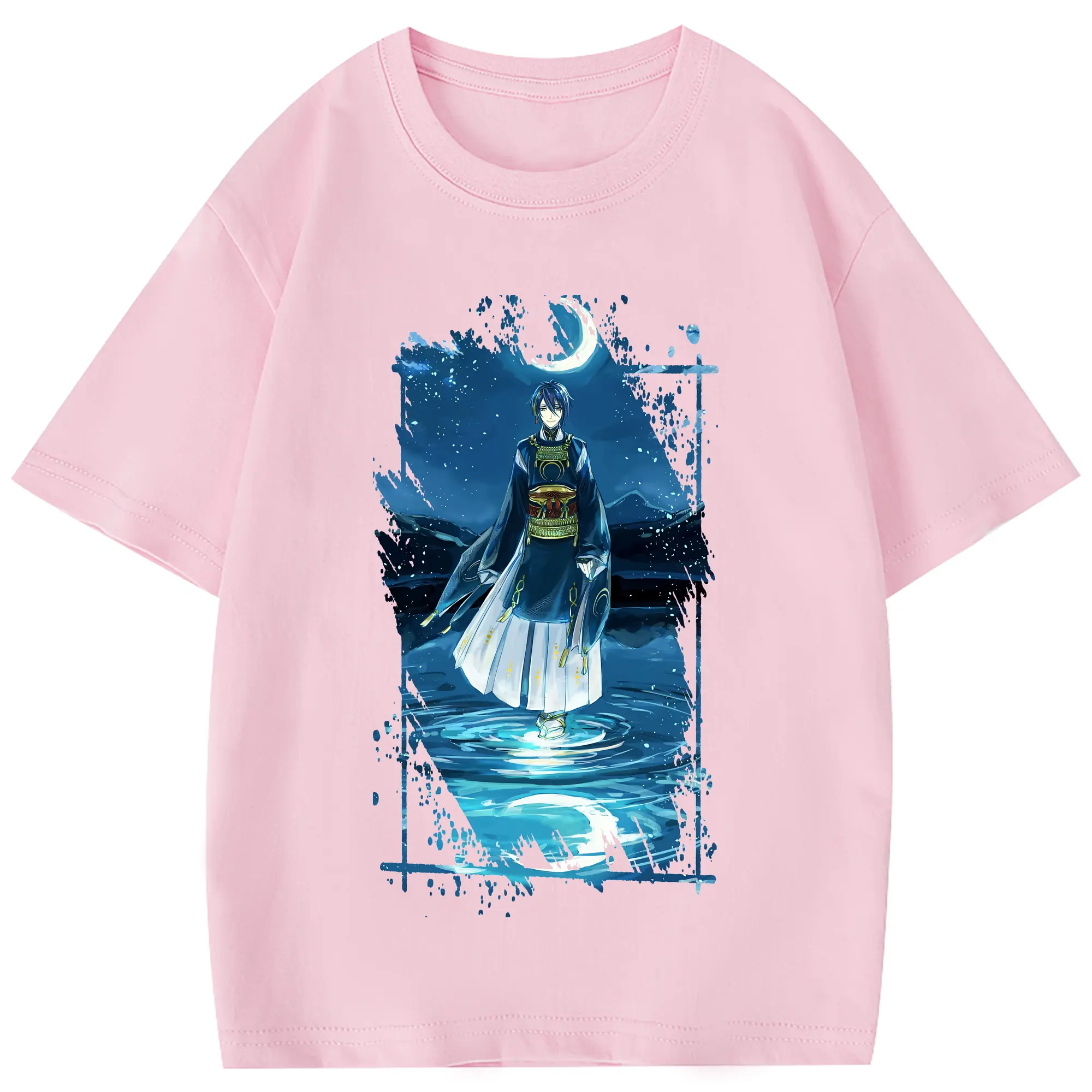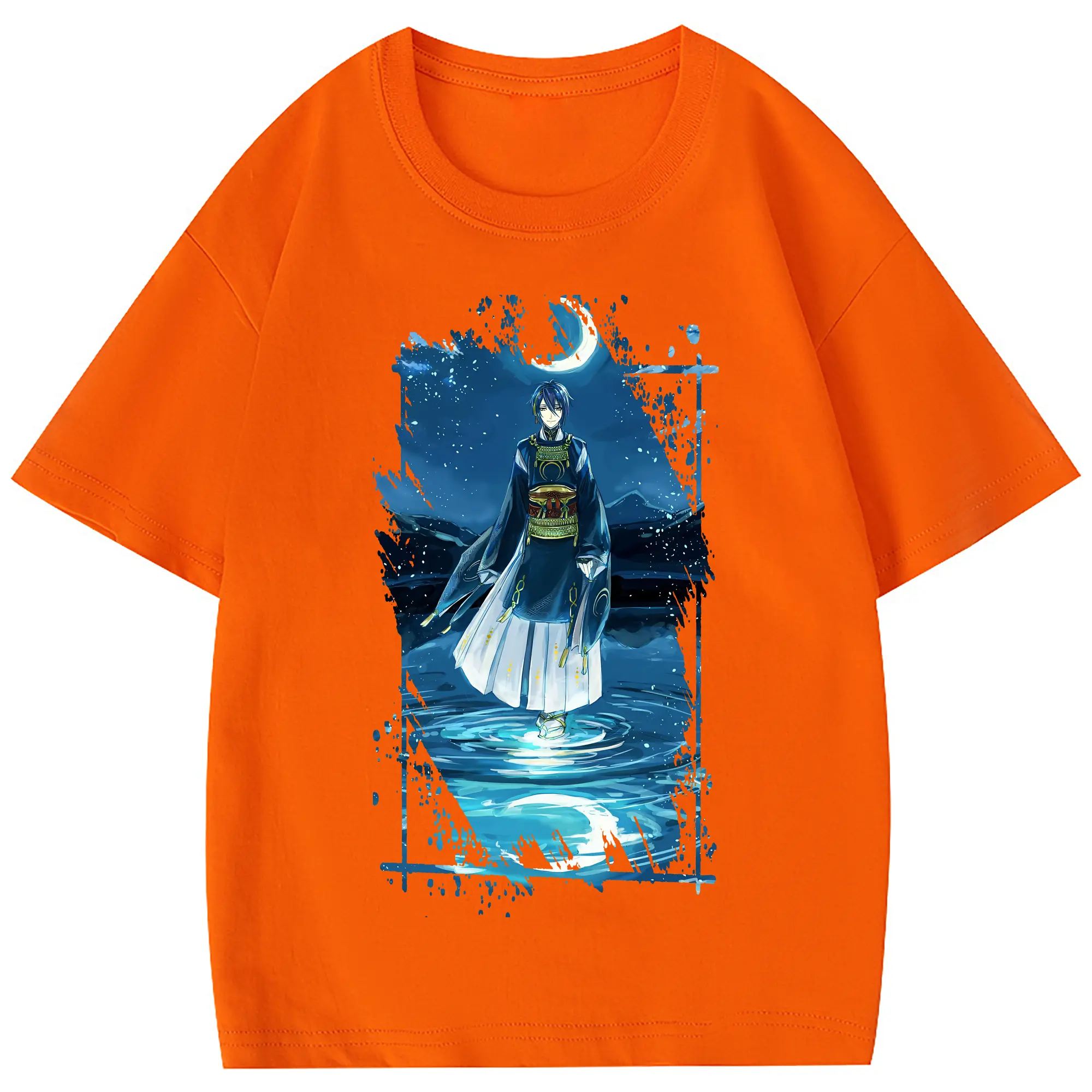 刀剣乱舞 グッズ,三日月宗近 - 綿100% 半袖Tシャツ ・ フロントプリント ・ 快適 通気性 ・ 日常使い 散歩 スポーツ用