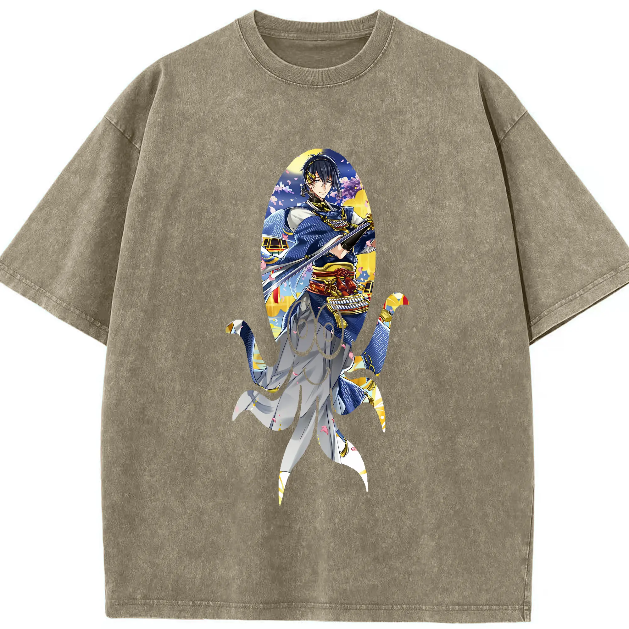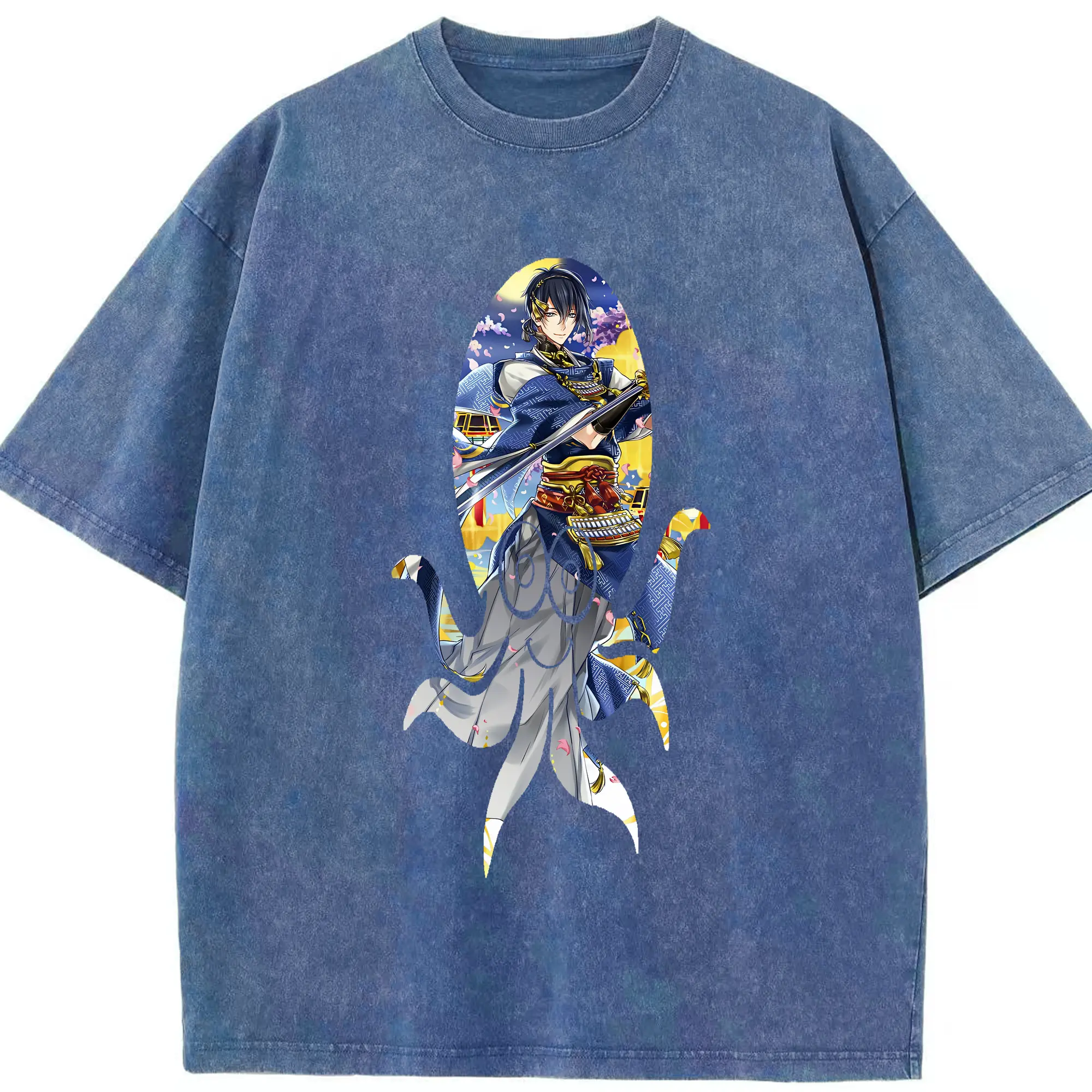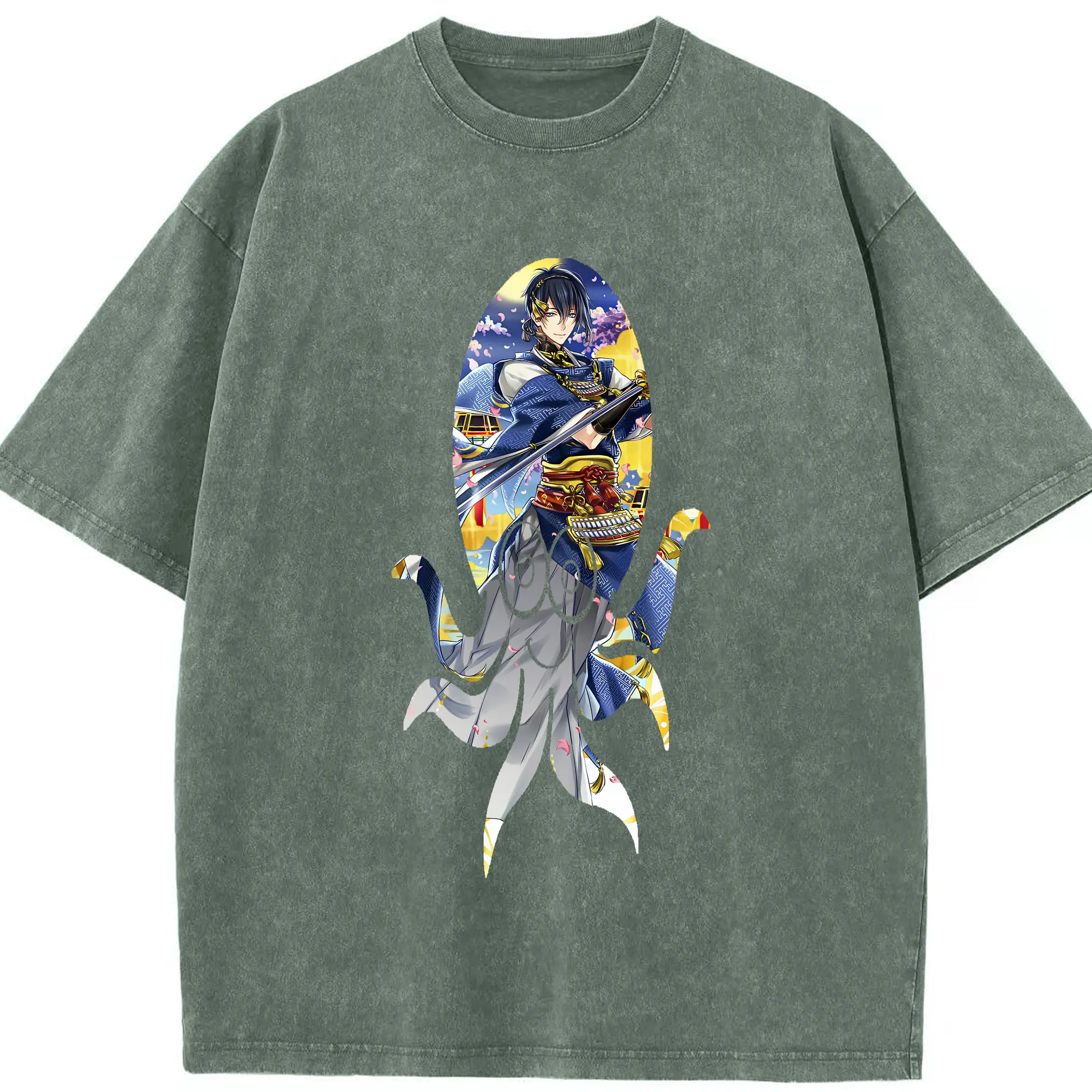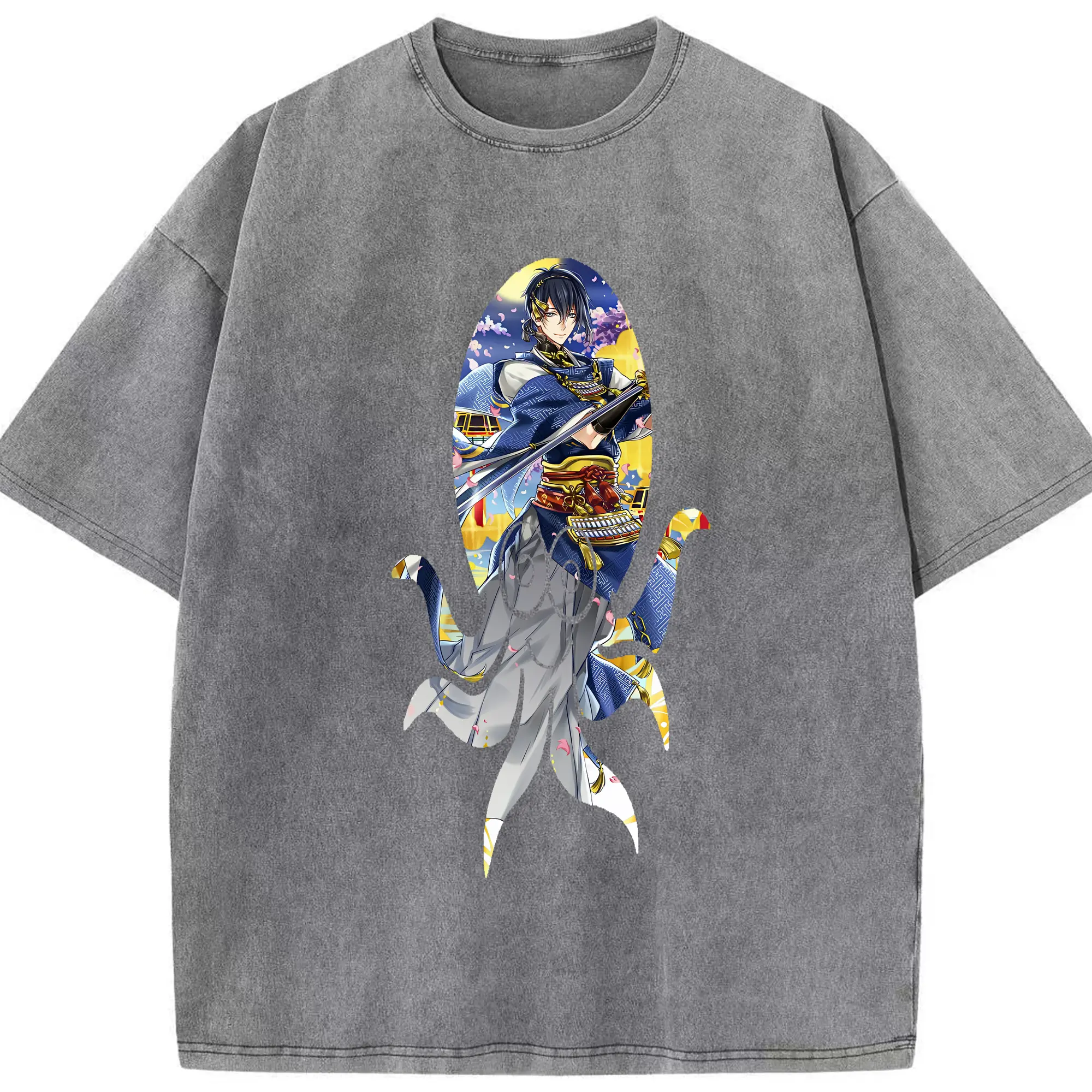 刀剣乱舞 グッズ,三日月宗近 - 綿100% ヴィンテージ風 半袖Tシャツ ・ 背面プリント ・ 柔らか肌触り ・ 通気性 快適 ・ スポーツ カジュアル 外出用