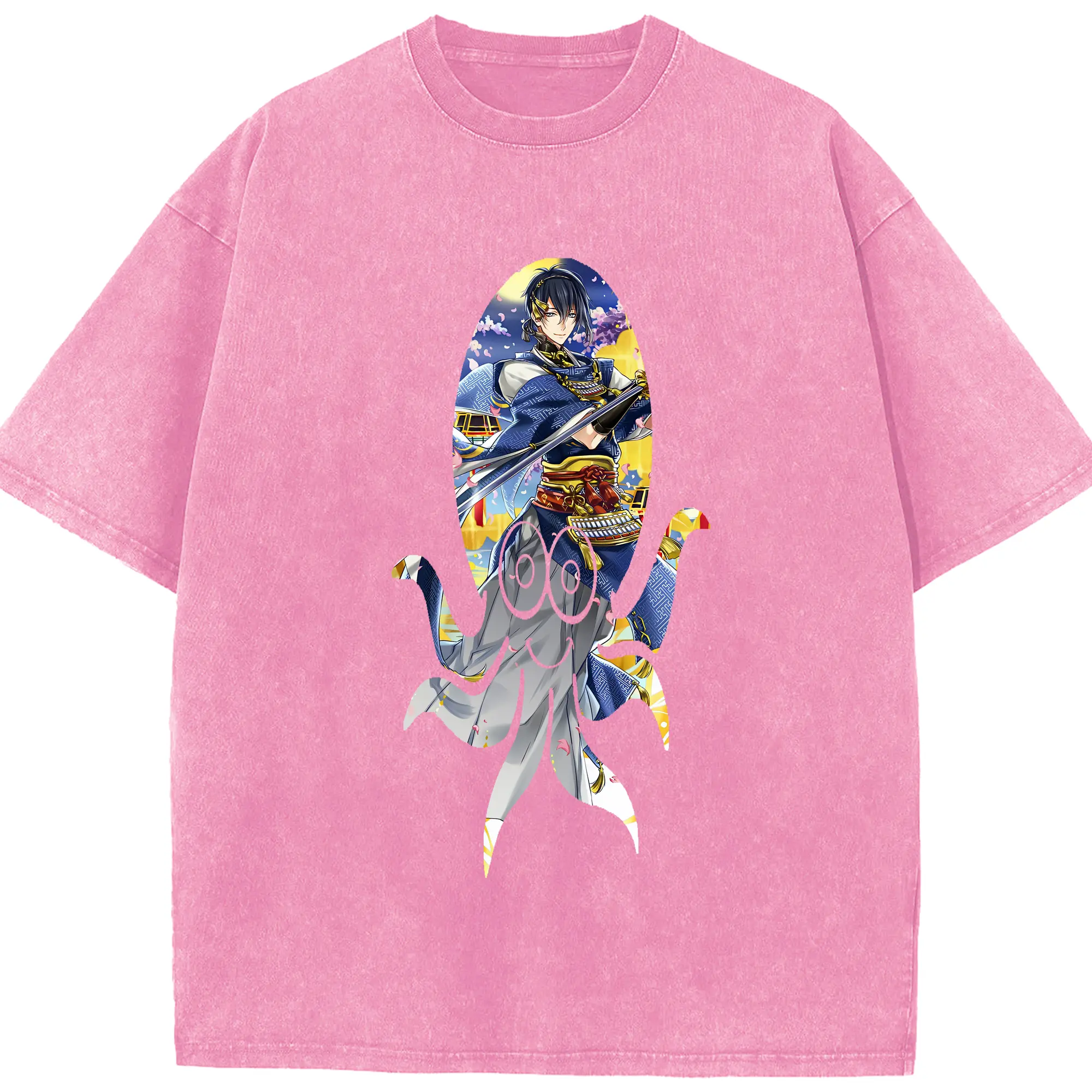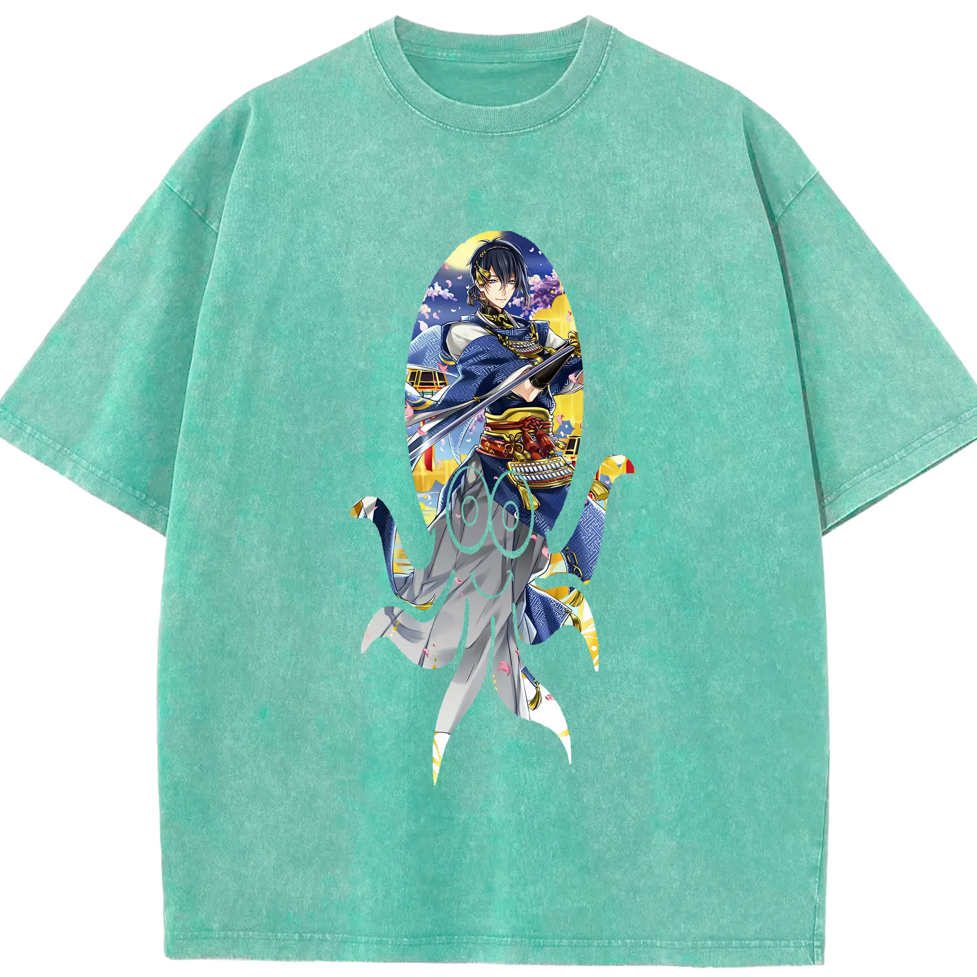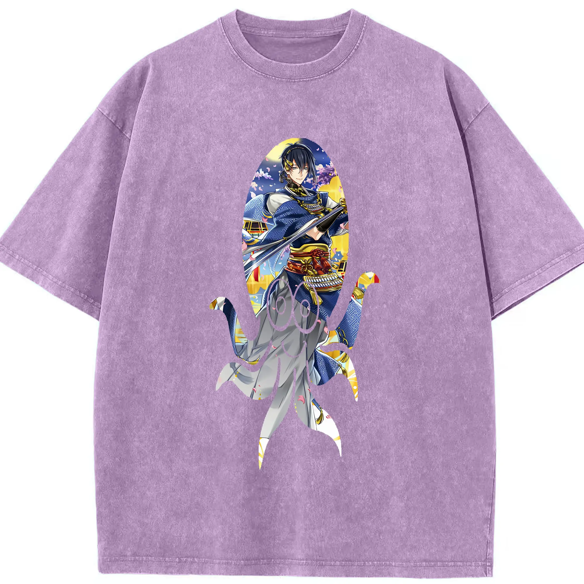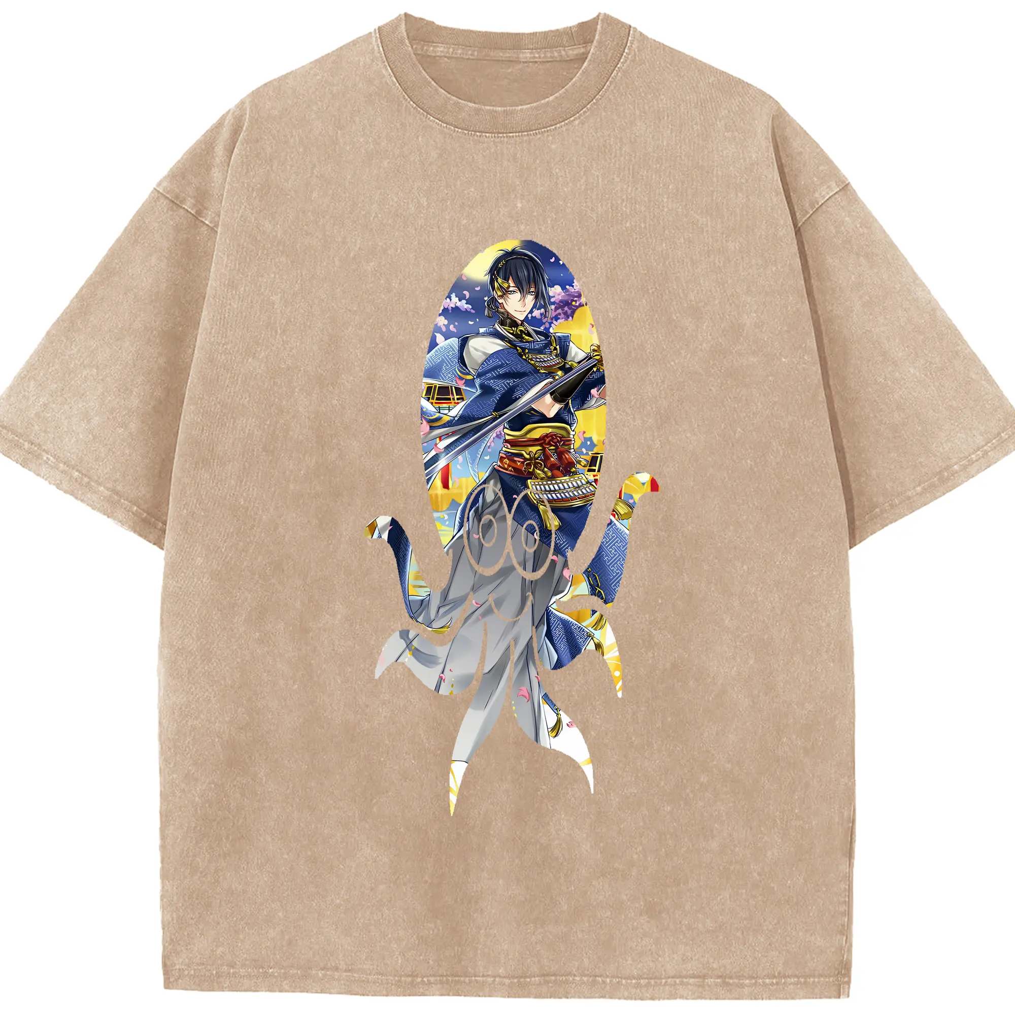 刀剣乱舞 グッズ,三日月宗近 - 綿100% ヴィンテージ風 半袖Tシャツ ・ 背面プリント ・ 柔らか肌触り ・ 通気性 快適 ・ スポーツ カジュアル 外出用
